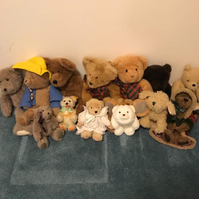 Includes a Paddington Bear, Pooh Bear, Strife miniature bear, Boyd’s Bear, Gund Bear, Russ and more. Shipping available.