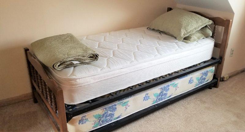 Lot #111 Twin Trundle Bed with Clean Mattress Set