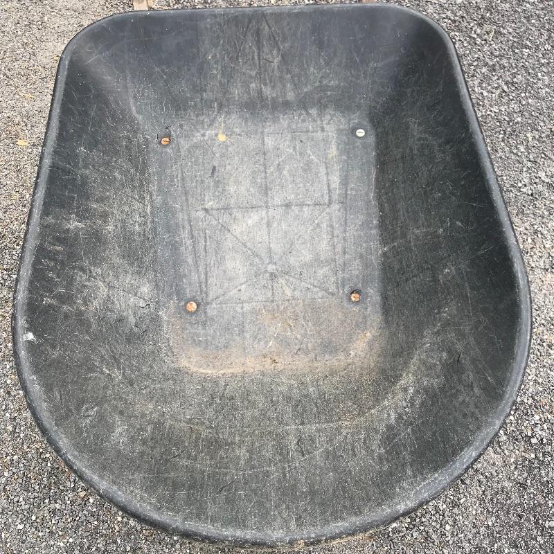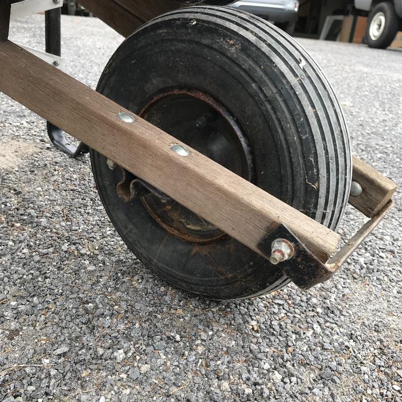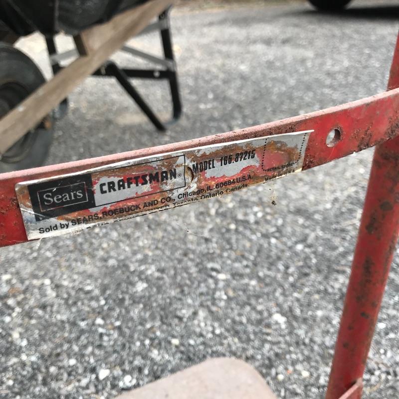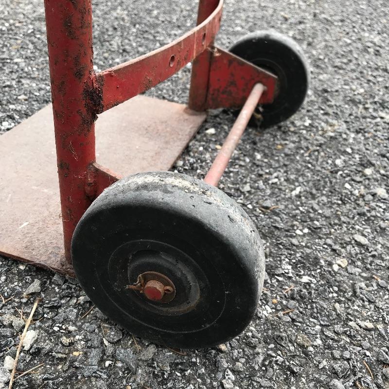 Older model red Sears handtruck has a lot of life left in it! It’s heavy and had short hard wheels. The wheel barrow appears in decent shape. The wheel is currently flat and there are some cracks beginning near each bolt, see photos. The wheel barrow glides smoothly, even though it’s tire need air. No shipping.