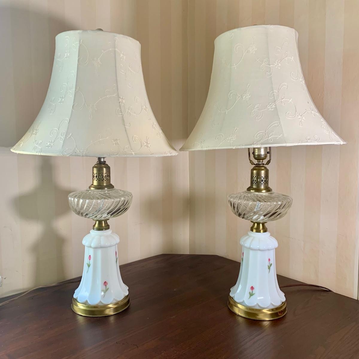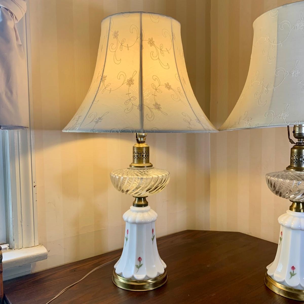LOT 6 F: Vintage Floral Lamps w/ Embroidered Floral Shades