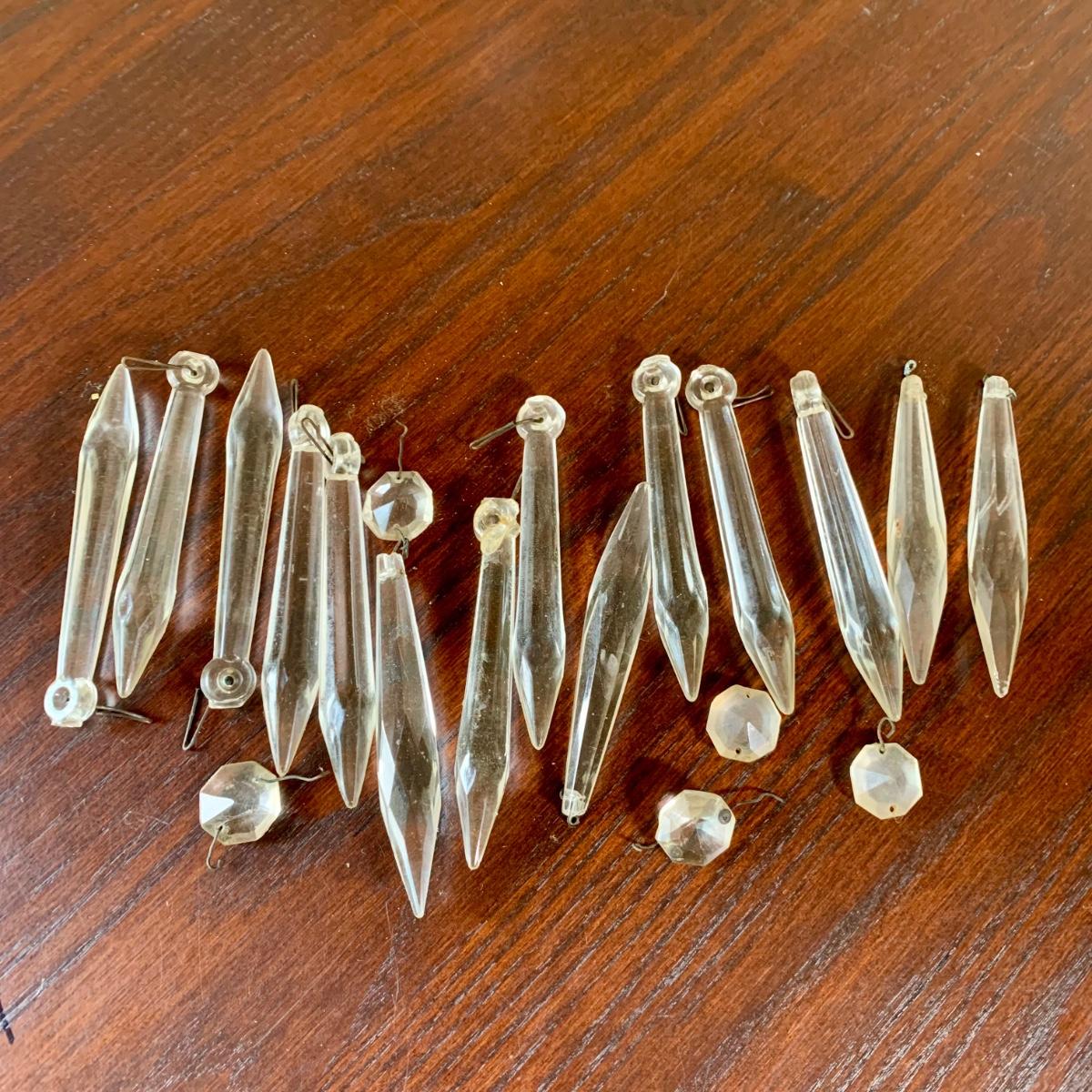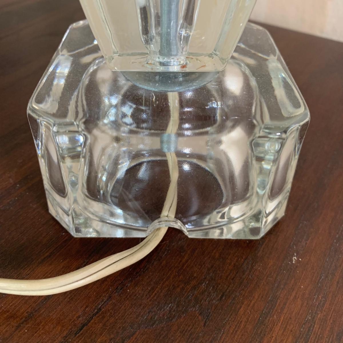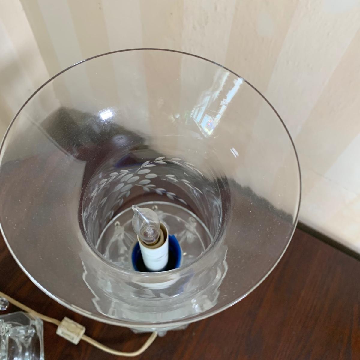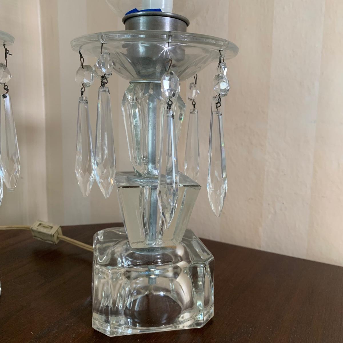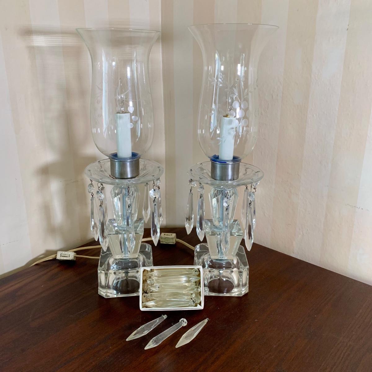 LOT 7 F: Pair of Crystal Lamps w/ Prisms & Etched Glass Hurricane Shades