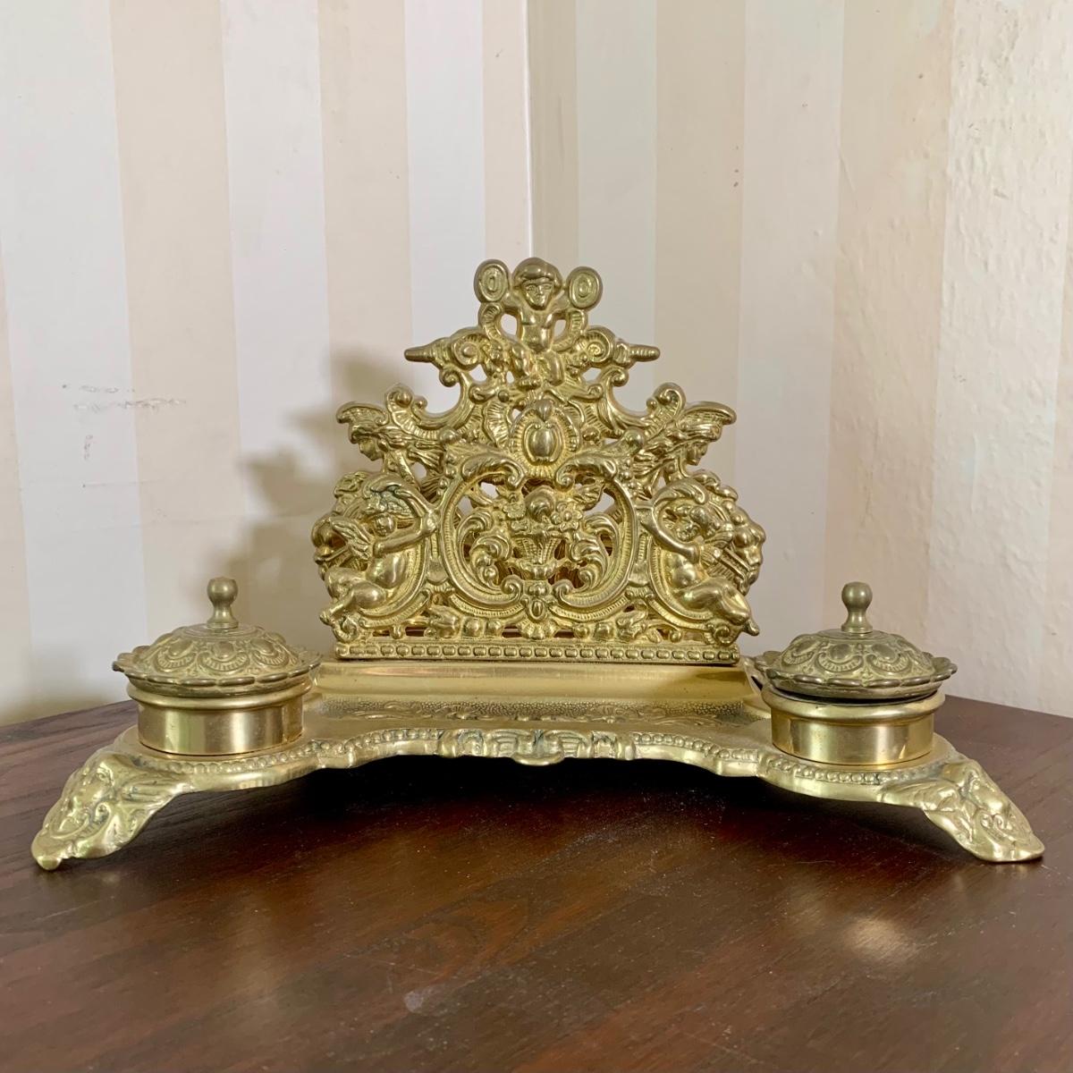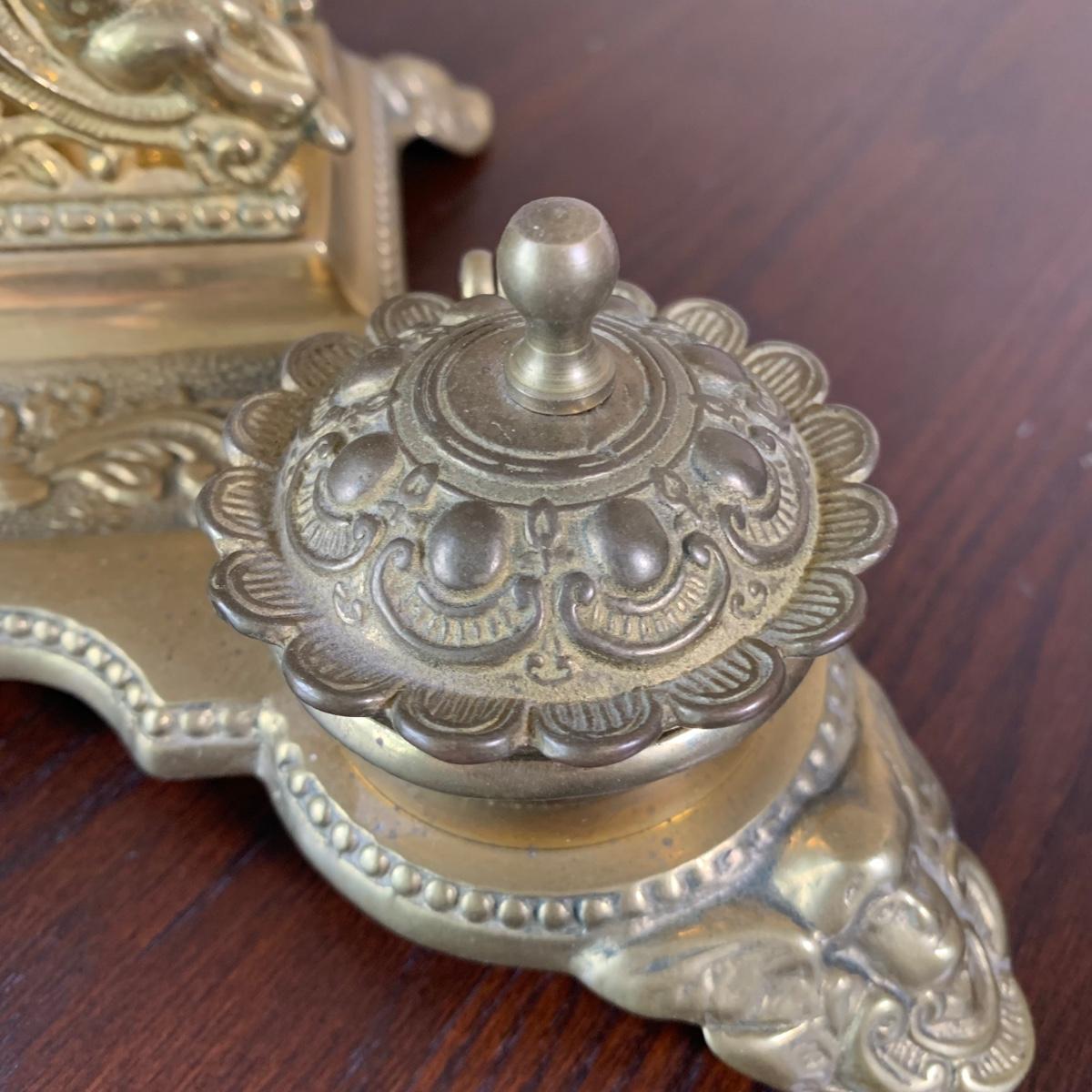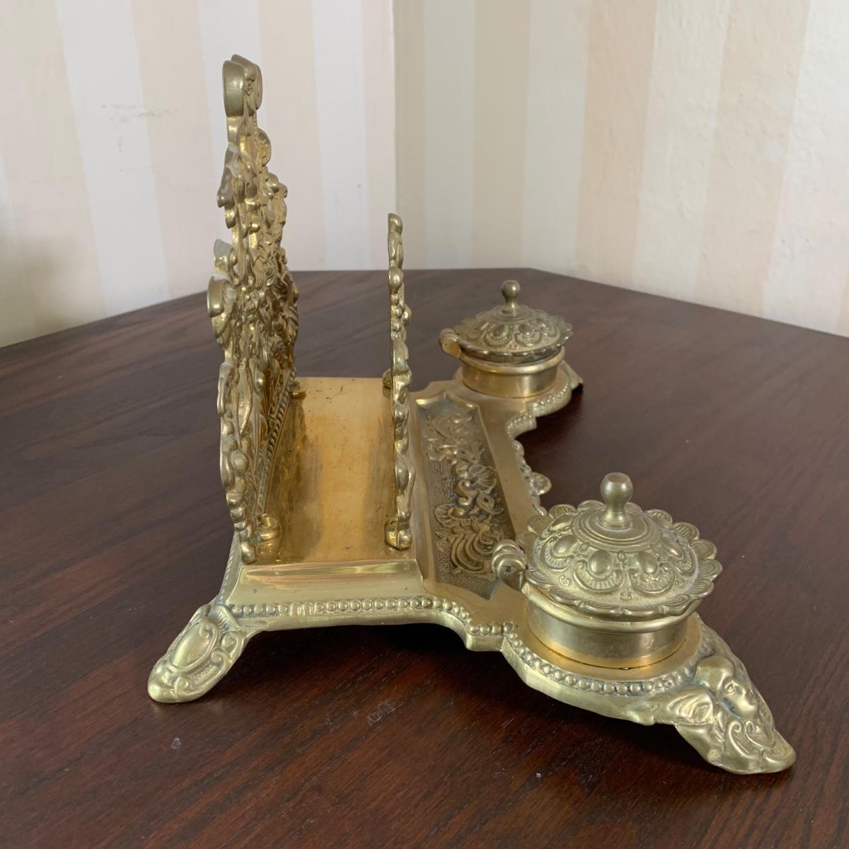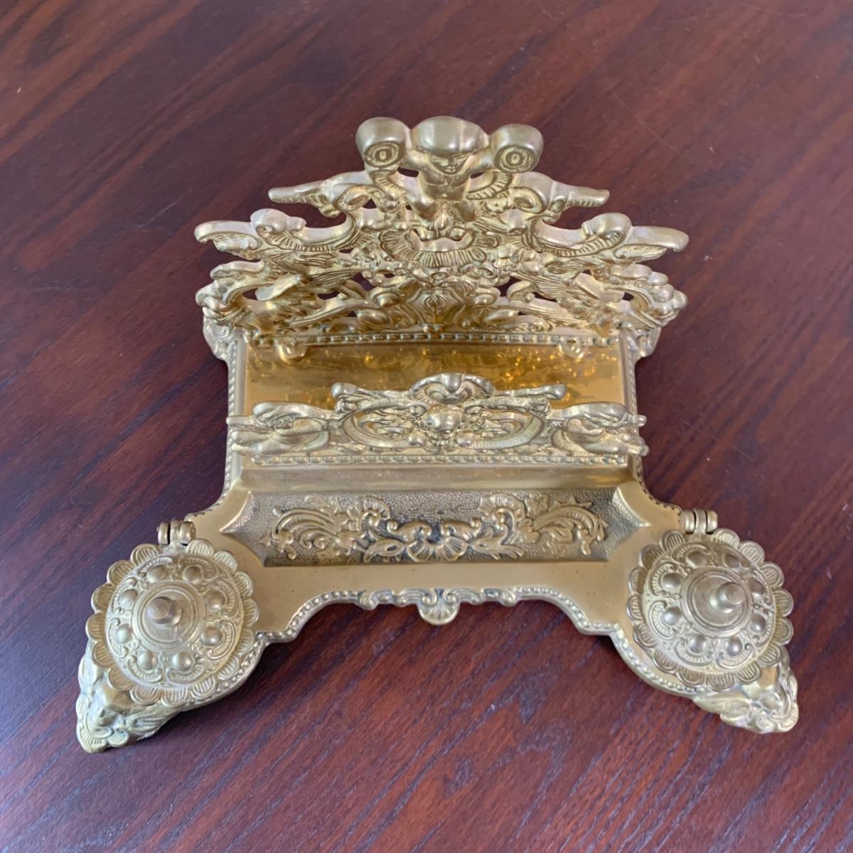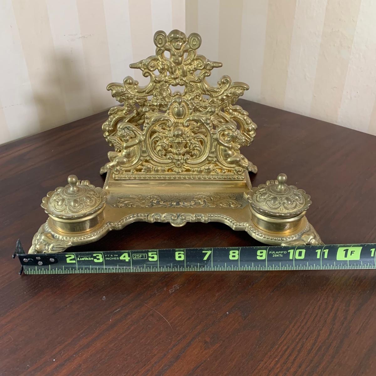 LOT 8 F: Brass Replica of Antique Double Ink Well & Letter Holder