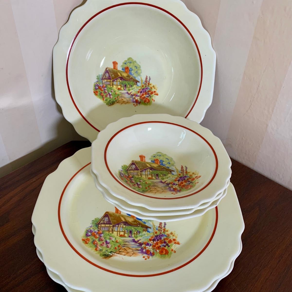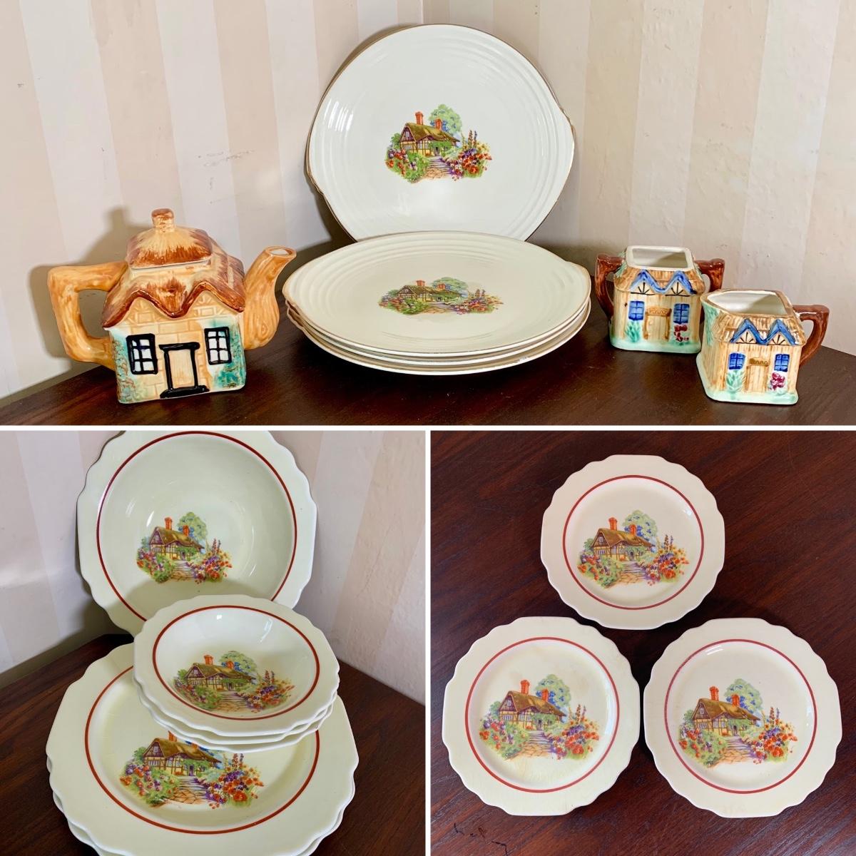 LOT 15 K: Cottage Kitchen China Collection; Lido W.S. George Canarytone Scalloped, The Edwin M Knowles China Co. Yorktown Shape Plates & More