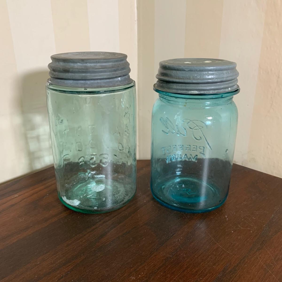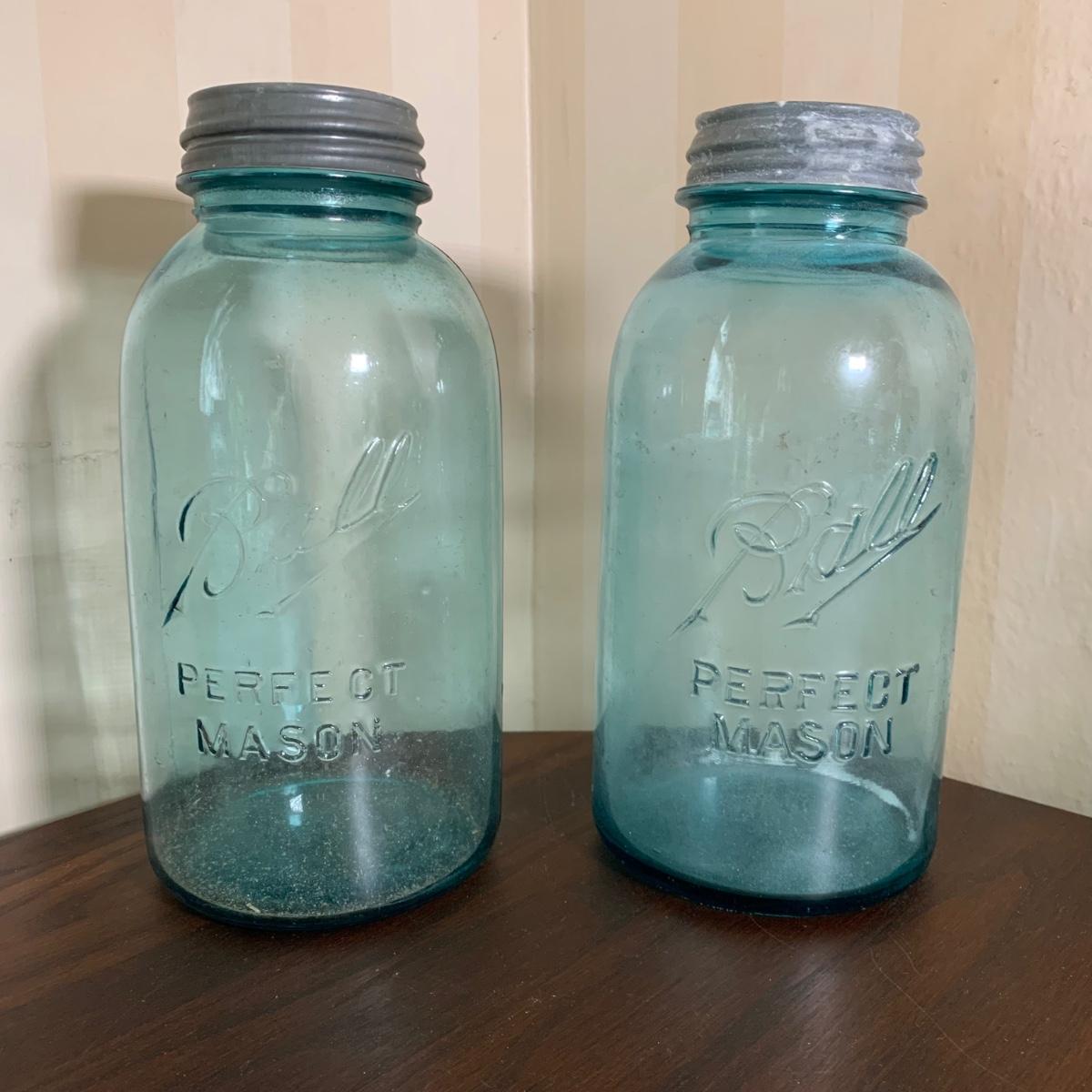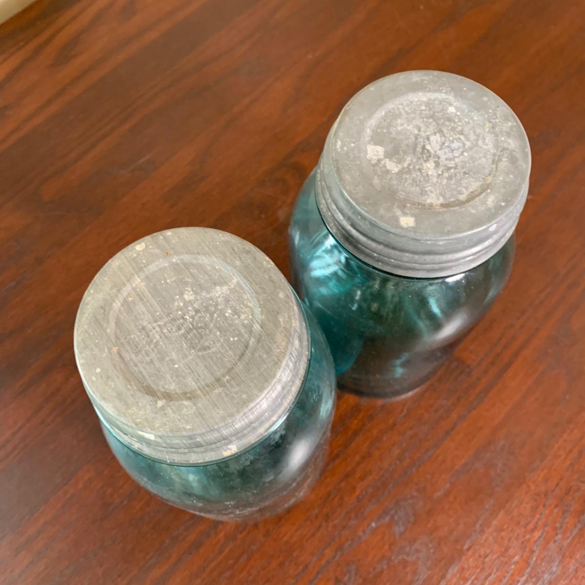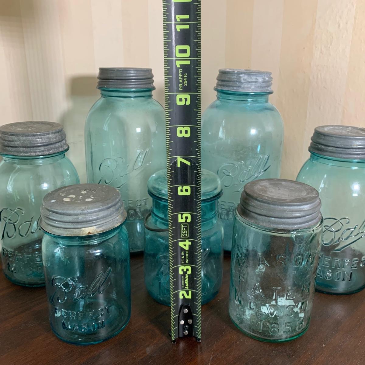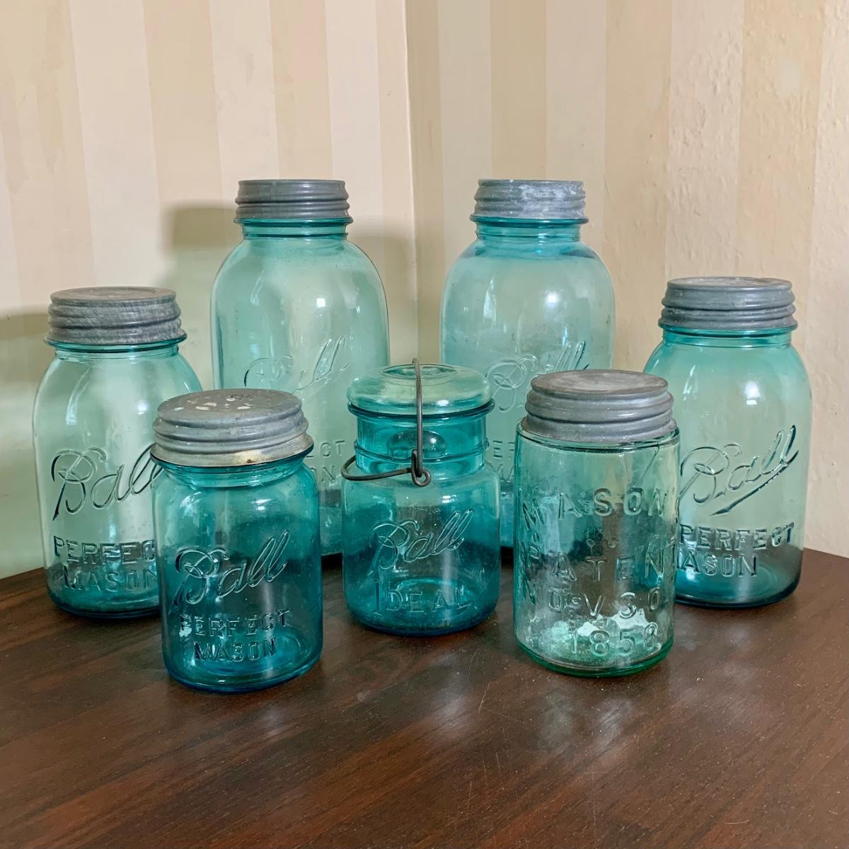 LOT 18 K: Vintage Blue Glass Mason Jar Collection
