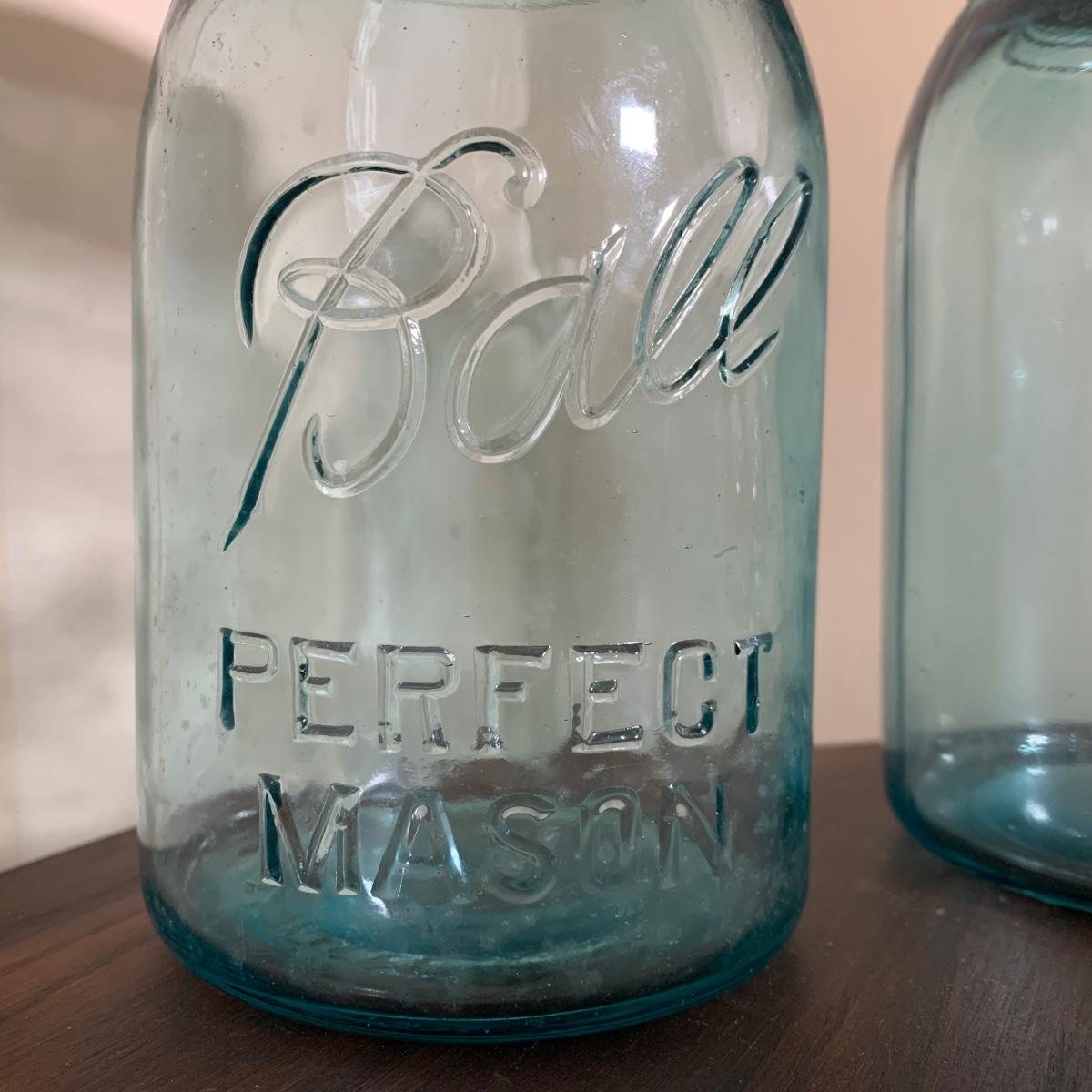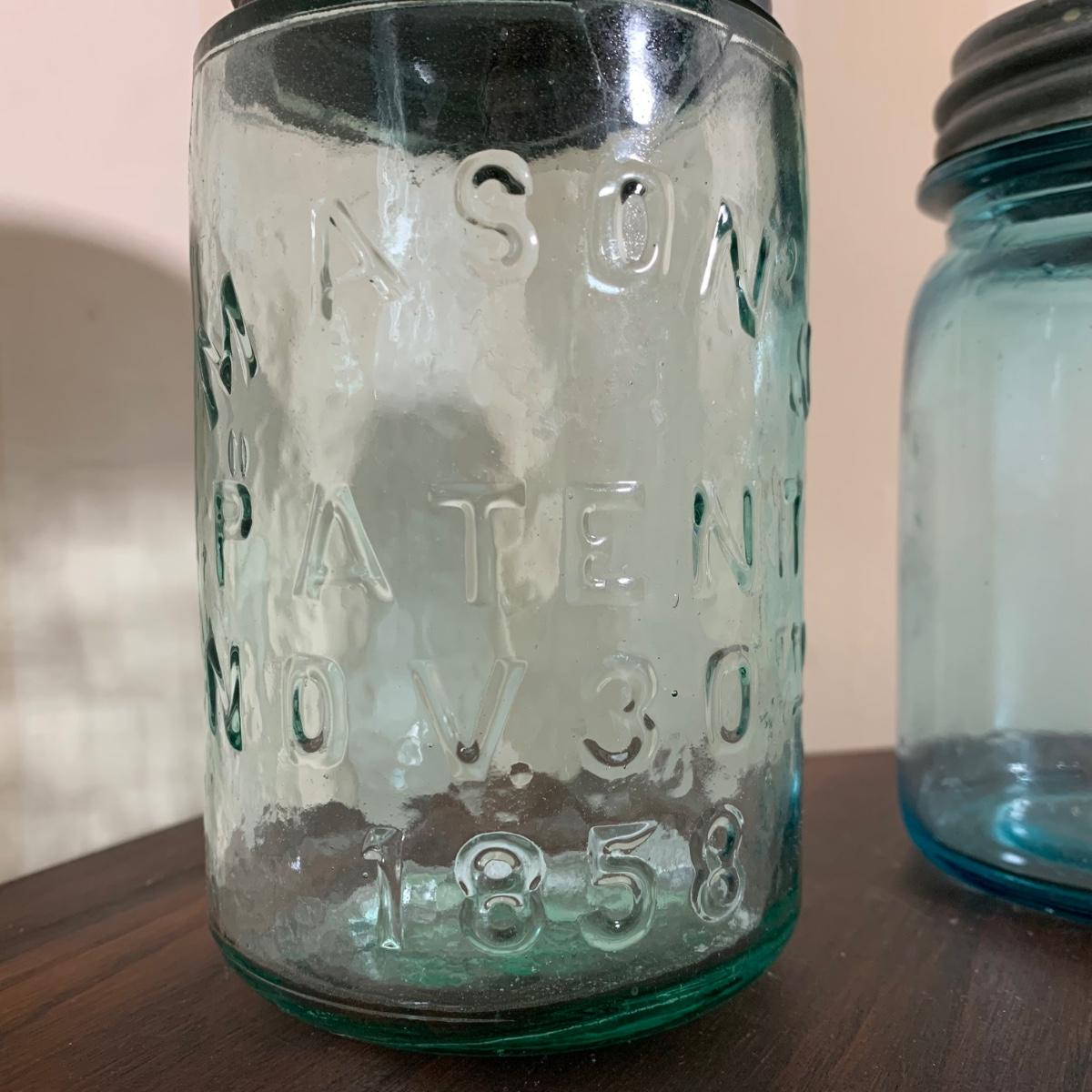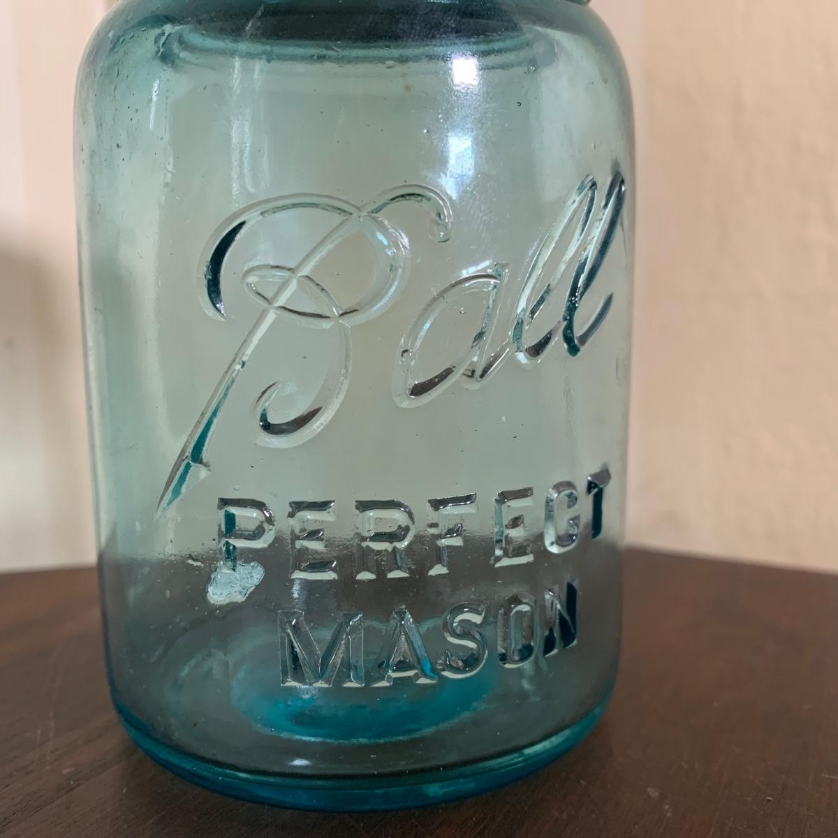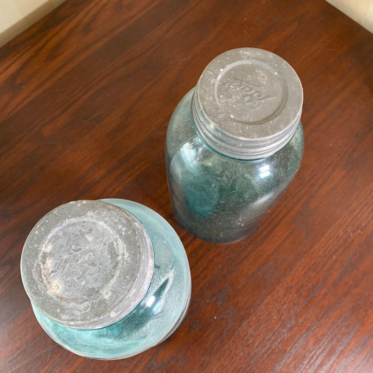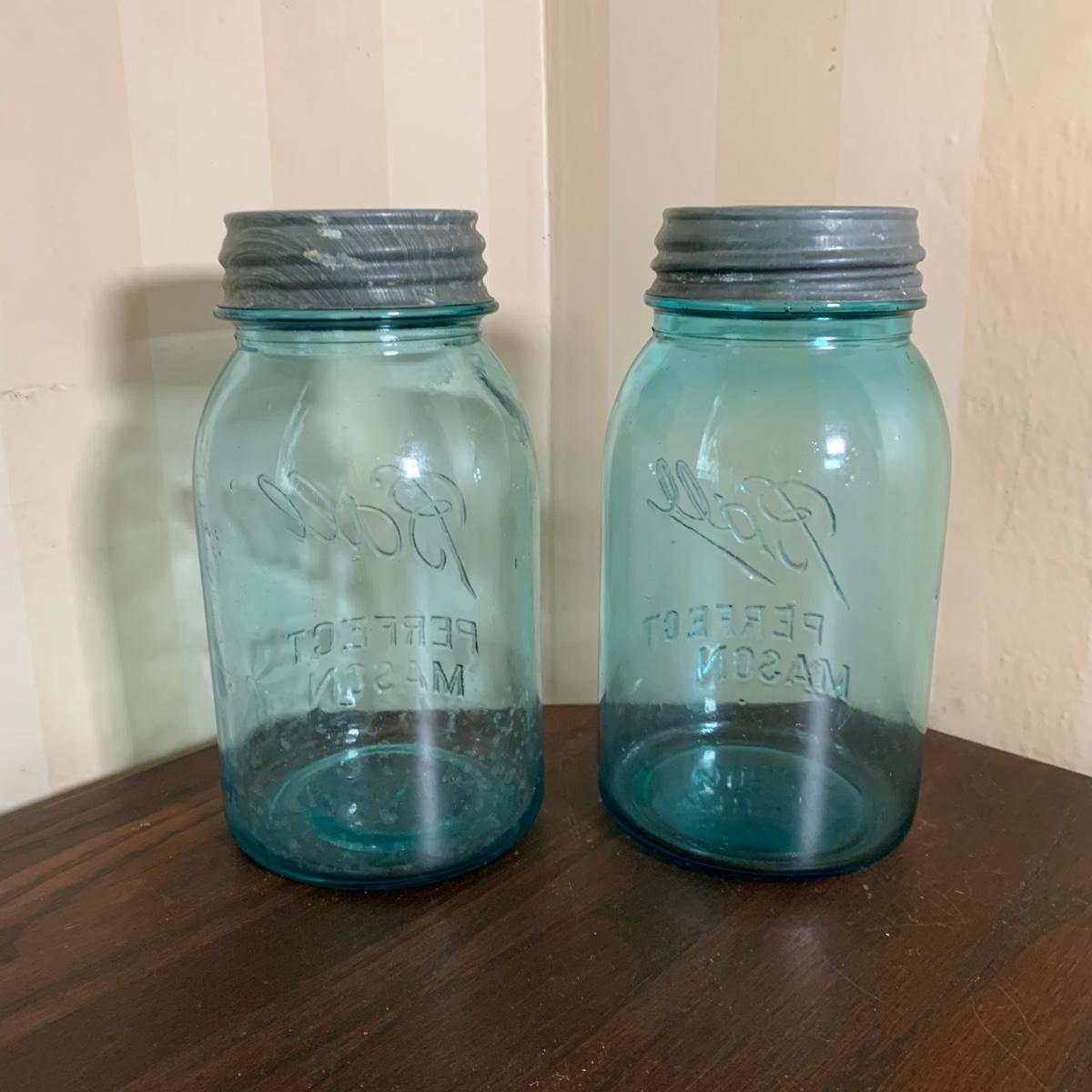 LOT 18 K: Vintage Blue Glass Mason Jar Collection