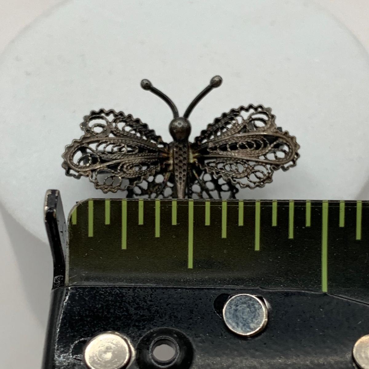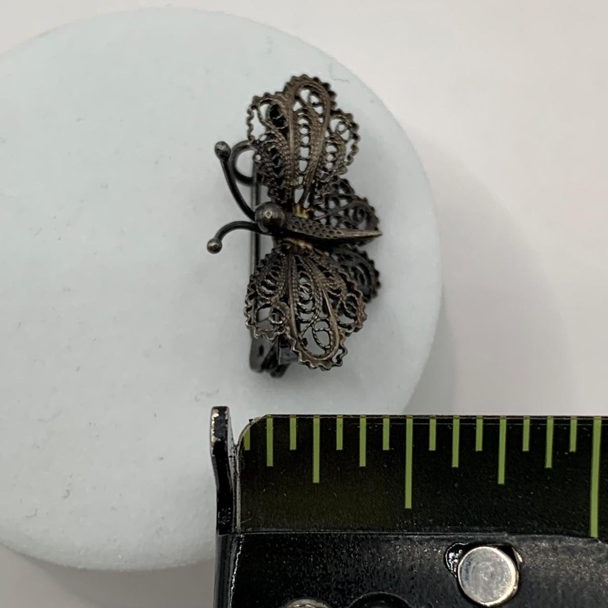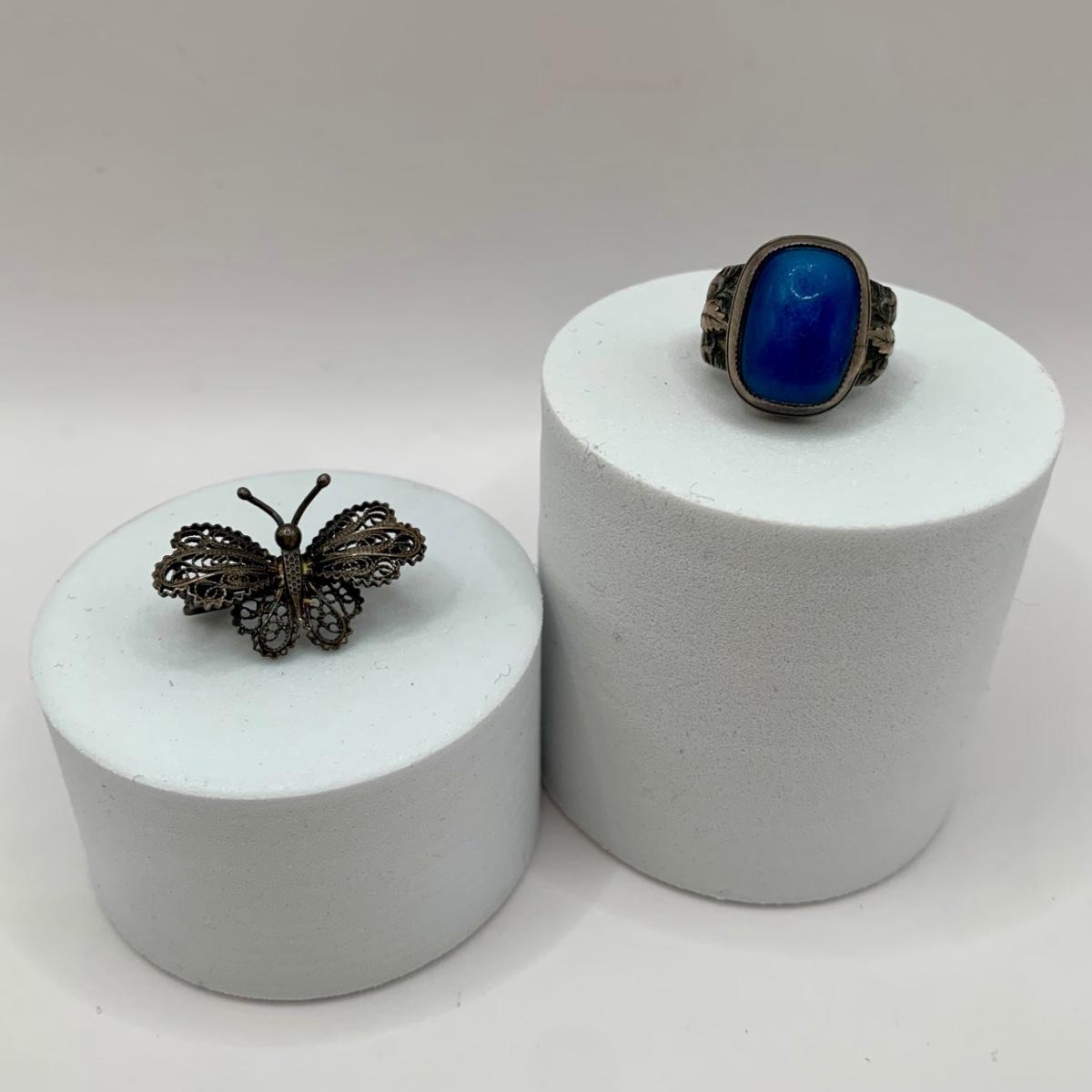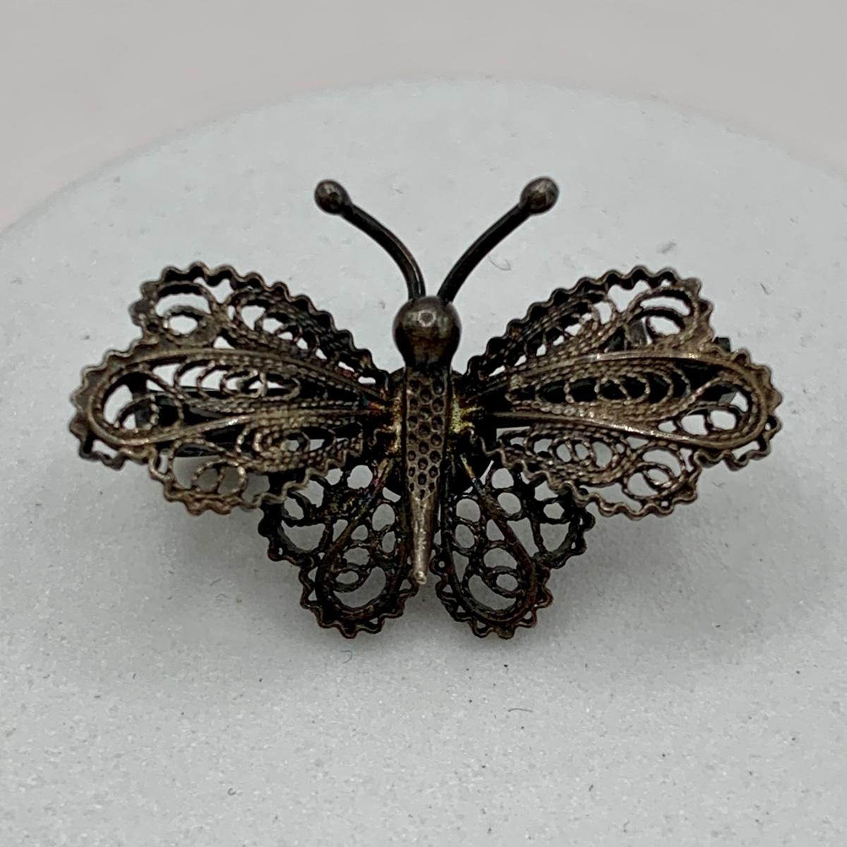 LOT 20 J: Vintage Sterling Silver Filigree Butterfly Brooch & Sterling Silver Leaf Motif Ring w/ Blue Stone