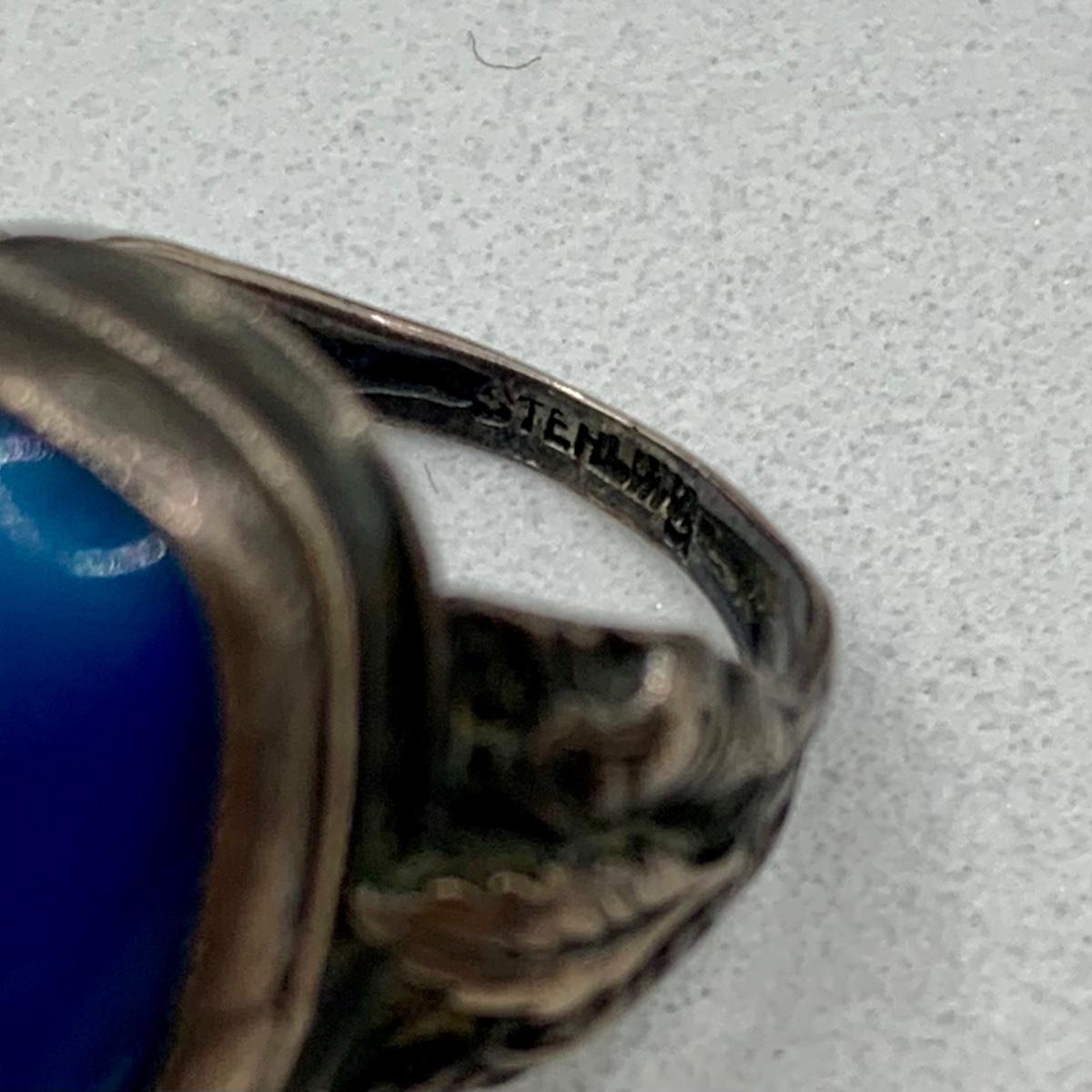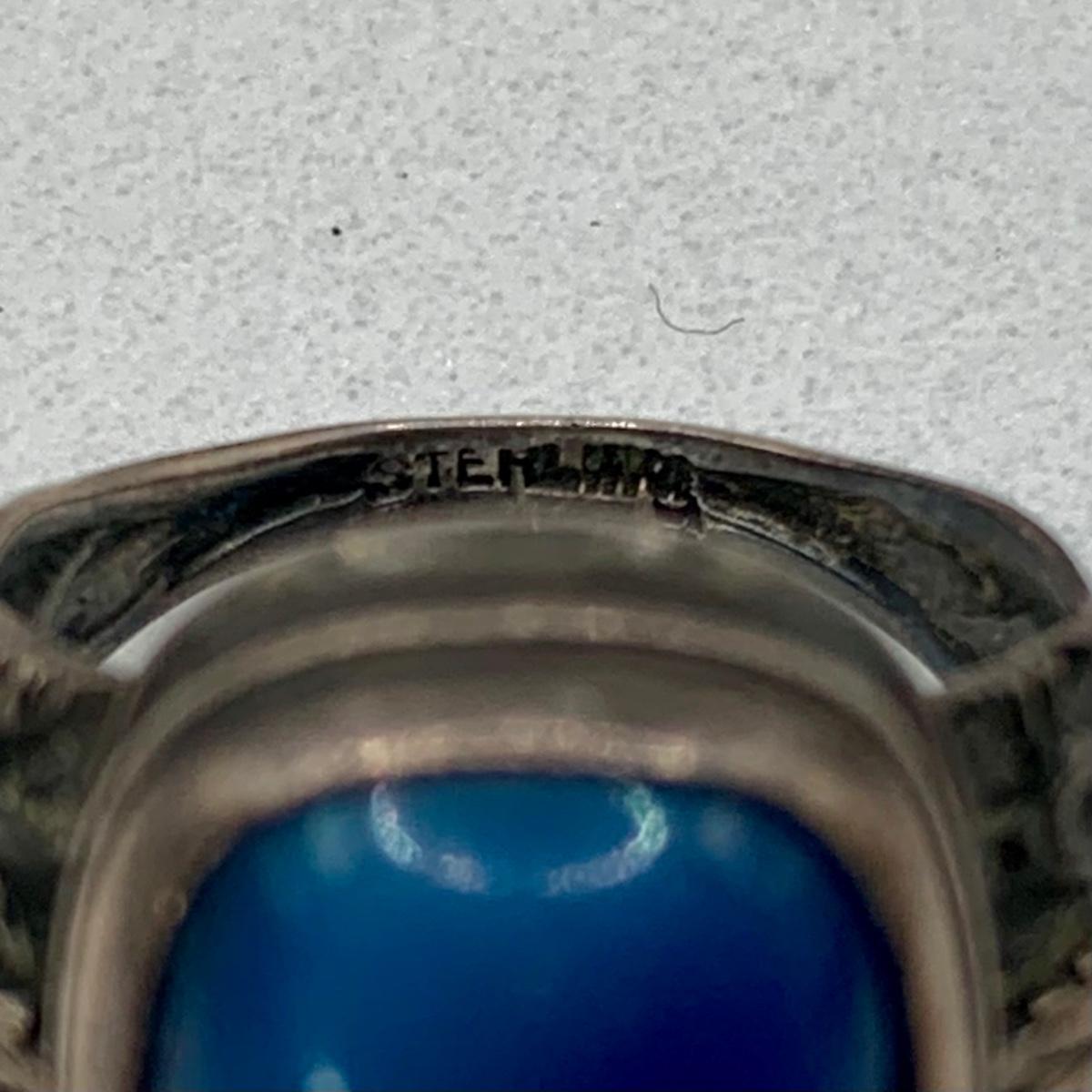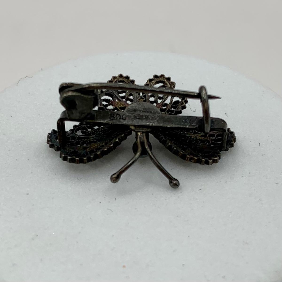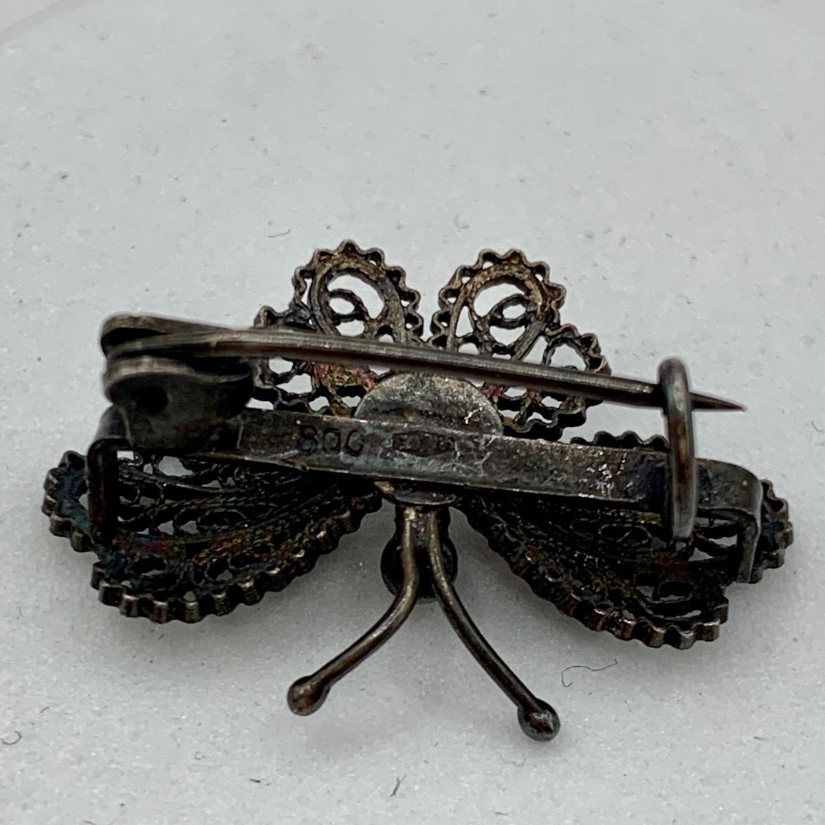 LOT 20 J: Vintage Sterling Silver Filigree Butterfly Brooch & Sterling Silver Leaf Motif Ring w/ Blue Stone