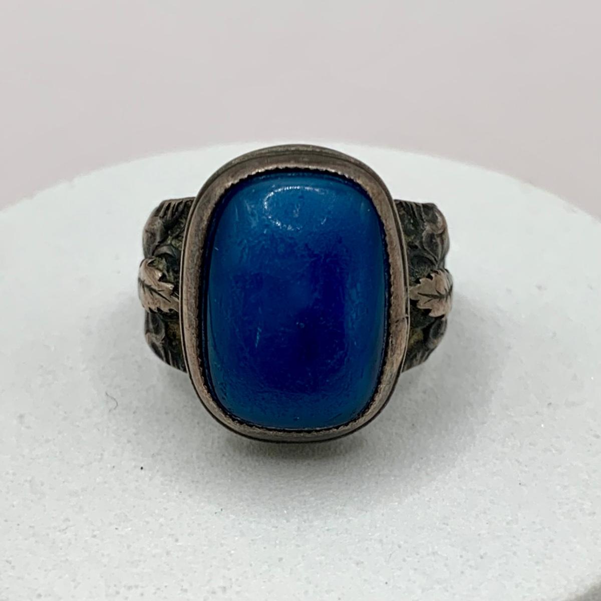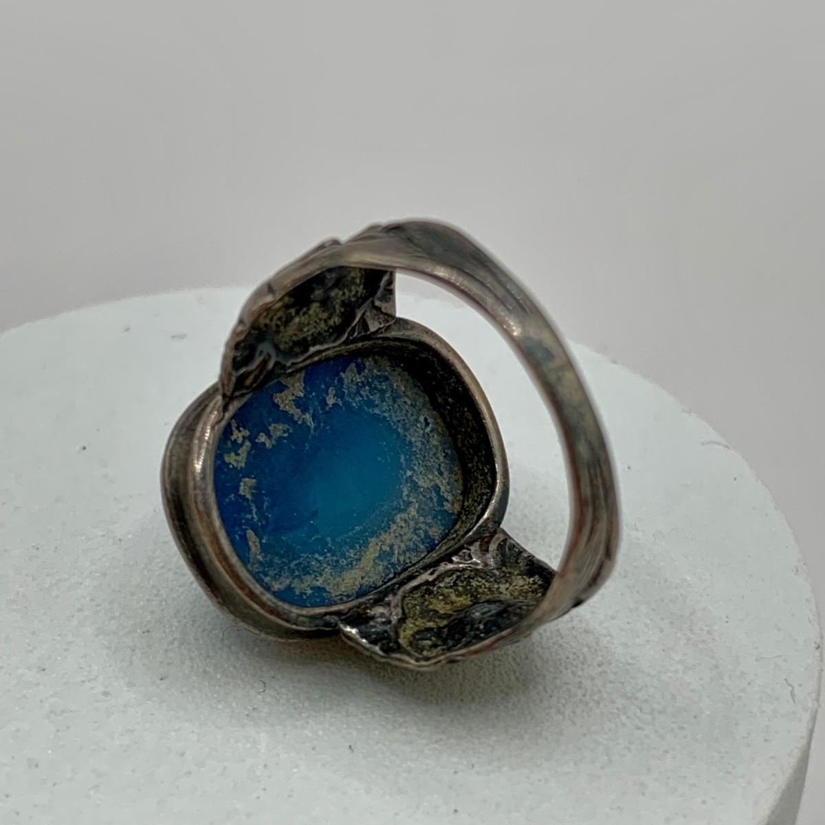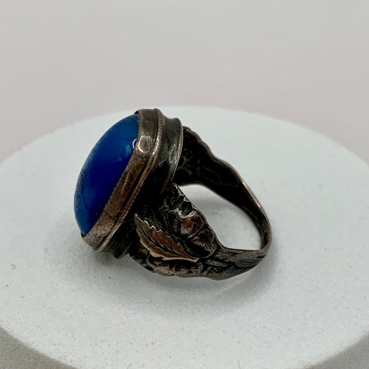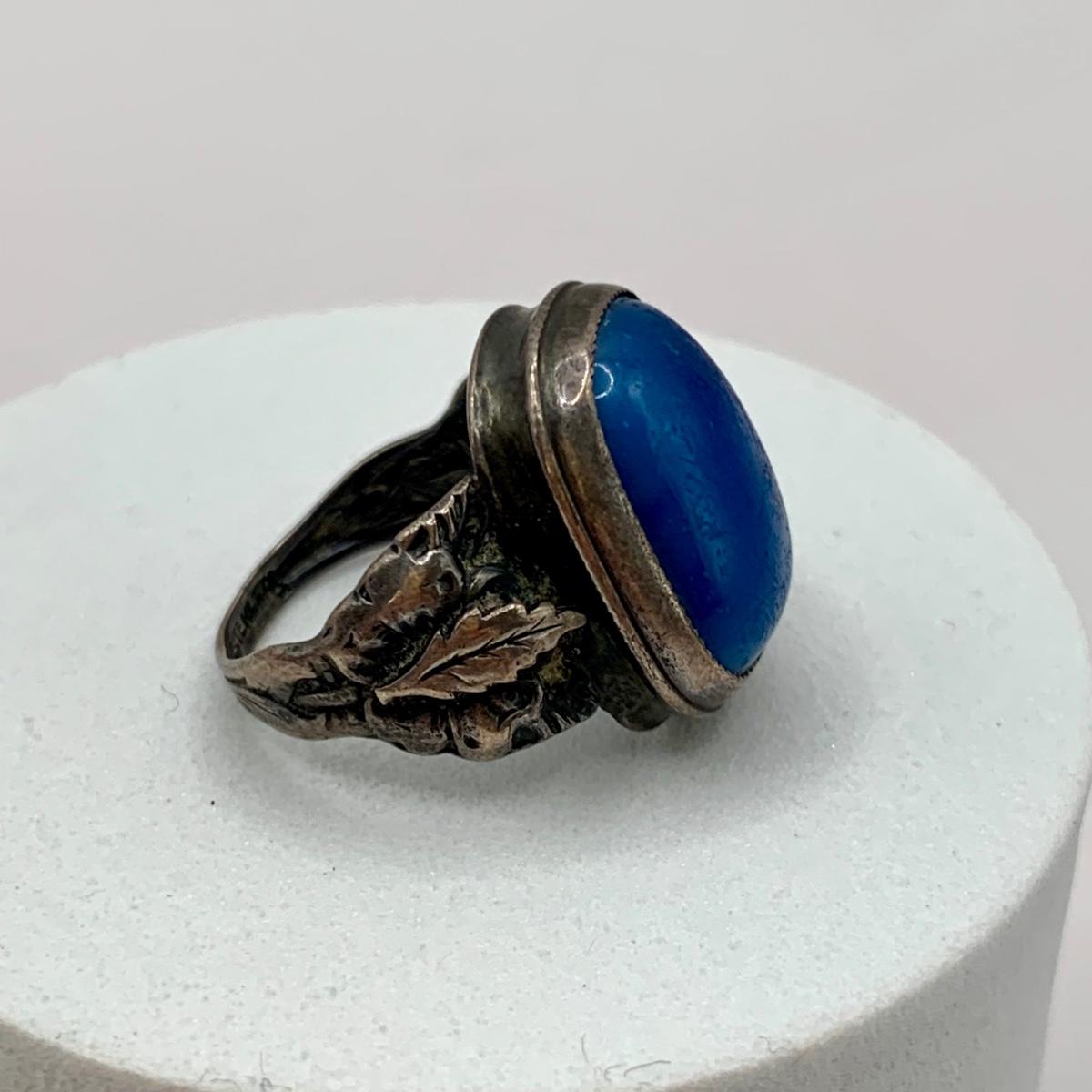 LOT 20 J: Vintage Sterling Silver Filigree Butterfly Brooch & Sterling Silver Leaf Motif Ring w/ Blue Stone