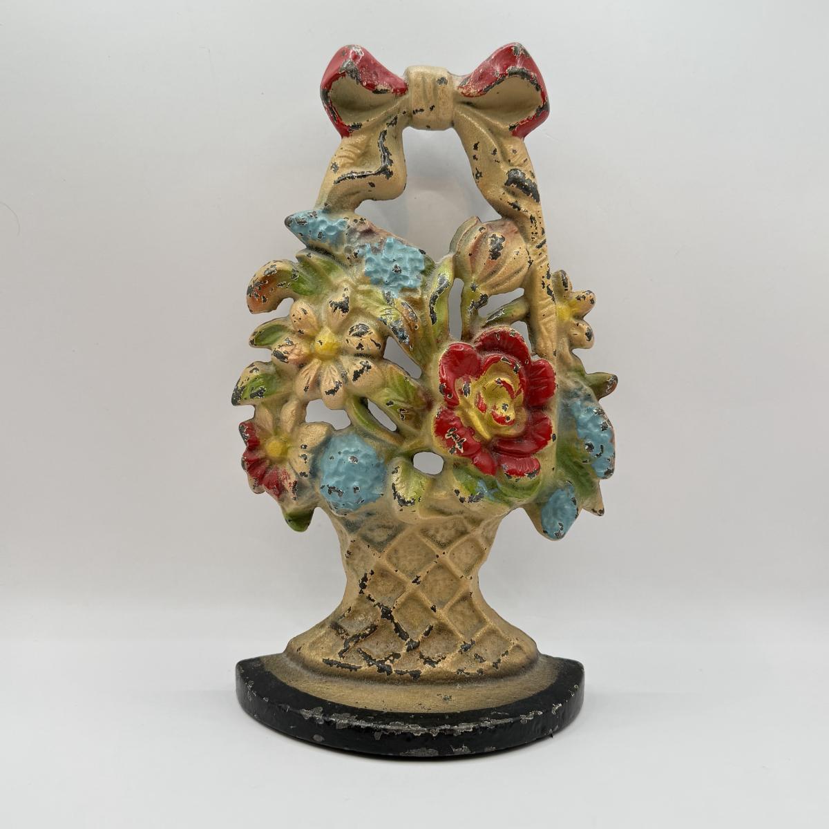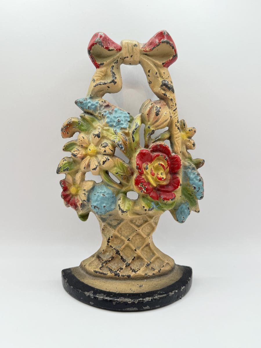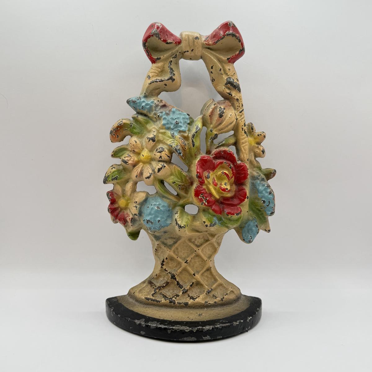LOT 27F: Vintage OPR 1980 O.C. Cast Iron Basket of Flowers Doorstop