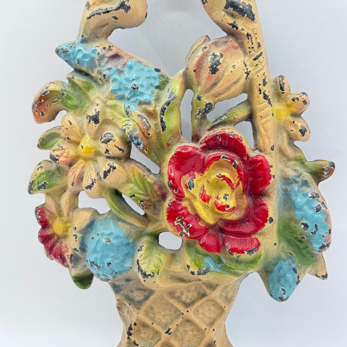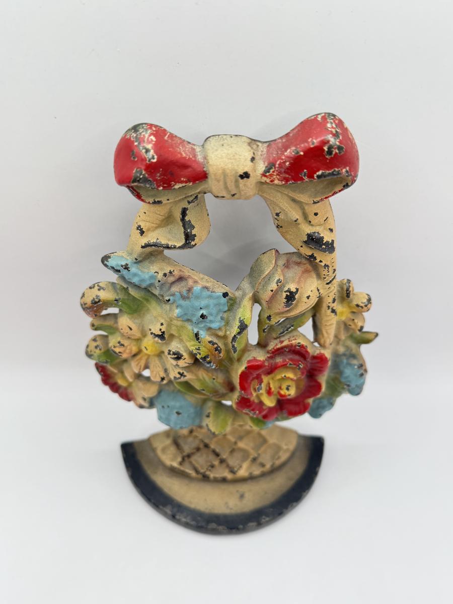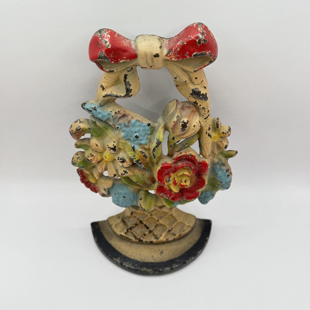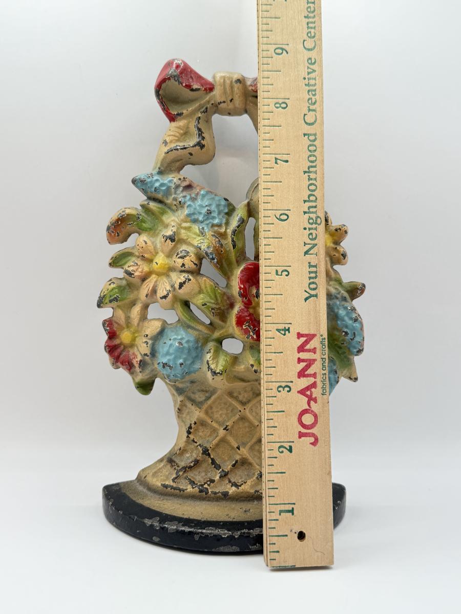 LOT 27F: Vintage OPR 1980 O.C. Cast Iron Basket of Flowers Doorstop