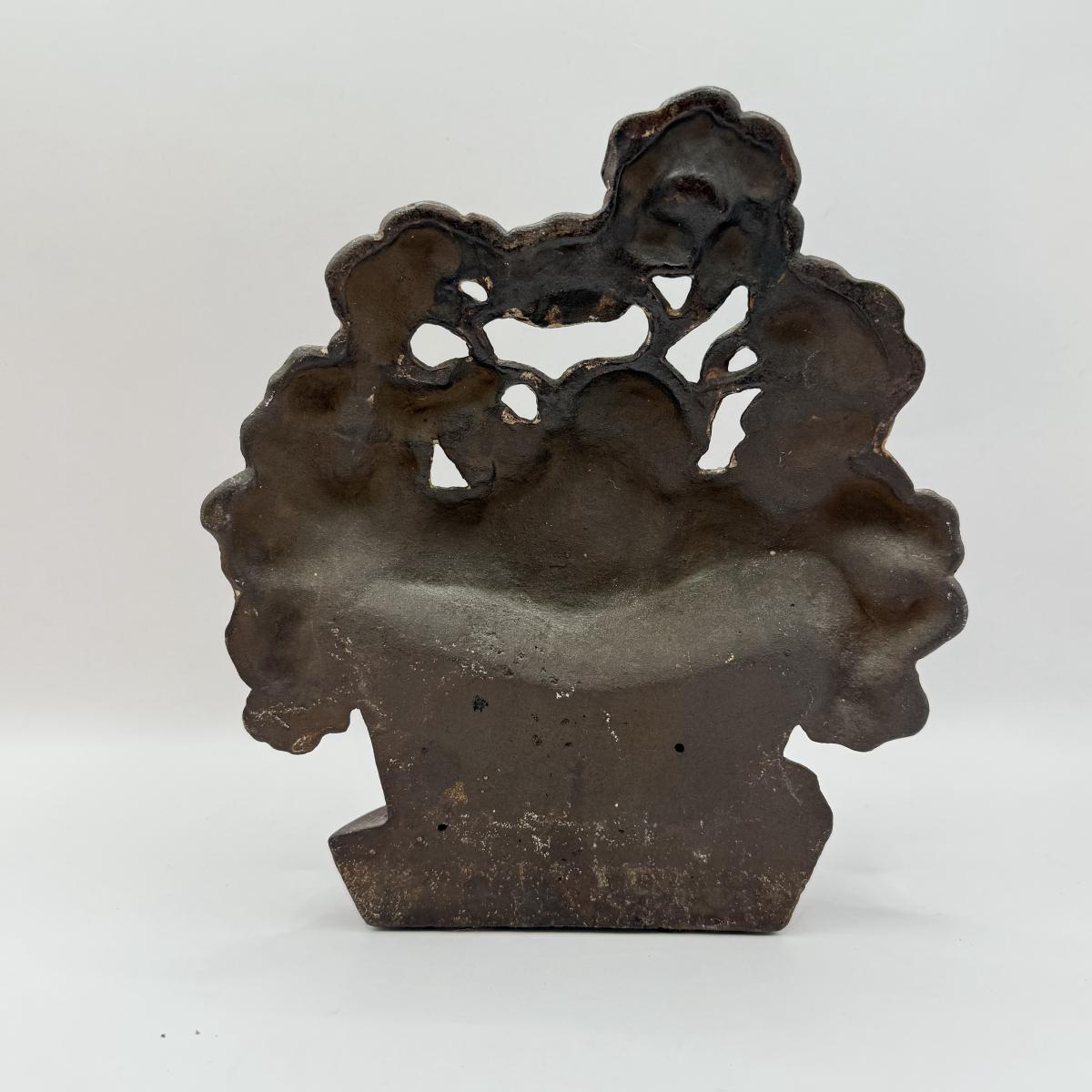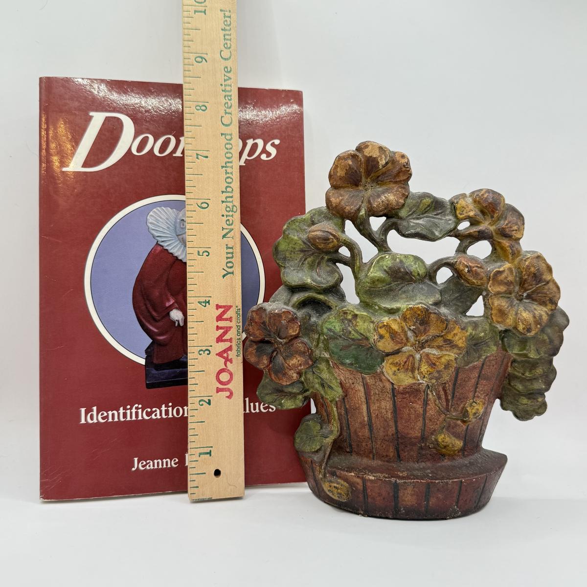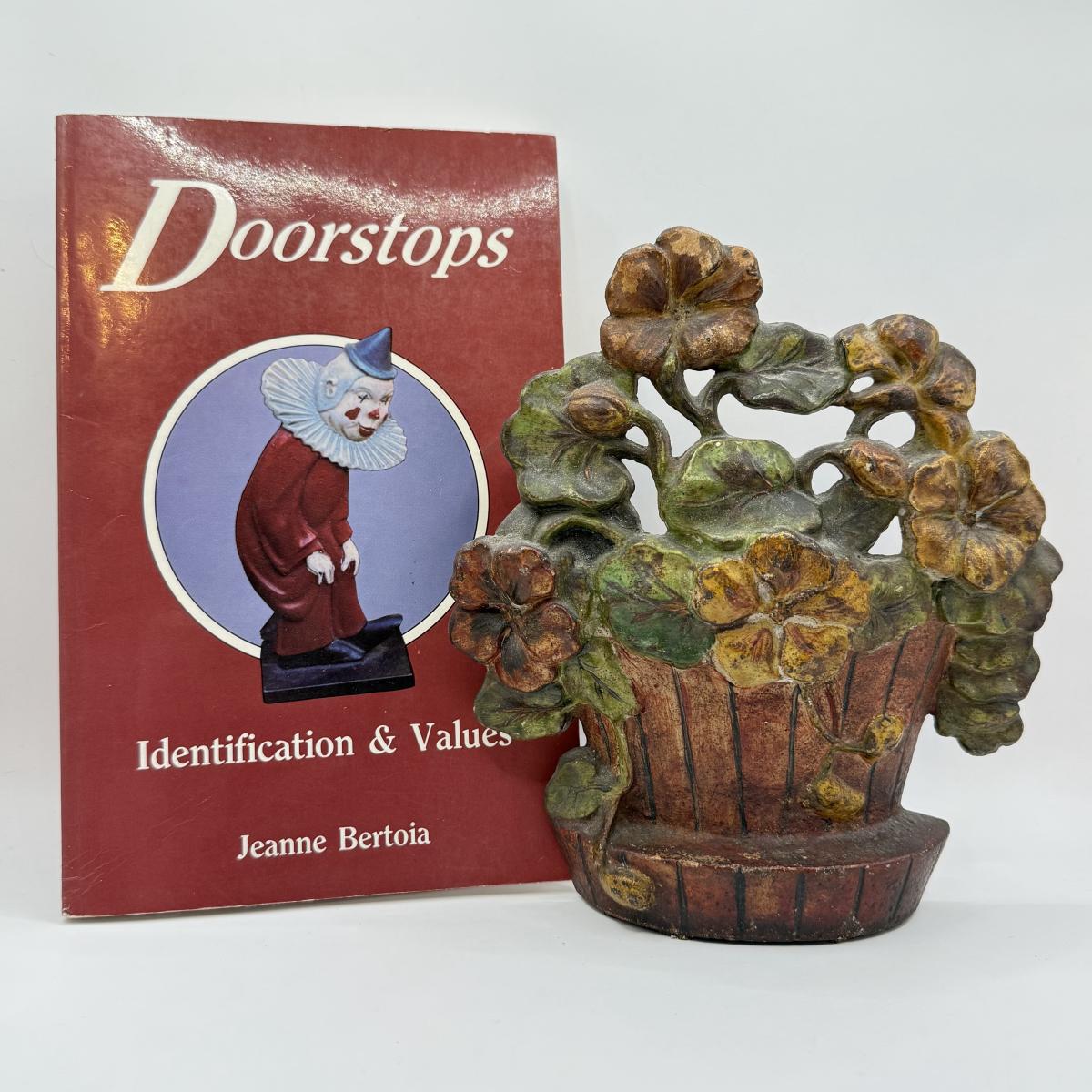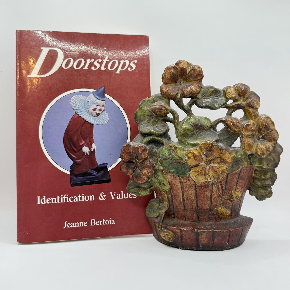 LOT 31F: Vintage Cast Iron Basket of Flowers Doorstop & Signed Copy of “Doorstops: Identification & Values” by Jeanne Bertoia