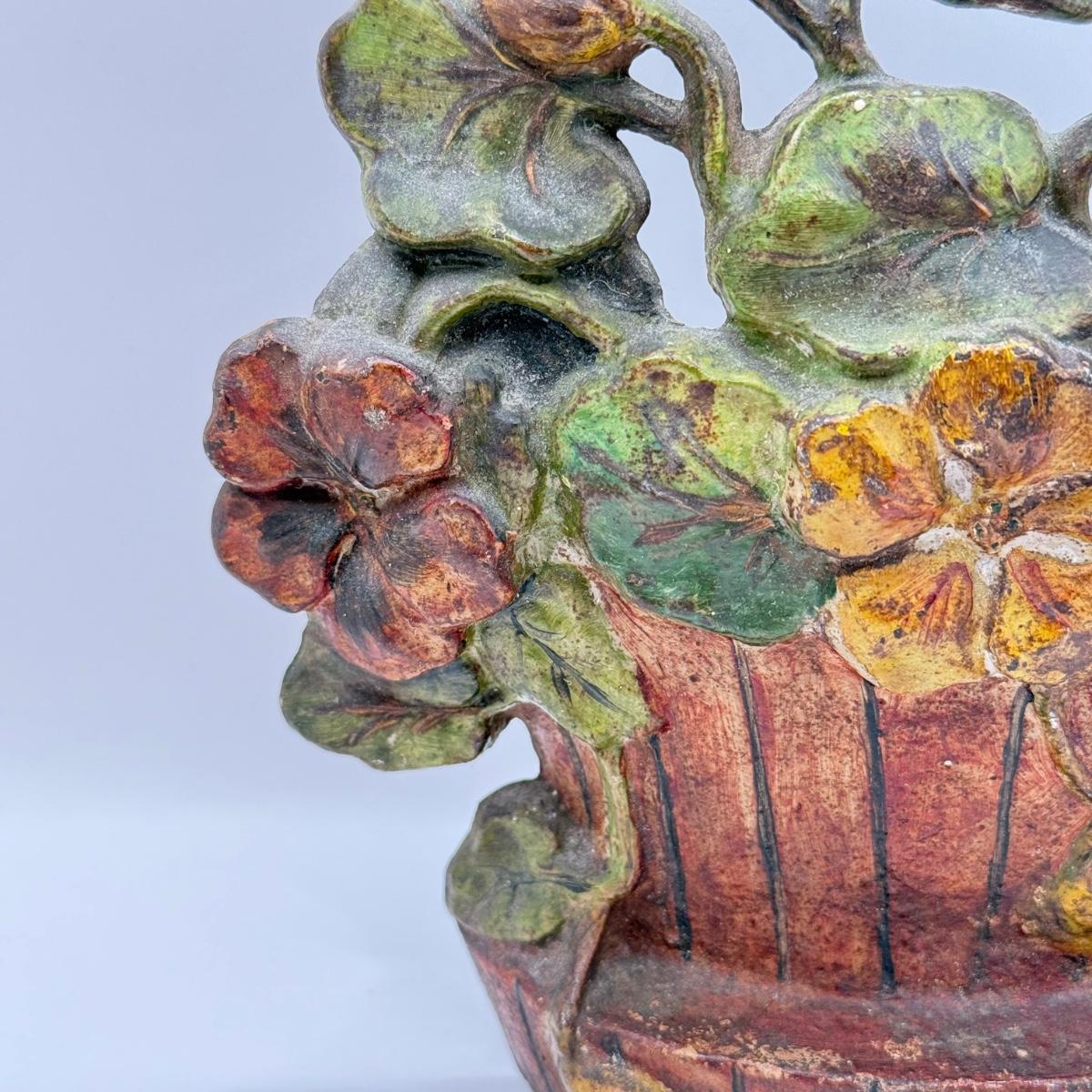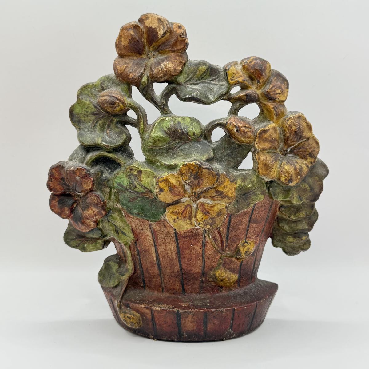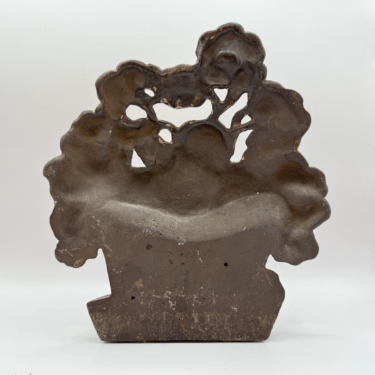 LOT 31F: Vintage Cast Iron Basket of Flowers Doorstop & Signed Copy of “Doorstops: Identification & Values” by Jeanne Bertoia