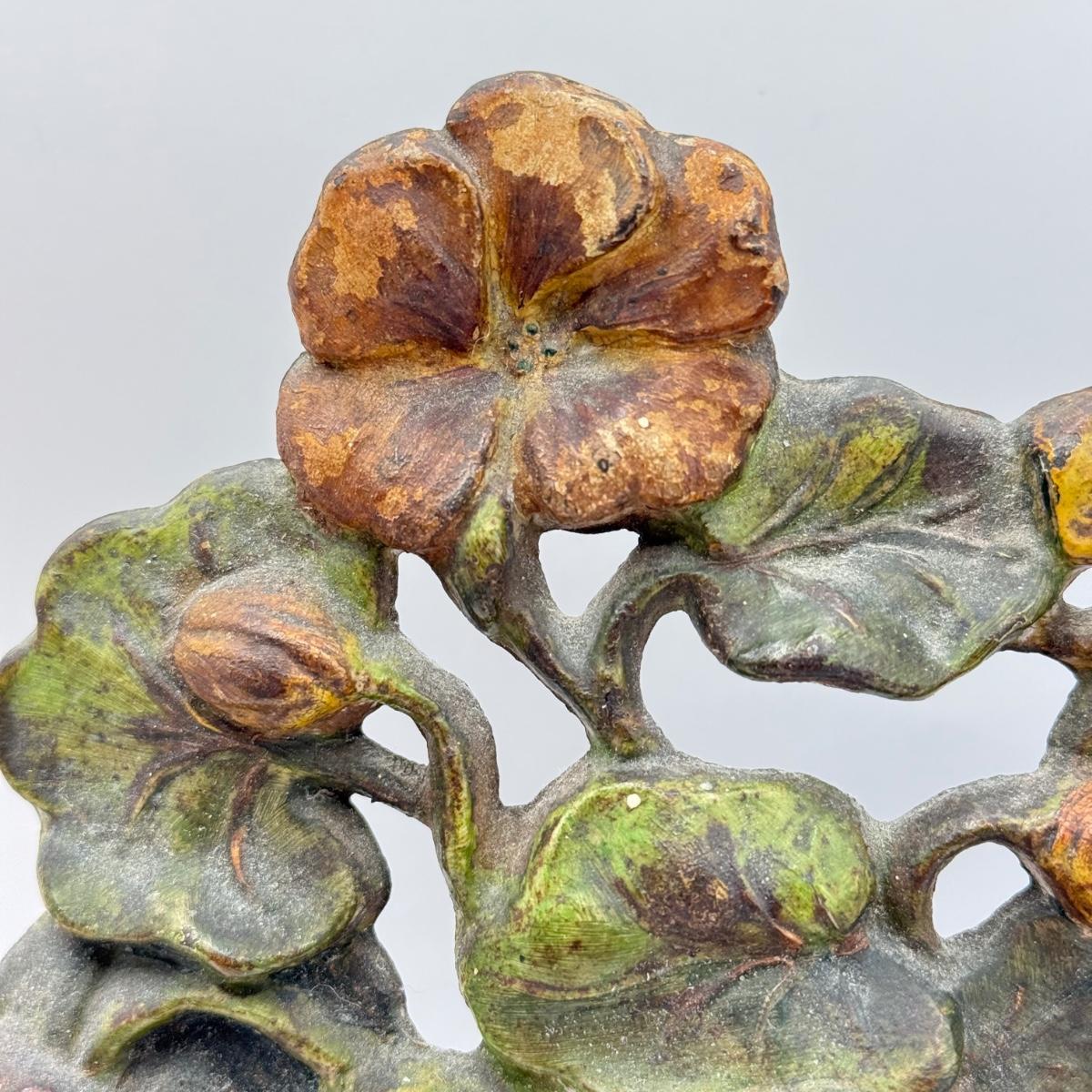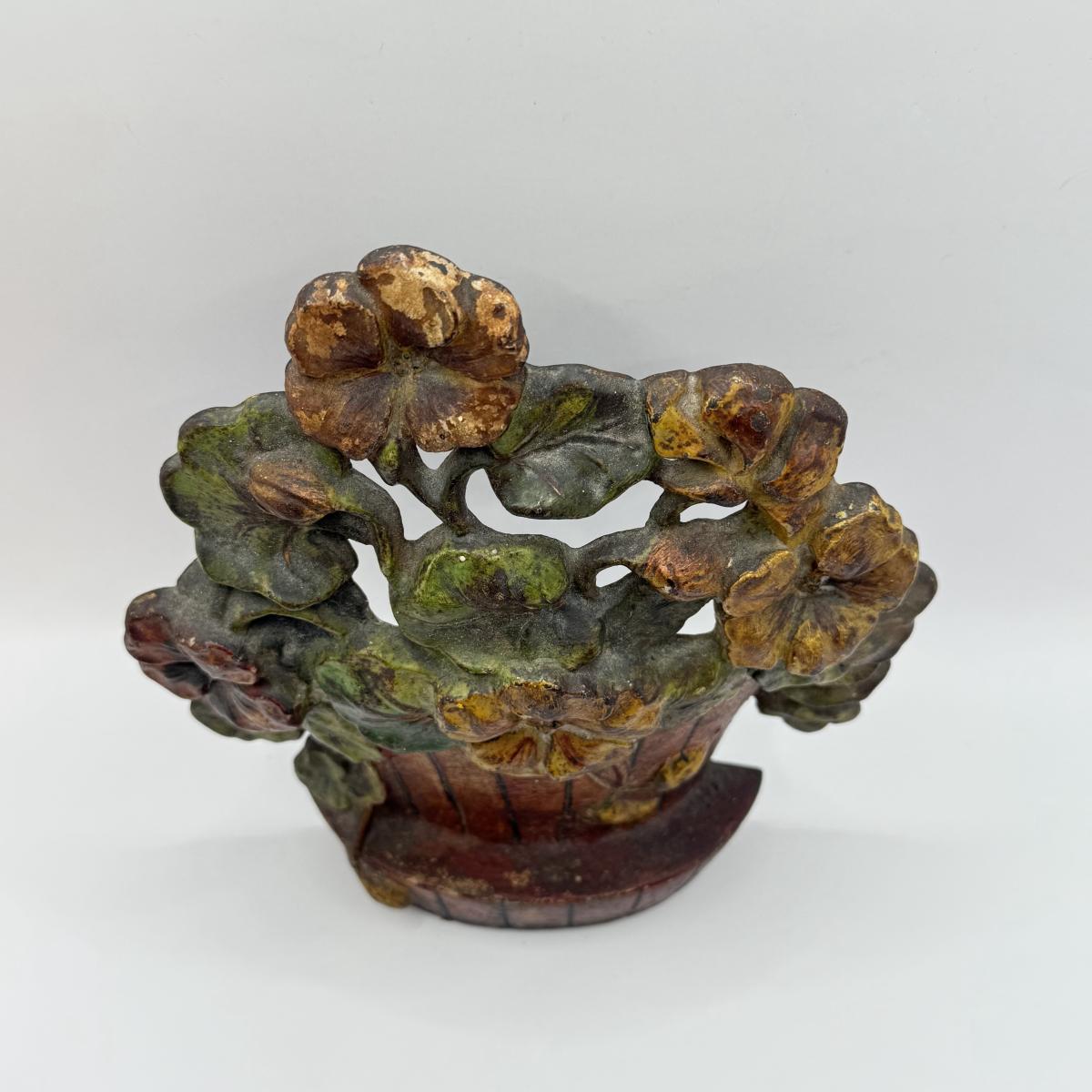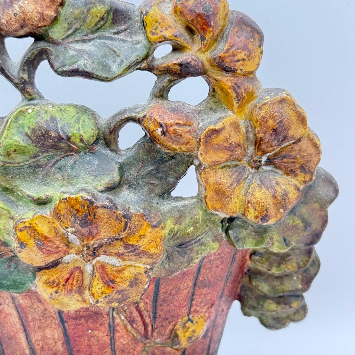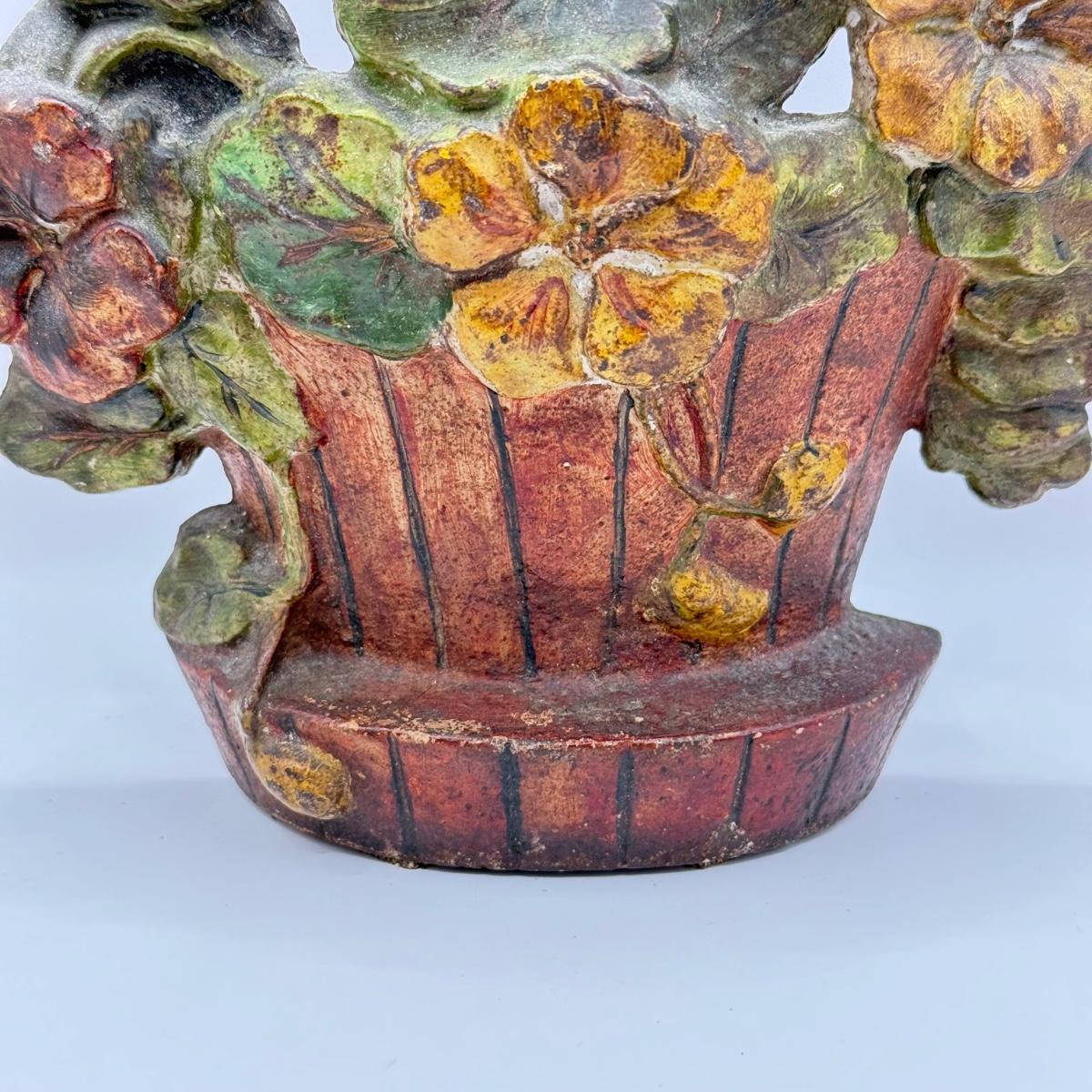 LOT 31F: Vintage Cast Iron Basket of Flowers Doorstop & Signed Copy of “Doorstops: Identification & Values” by Jeanne Bertoia