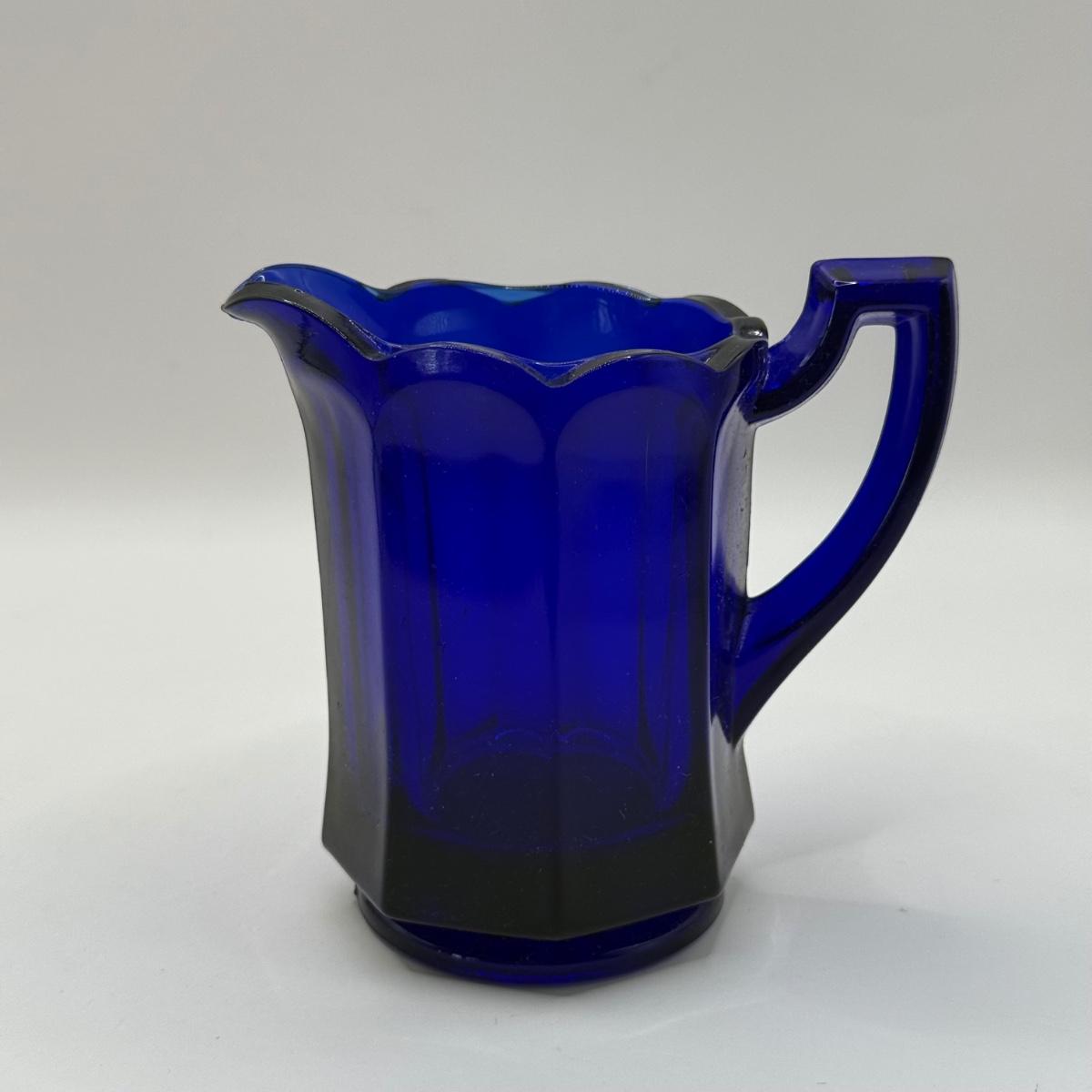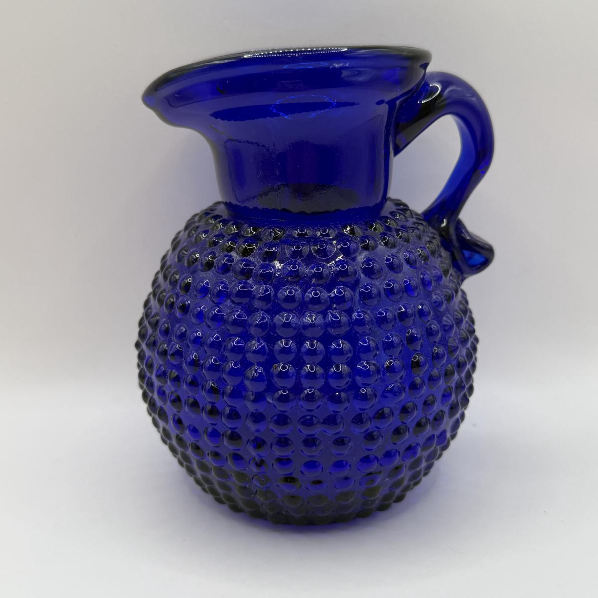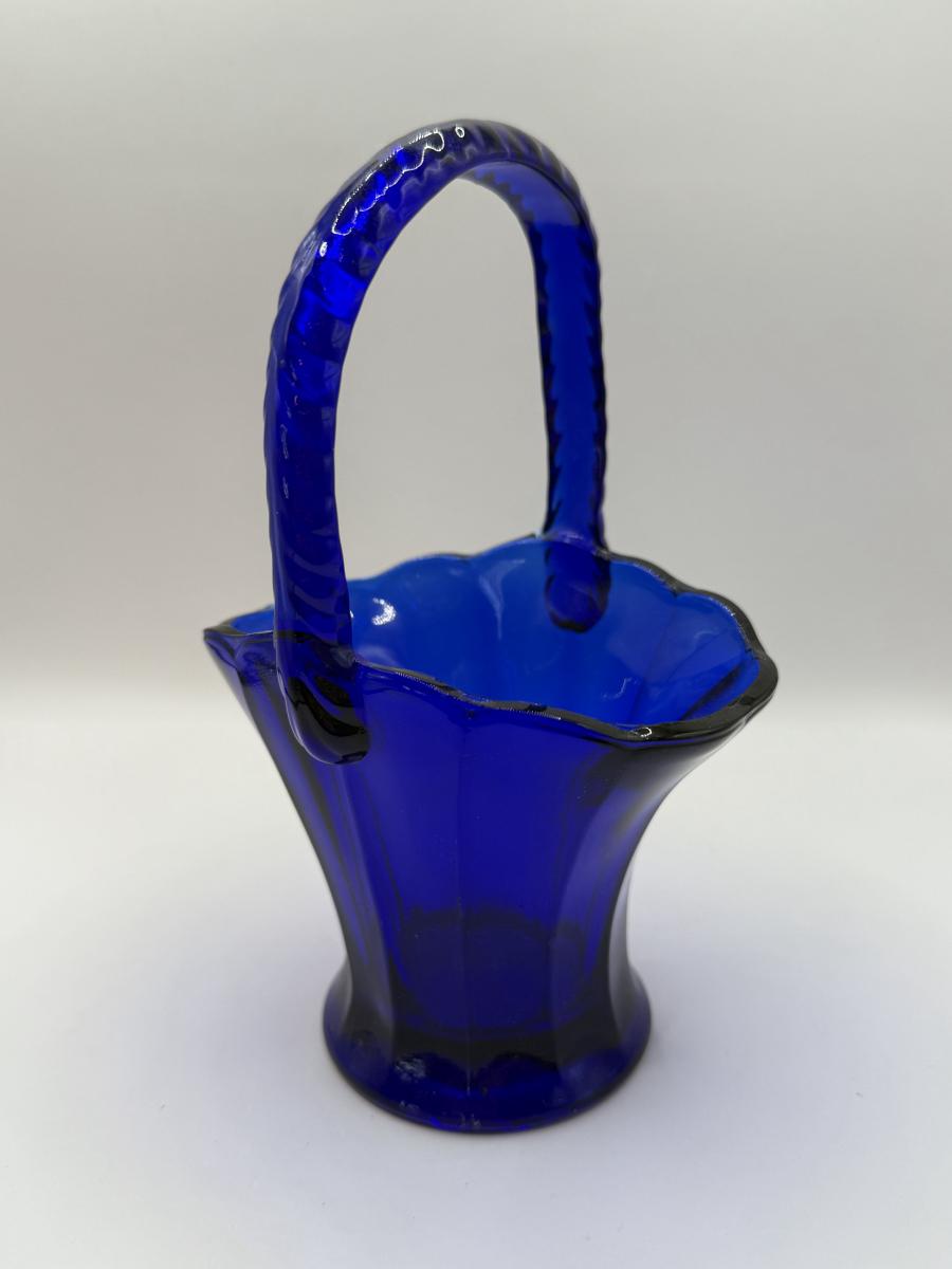 LOT 35F: Vintage Cobalt Blue Glass: Basket, Hobnail Pitcher & More