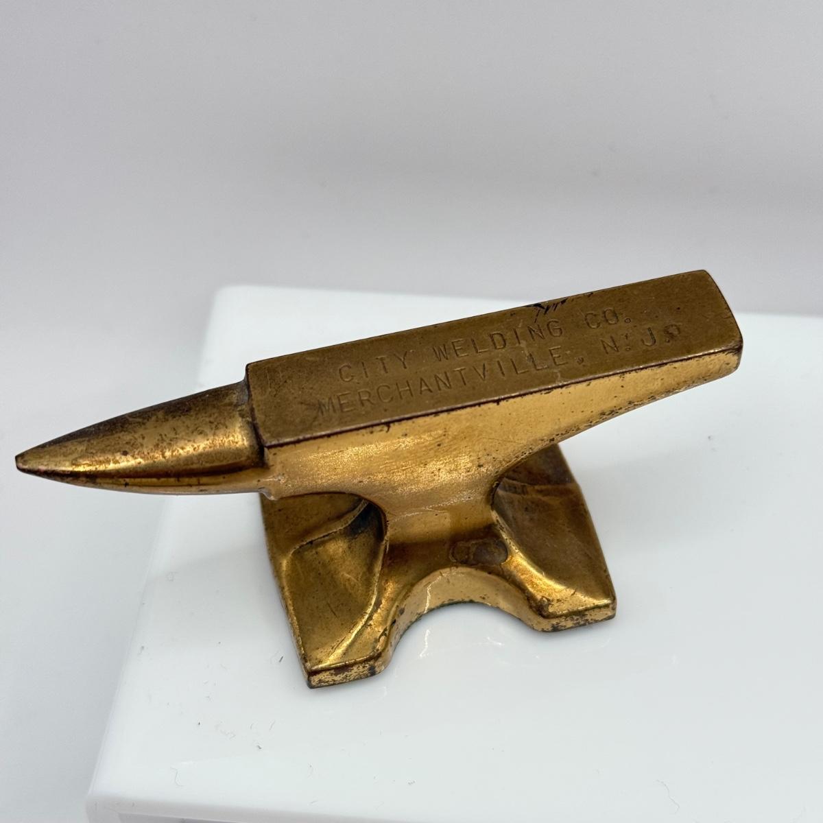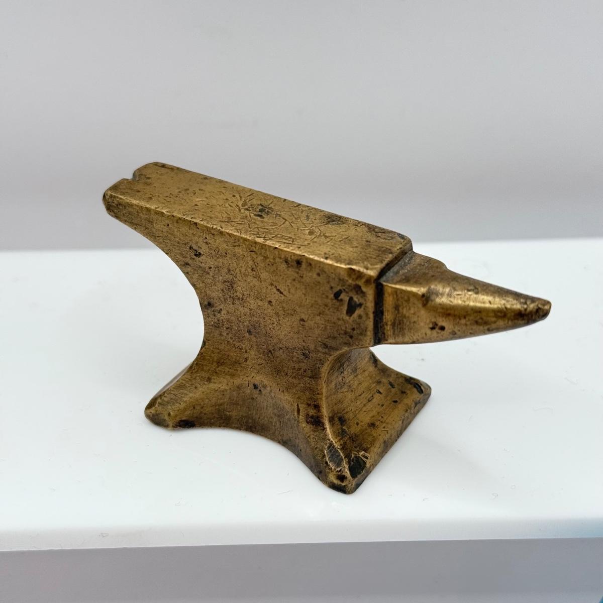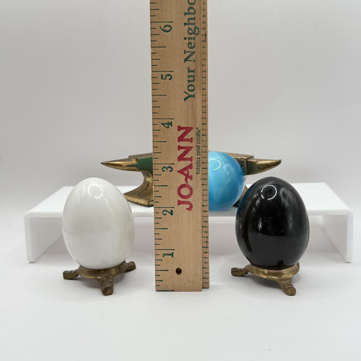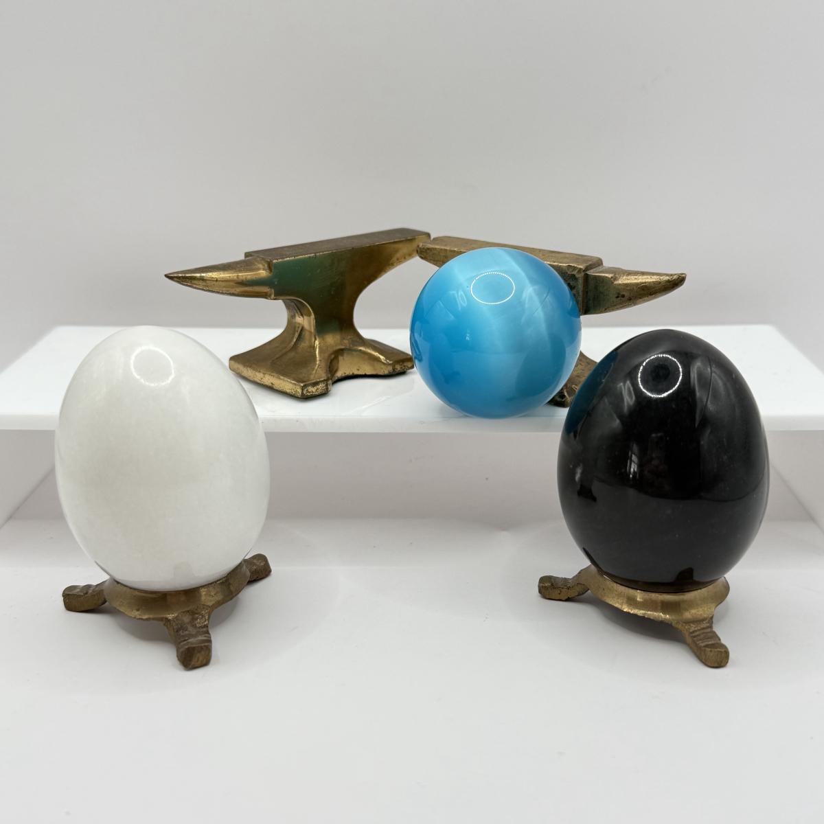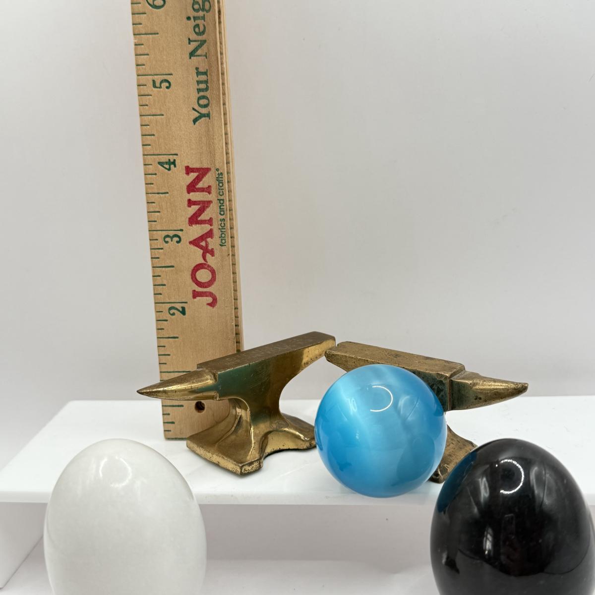 LOT 42F: Unique Vintage Desk Decor: Miniature Brass Anvils & Marble Eggs