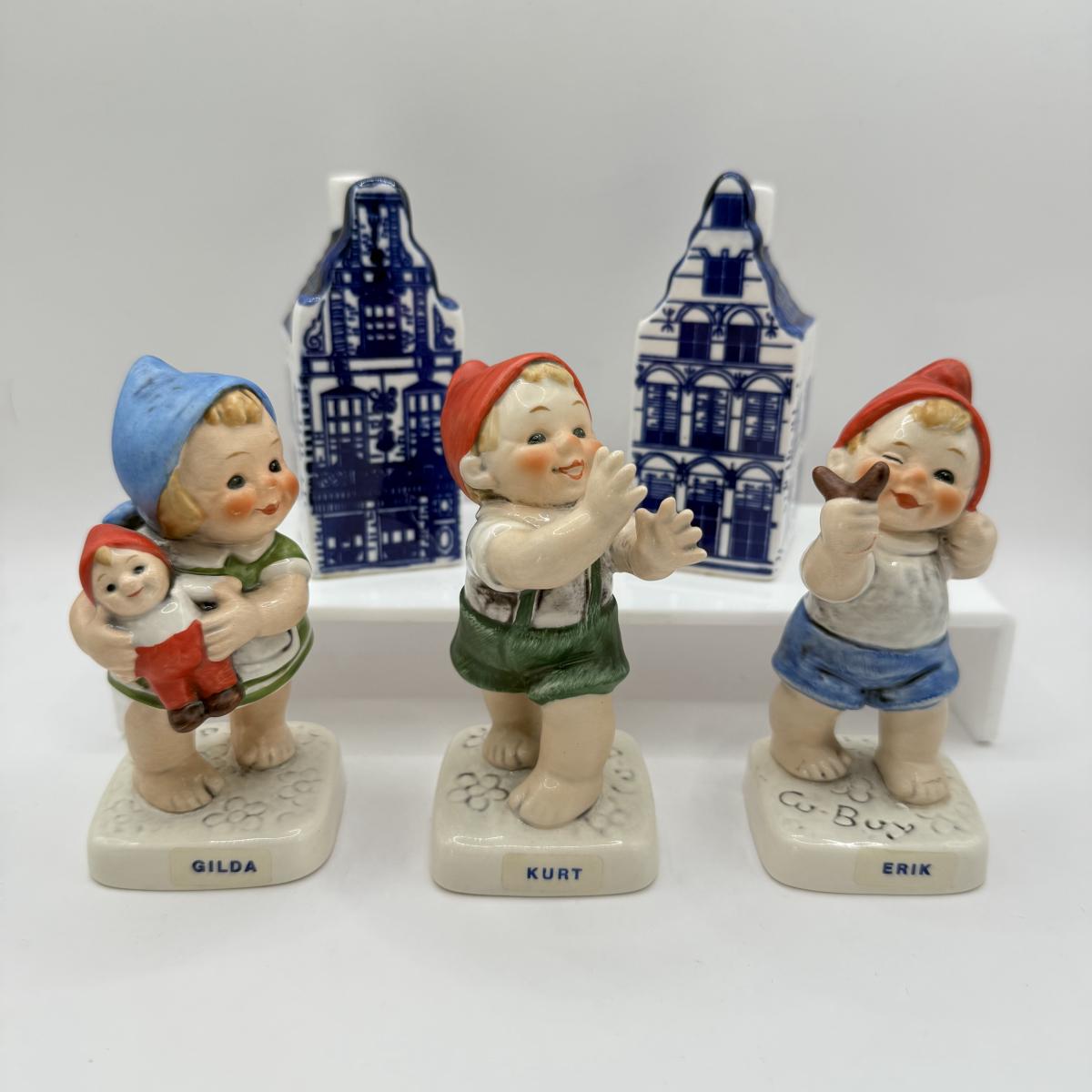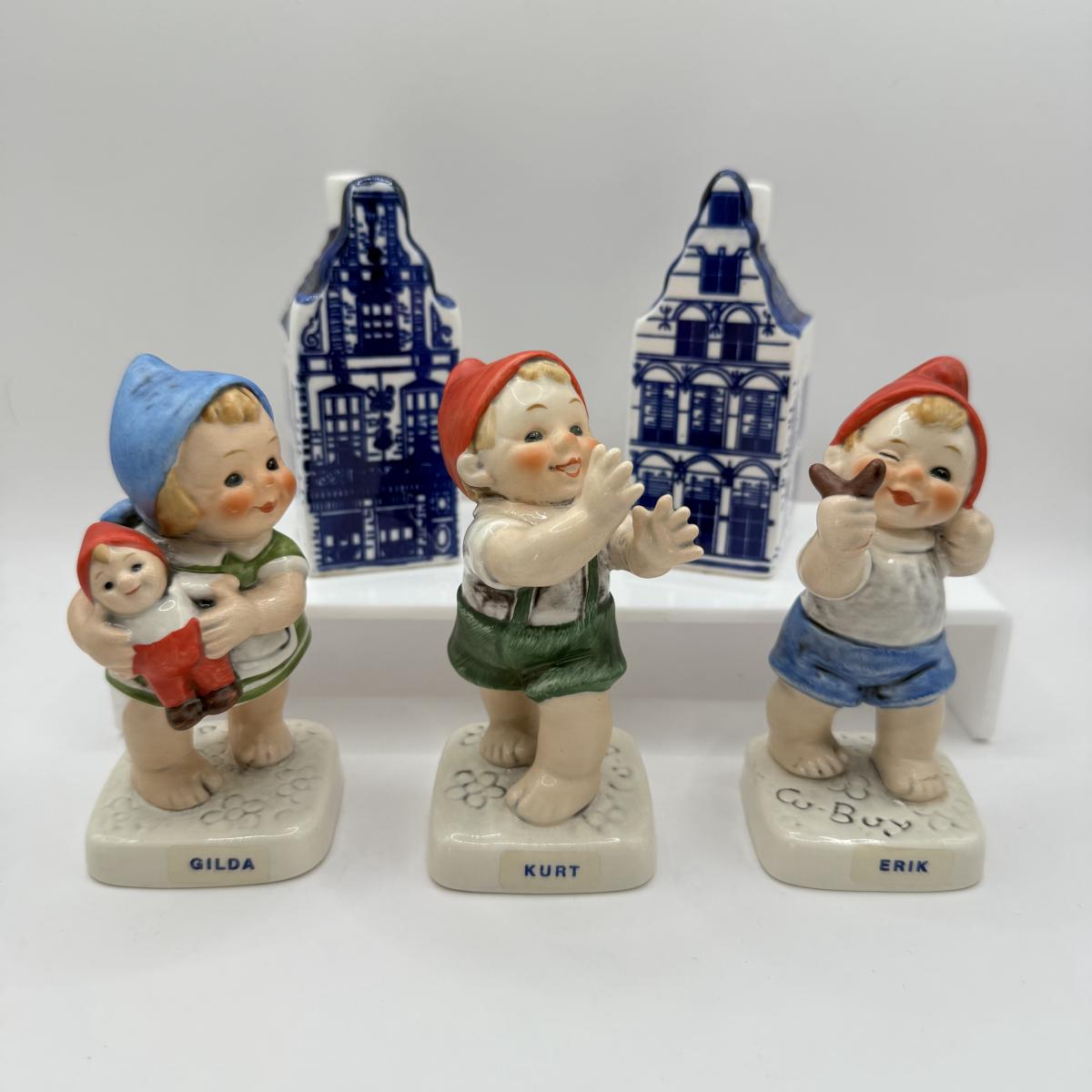 LOT 44F: Vintage Goebel Co- Gilda, Kurt & ErikPorcelain Figurines & Delft Blue Salt and Pepper Shakers