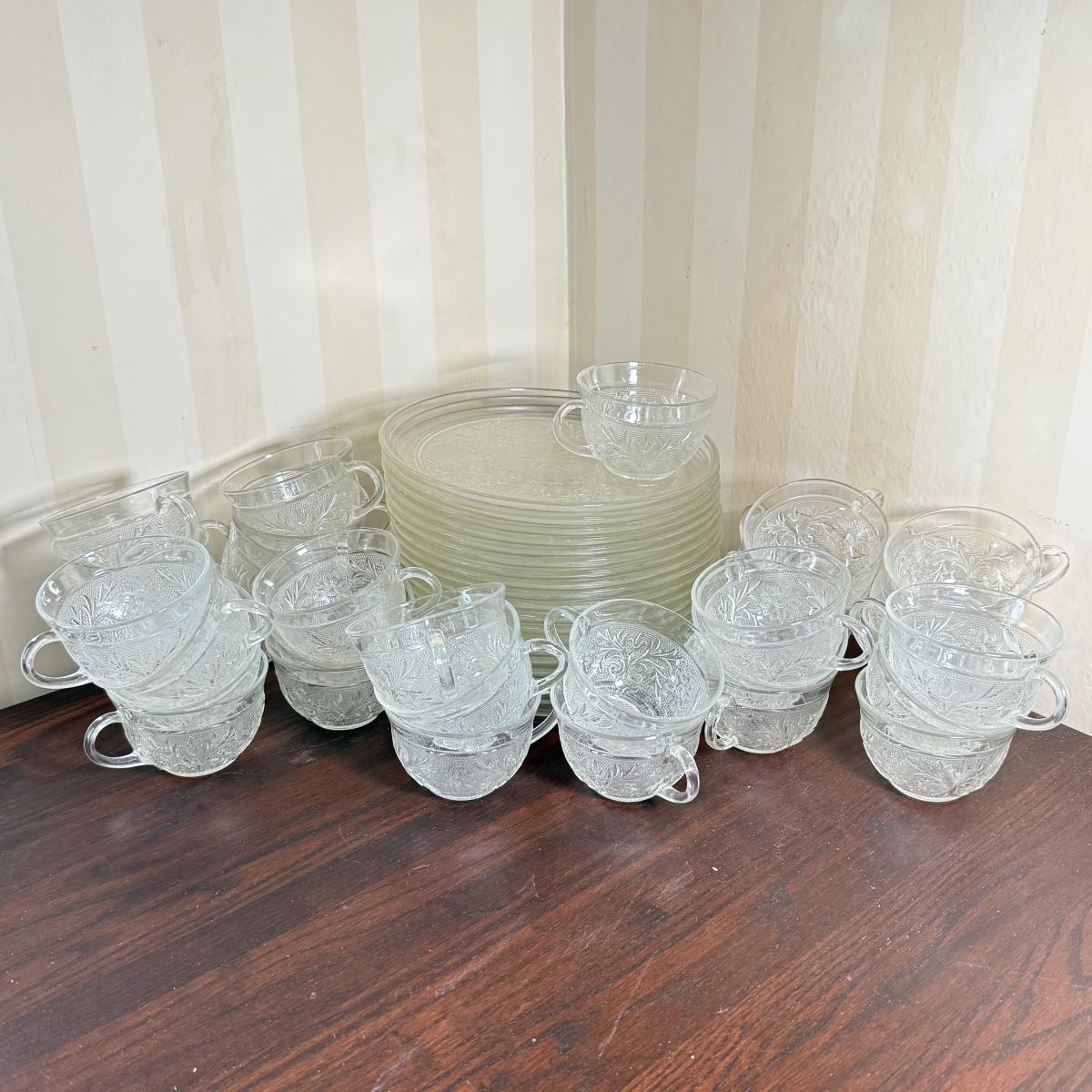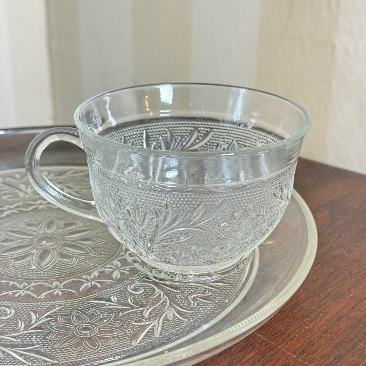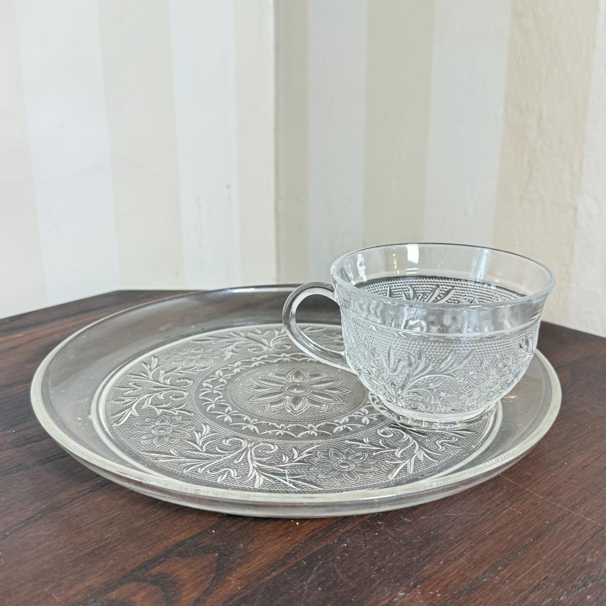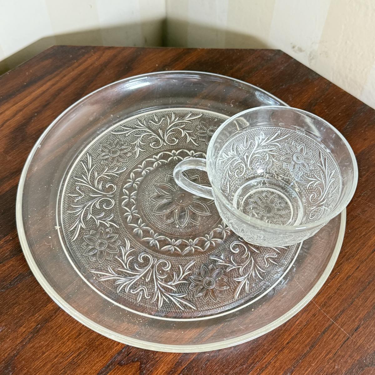 LOT 56L: Vintage Indiana Glass Tiara Sandwich Snack Plates w/ Cups