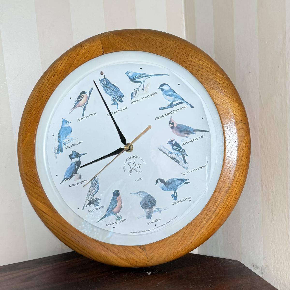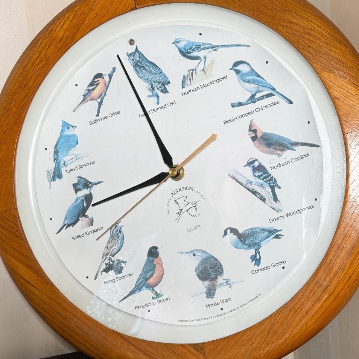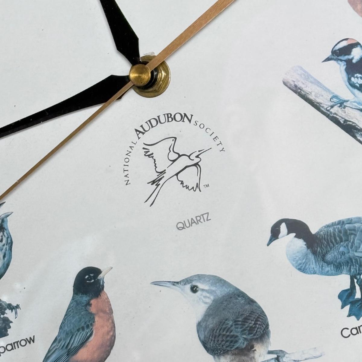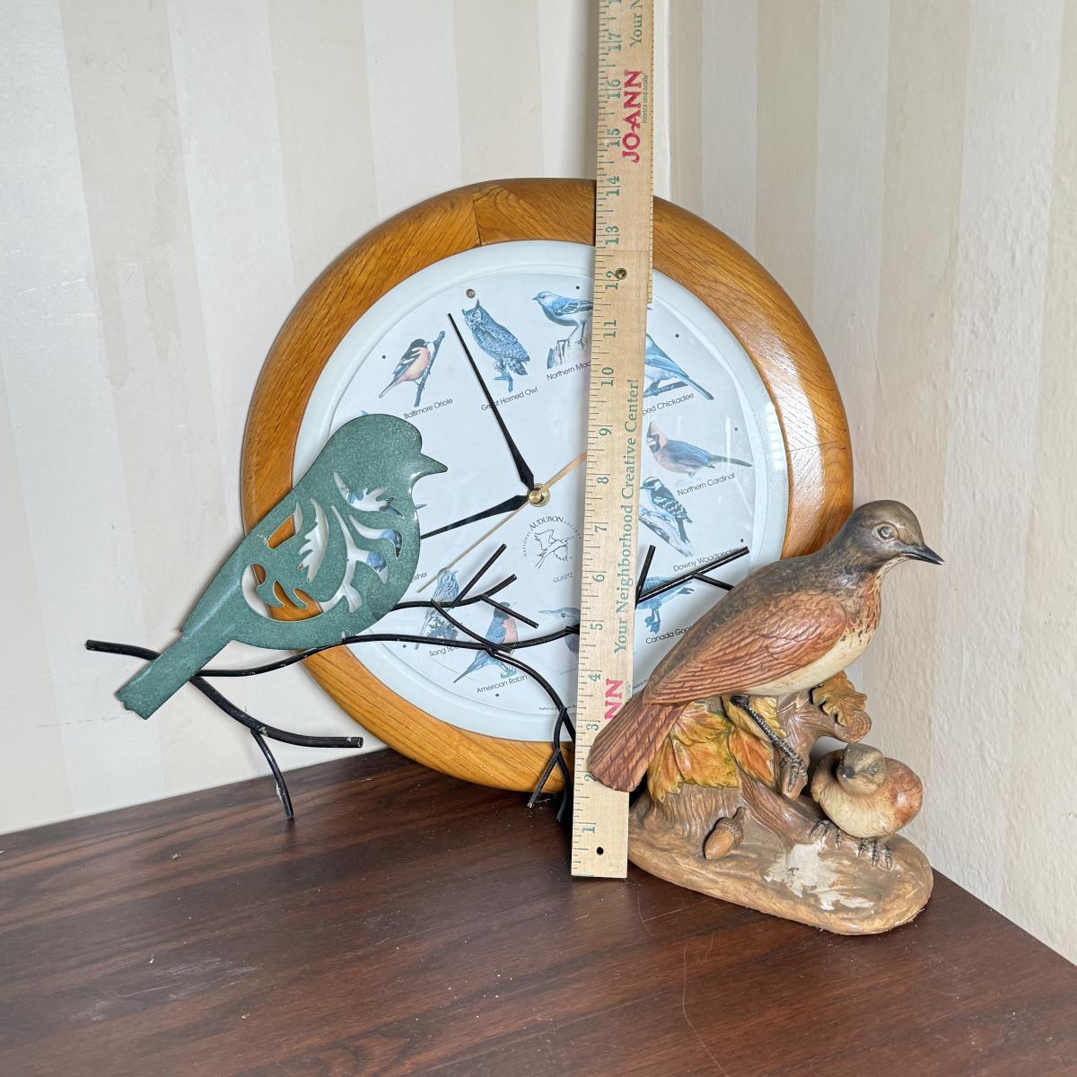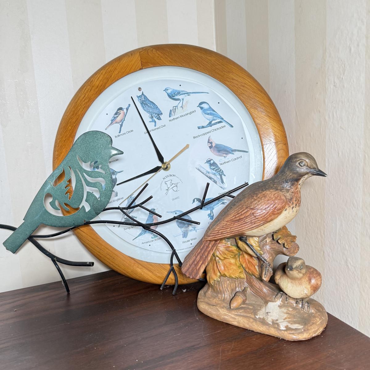 LOT 57L: Bird Decor: Metal Wall Hanging, National Audubon Society Clock & Ceramic Statue