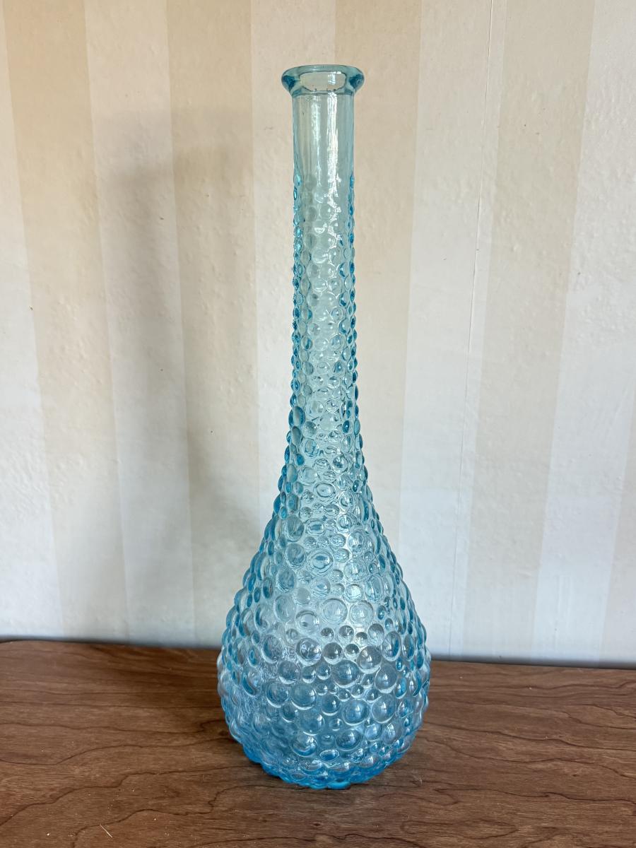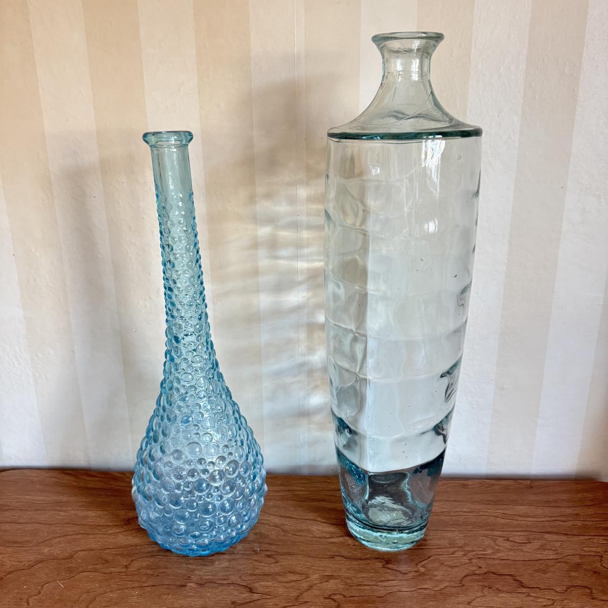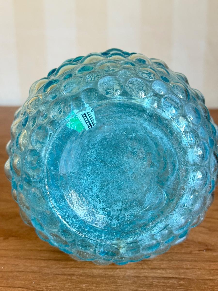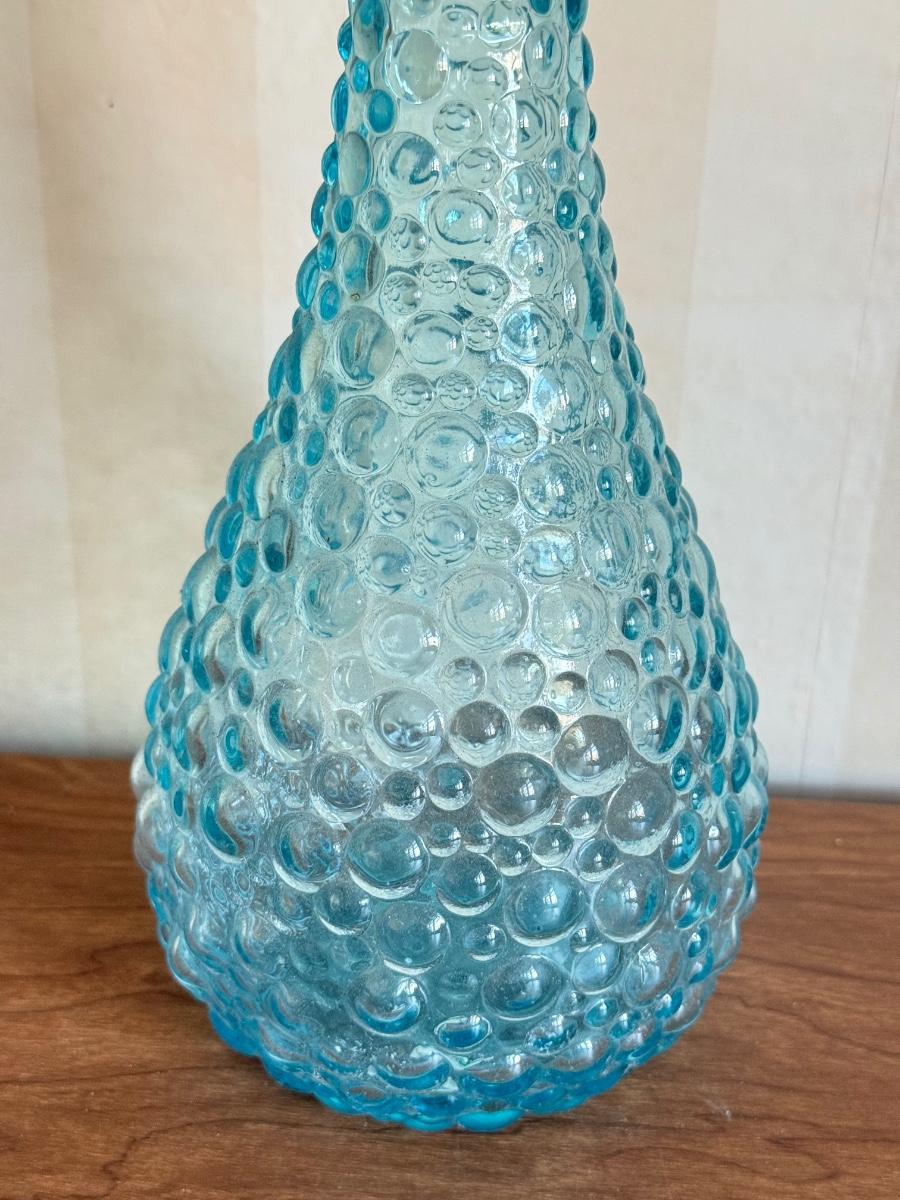 LOT 60K: Vintage Light Blue Art Glass Vases featuring Bubble glass bottle
