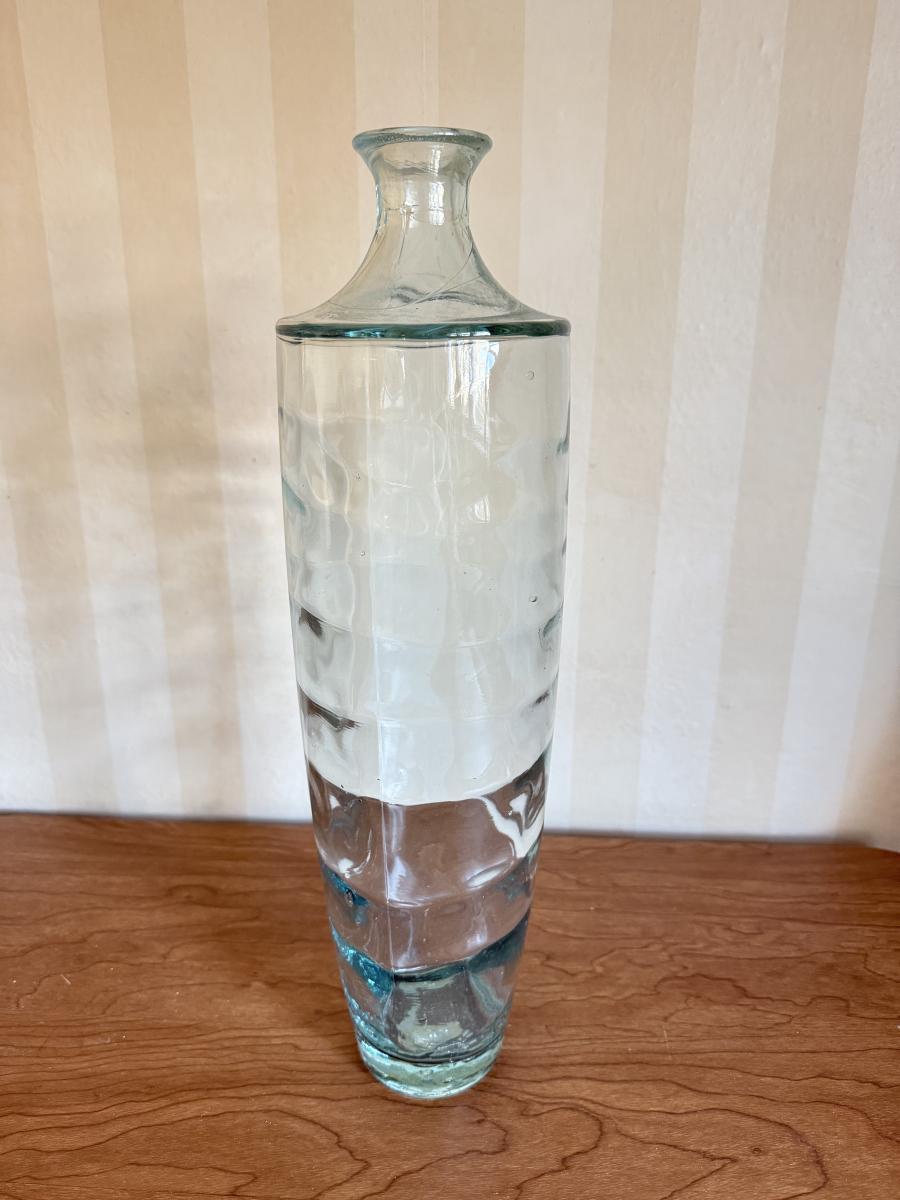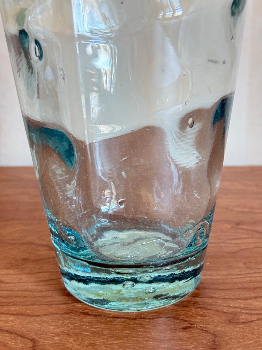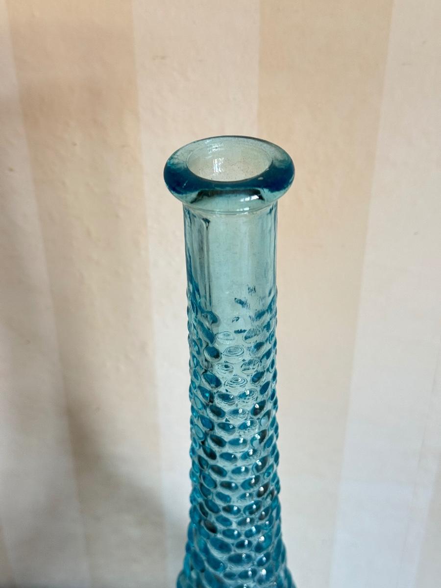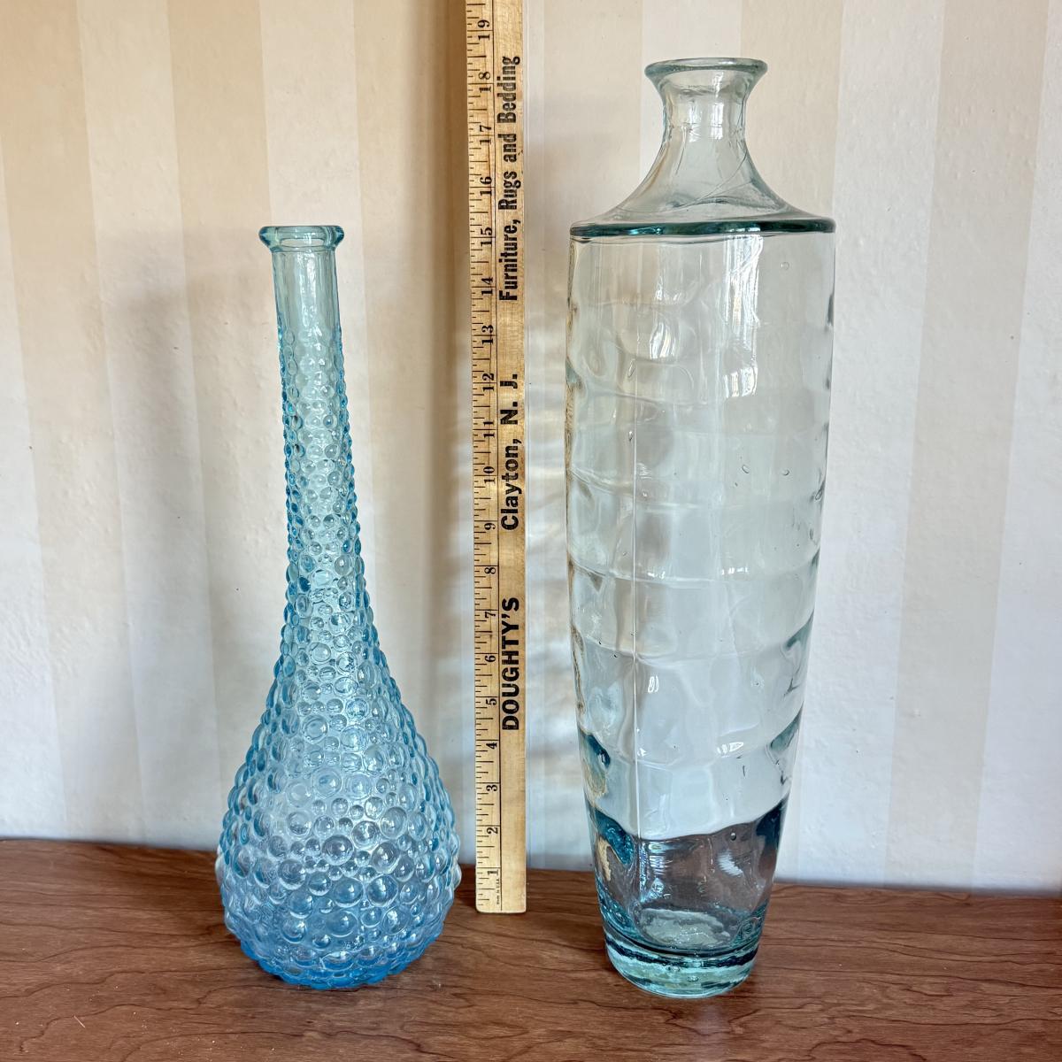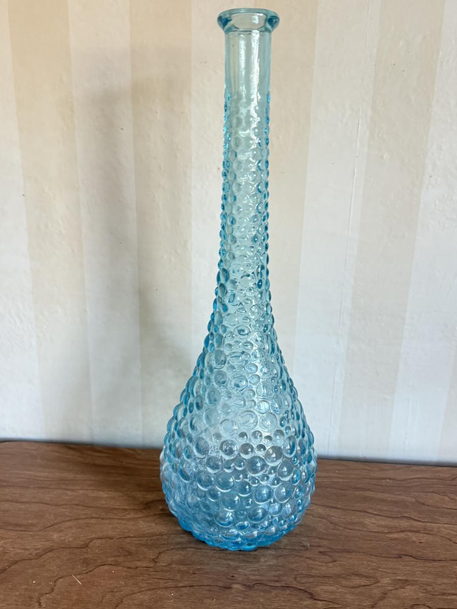 LOT 60K: Vintage Light Blue Art Glass Vases featuring Bubble glass bottle