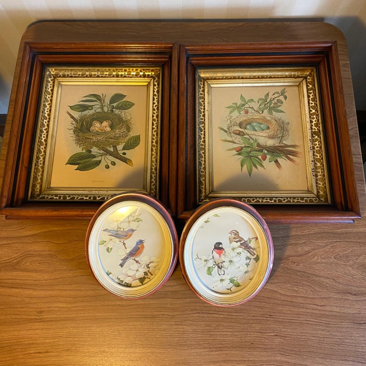 LOT 63F: 4 Framed Artwork - 2 Replica Thomas Gentry works and 2 Vintage Bird Prints