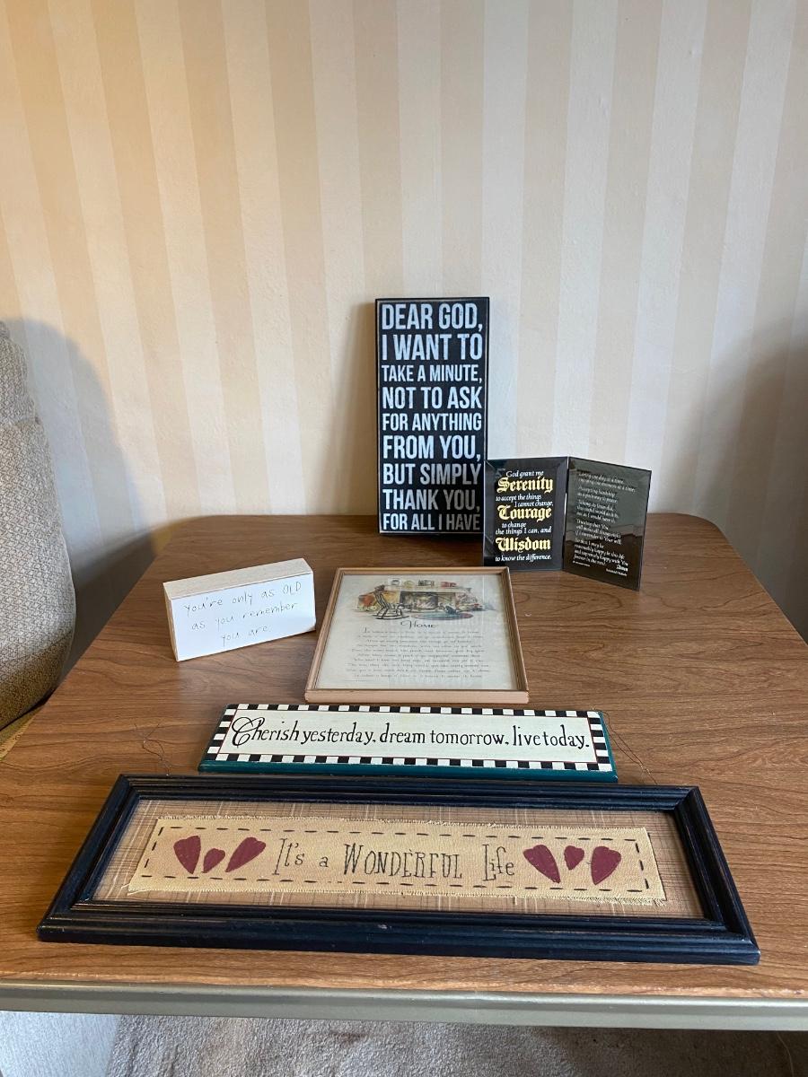 LOT 70F: Assortment of Home Decor with Motivational and Inspirational Quotes featuring Vintage "Home" Poem