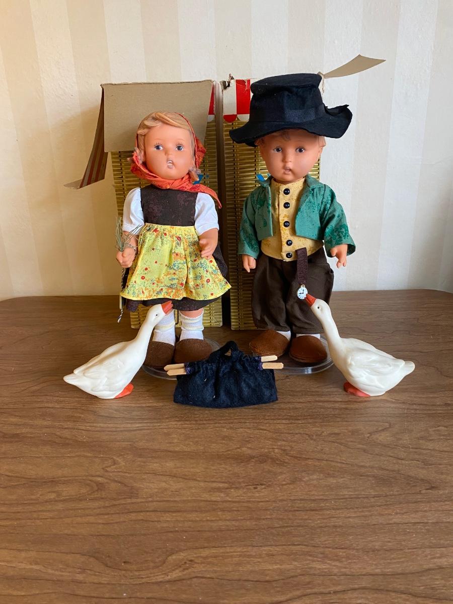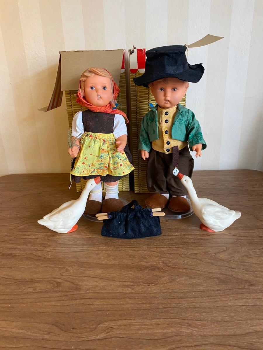 LOT 74F: Vintage M.J. Hummel Goebel "Goose Girl" Vinyl Doll w/ Original box &Goebel MERRY WANDERER Vinyl Doll with original box