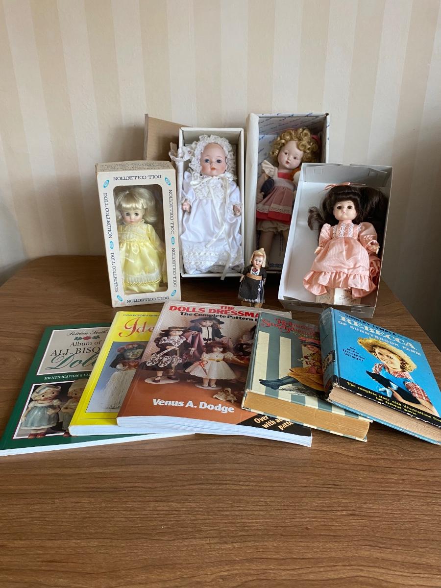 LOT 83F: (5) Small Vintage Dolls and (5) Books About Dolls