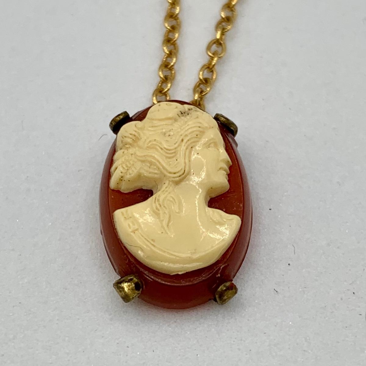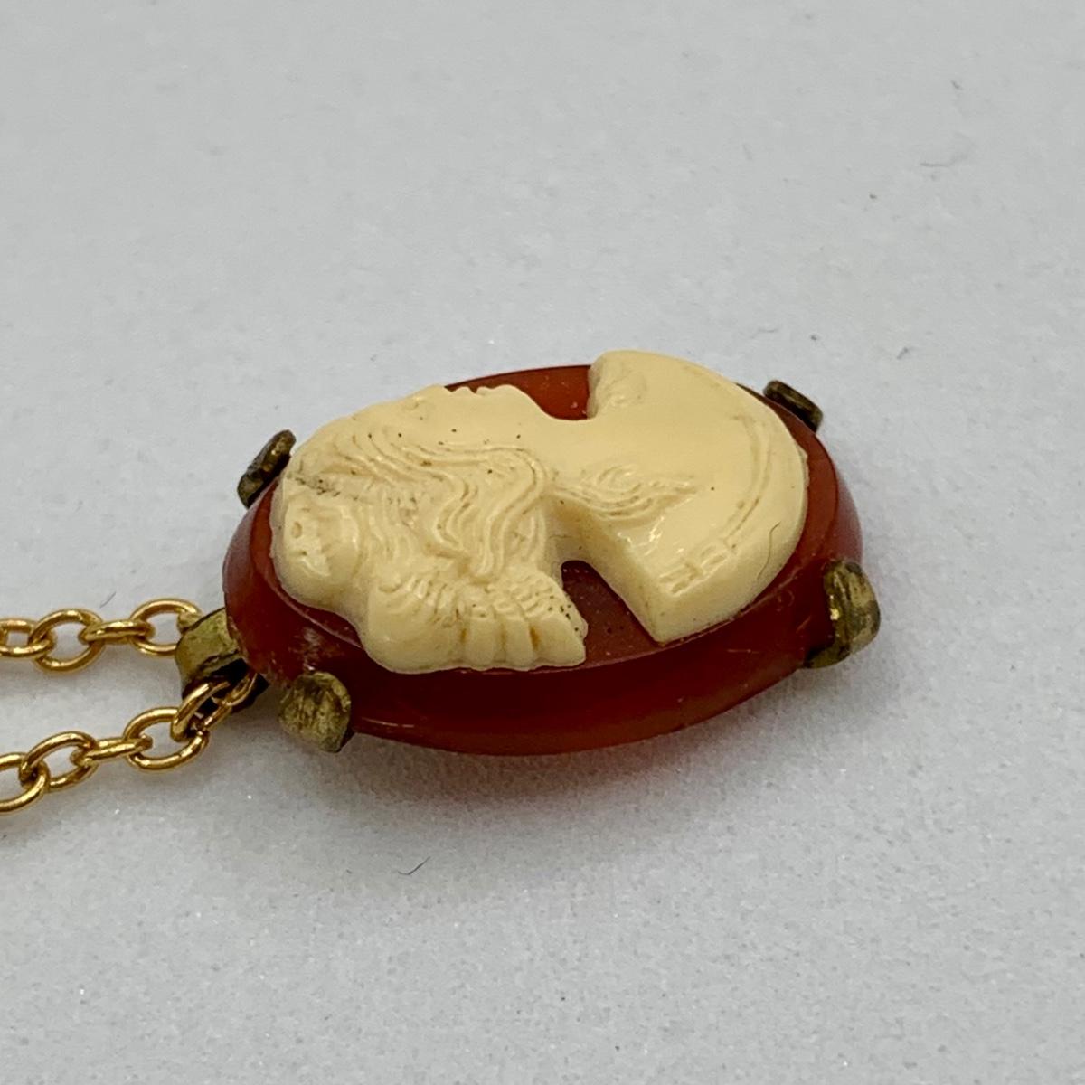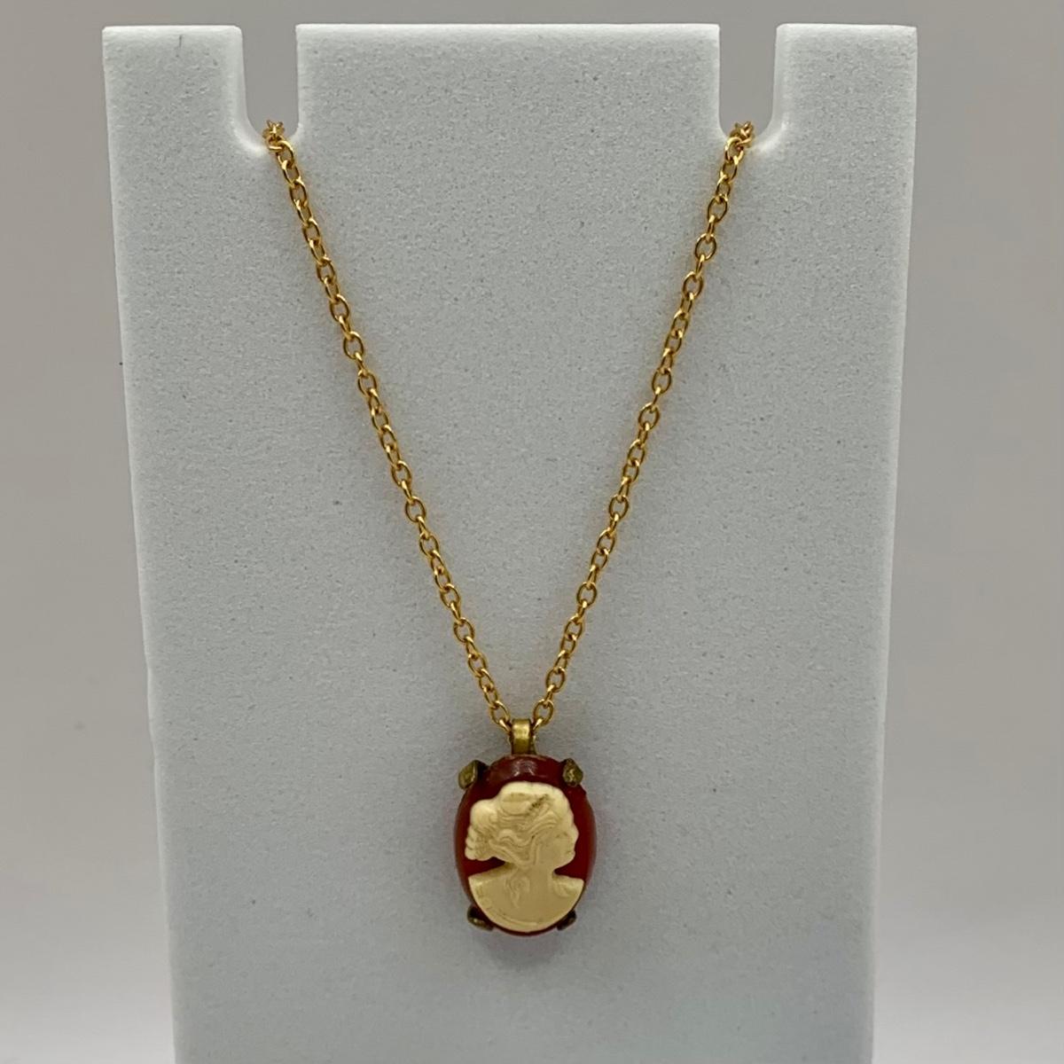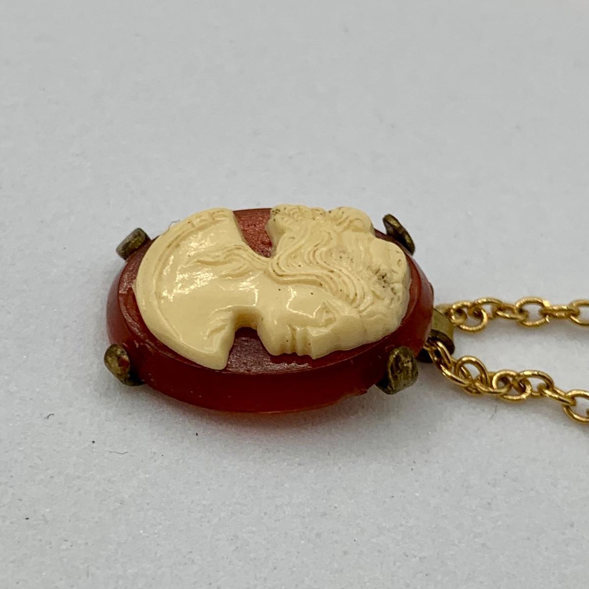 LOT 102 J: Cameo Pendant w/ Gold Tone Chain