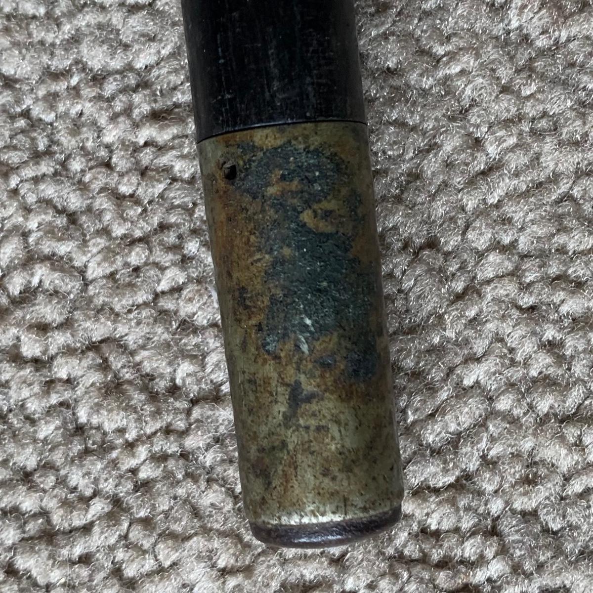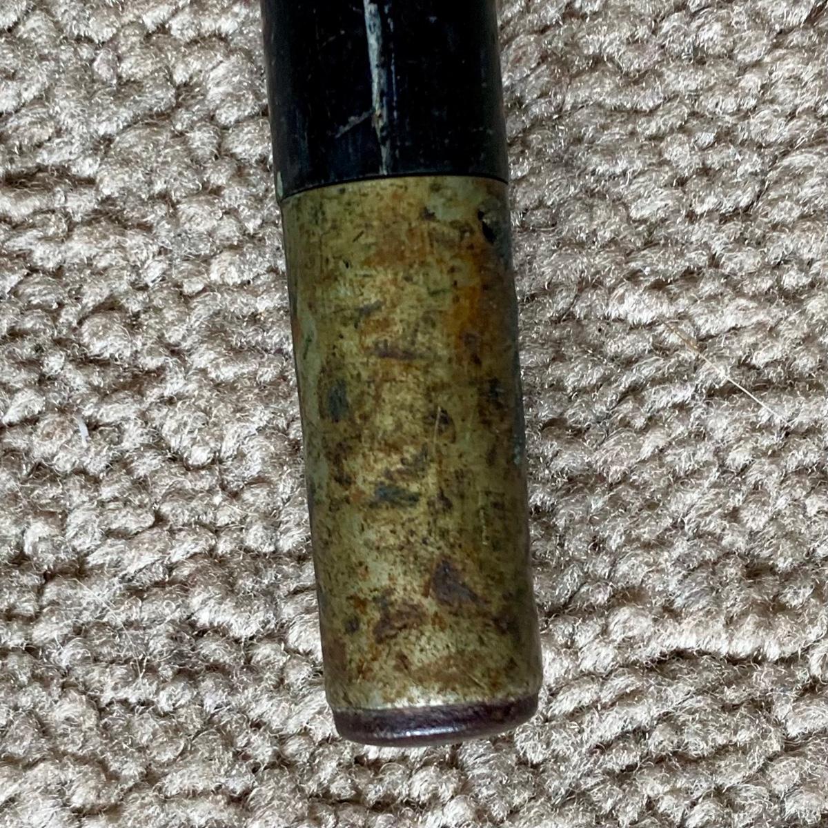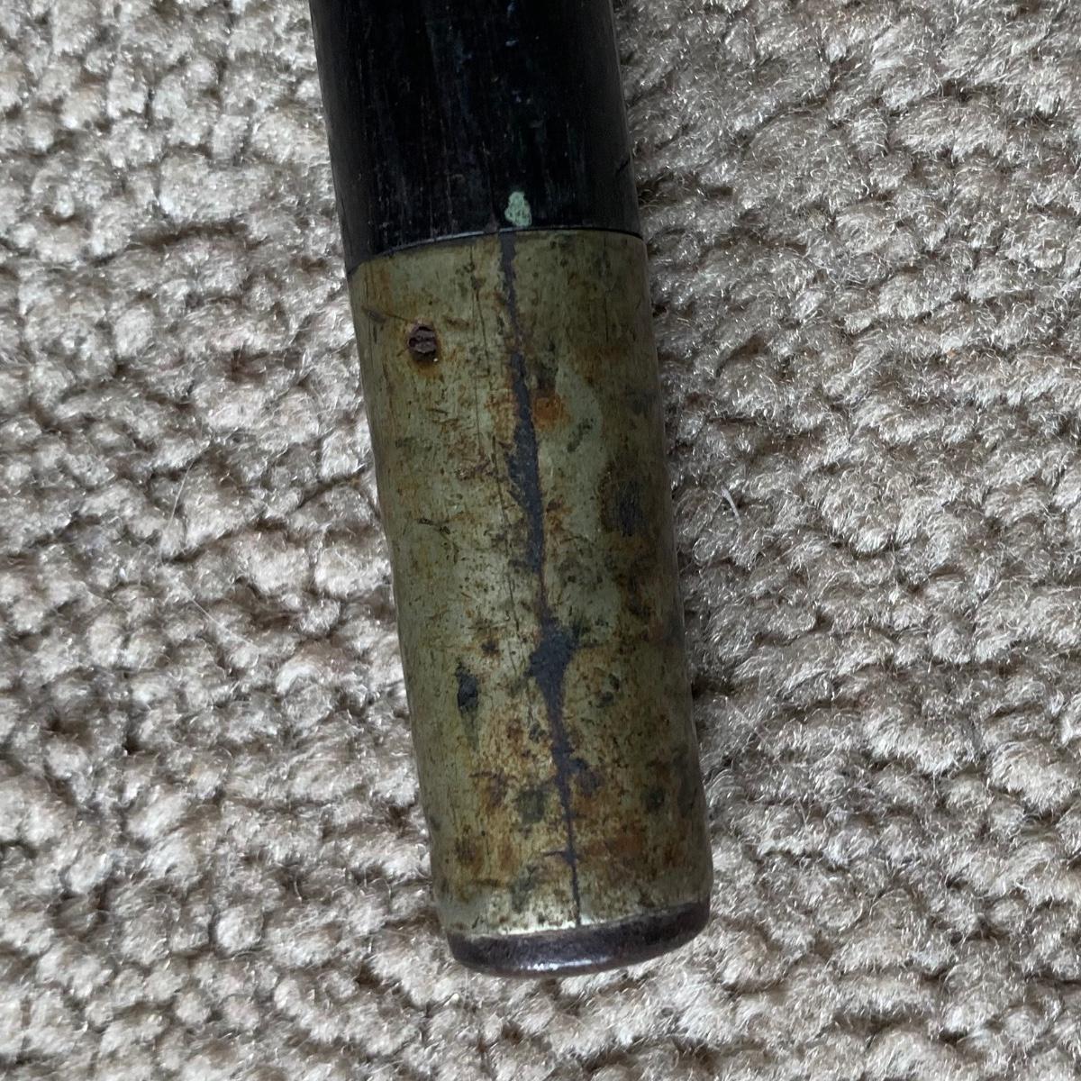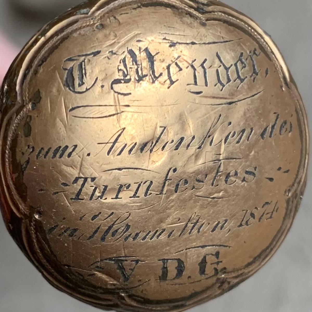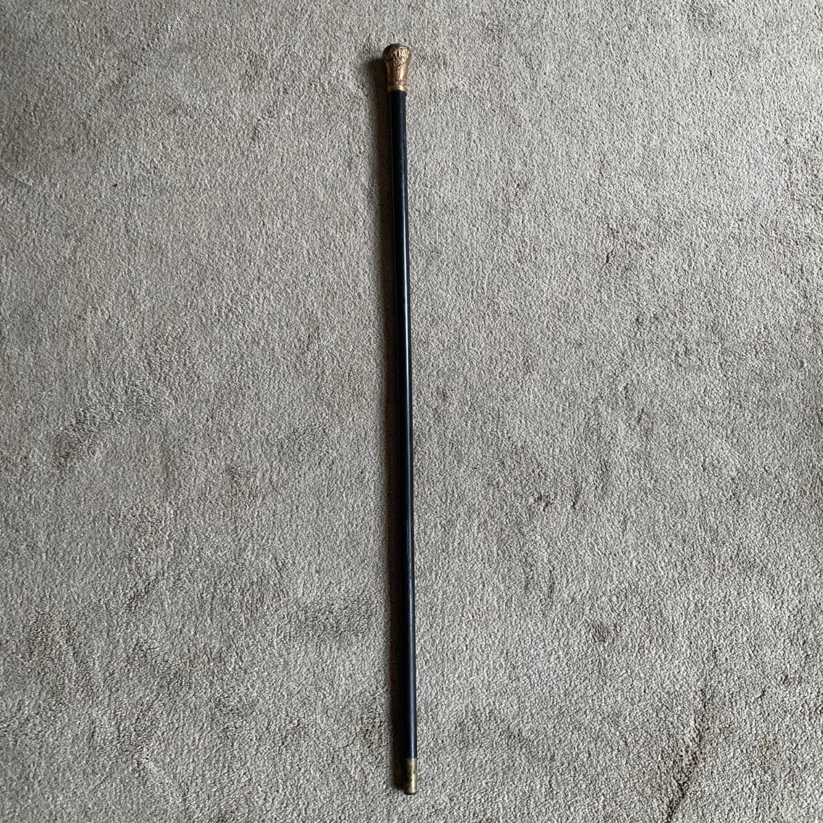 LOT 115 L: Antique 1874 Engraved Gold Plated Handle Walking Cane w/ Ebony Wood Shaft