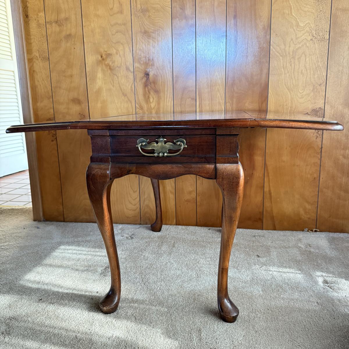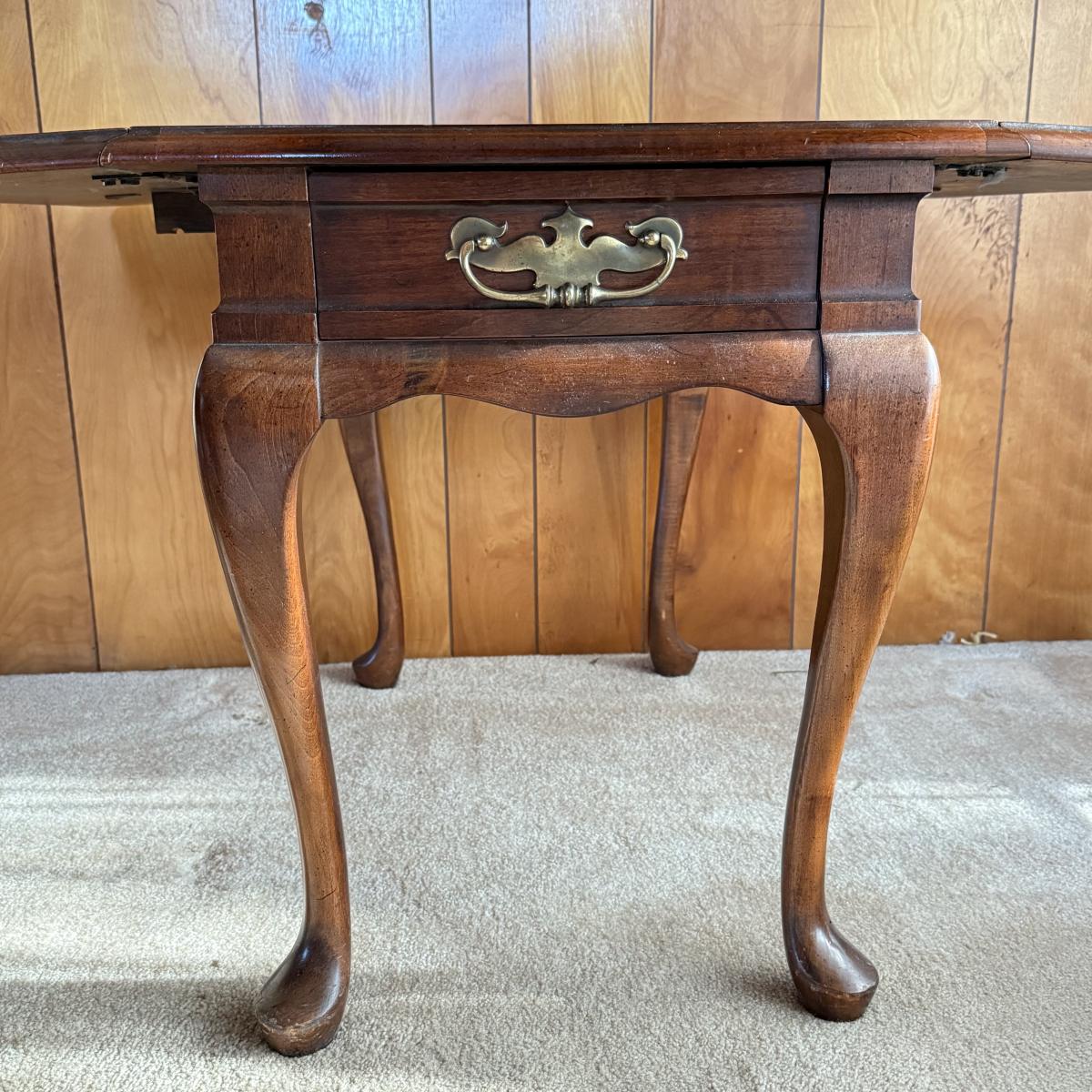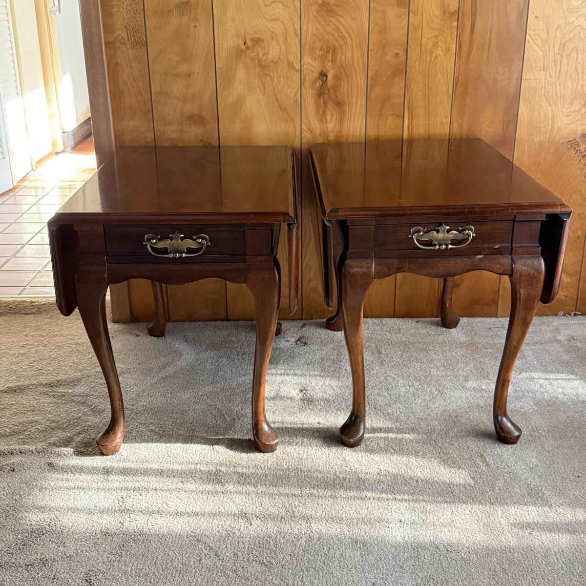 LOT 122F: Pair of Beautiful Solid Wood Drop-Leaf Queen Anne Style Mersman End Tables