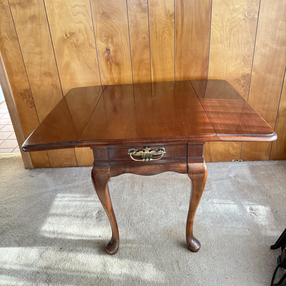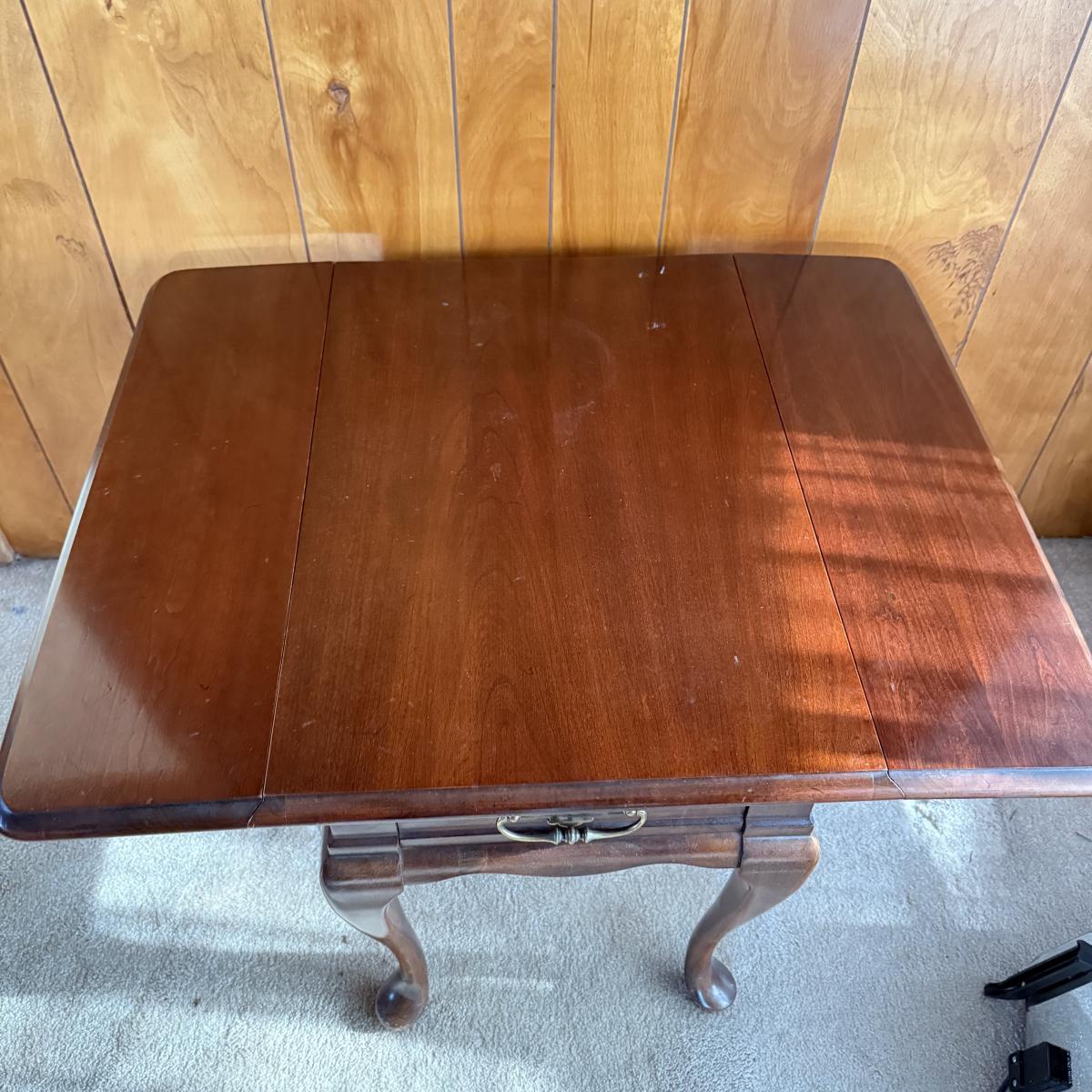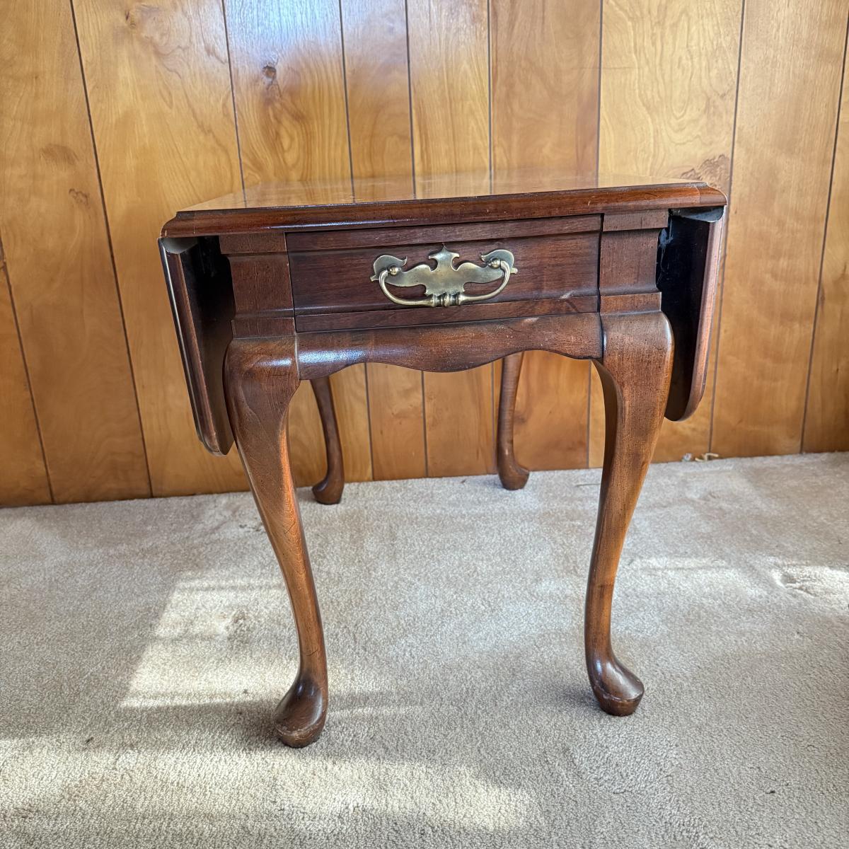 LOT 122F: Pair of Beautiful Solid Wood Drop-Leaf Queen Anne Style Mersman End Tables