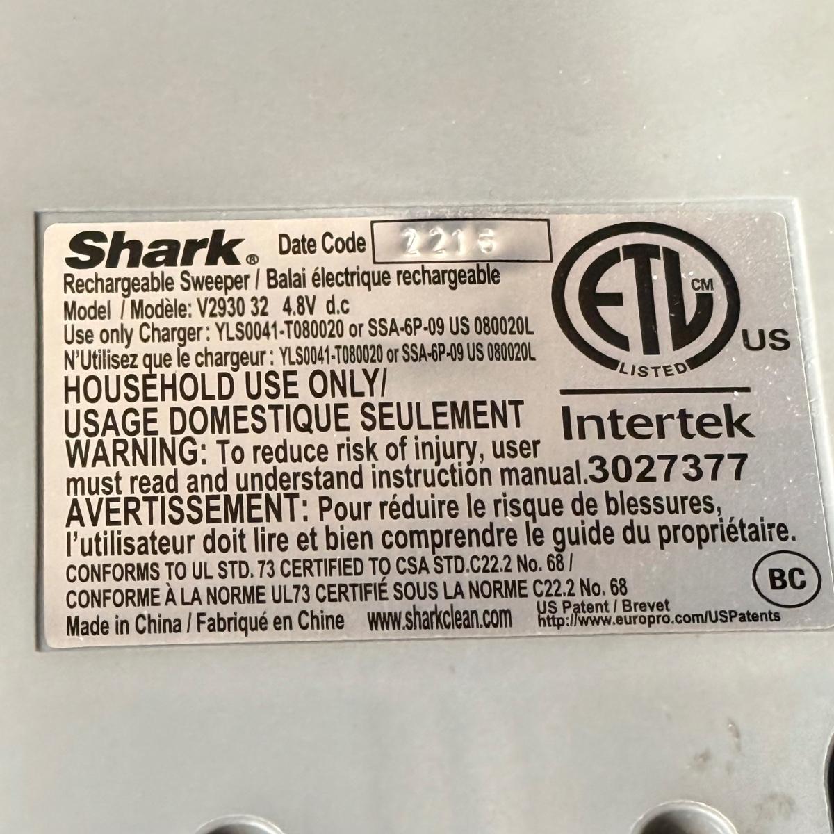 LOT 124K: Shark Rechargeable Sweeper Model V2930 32