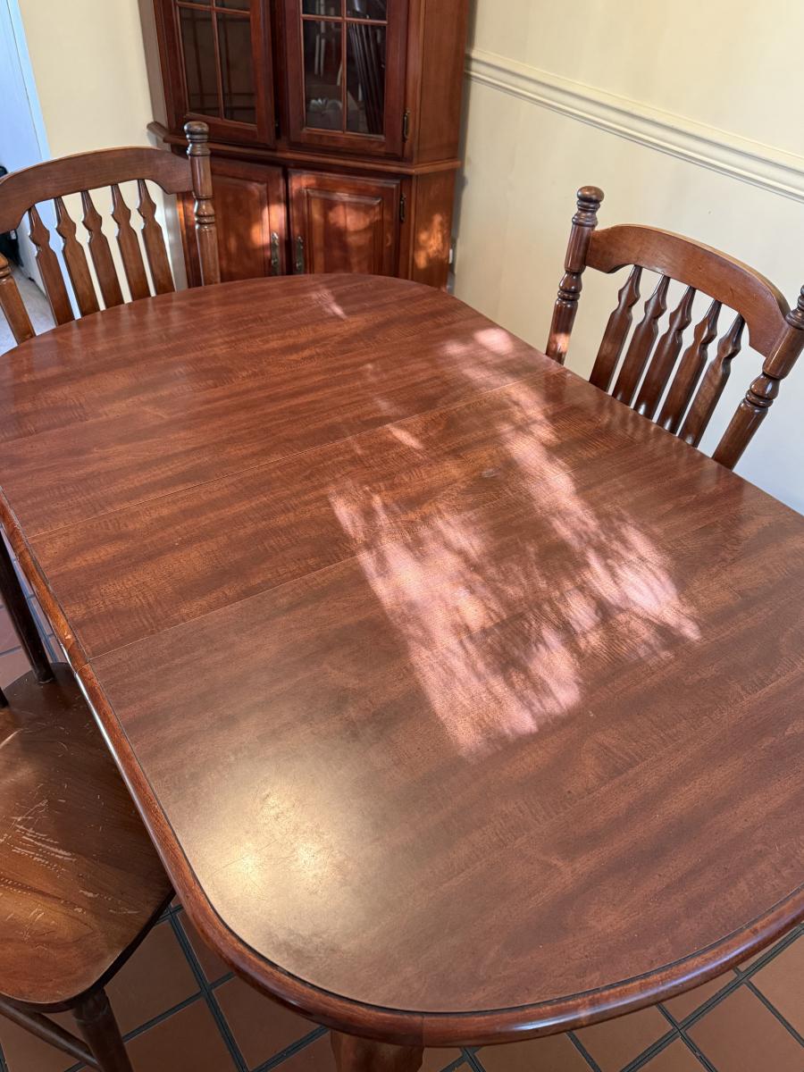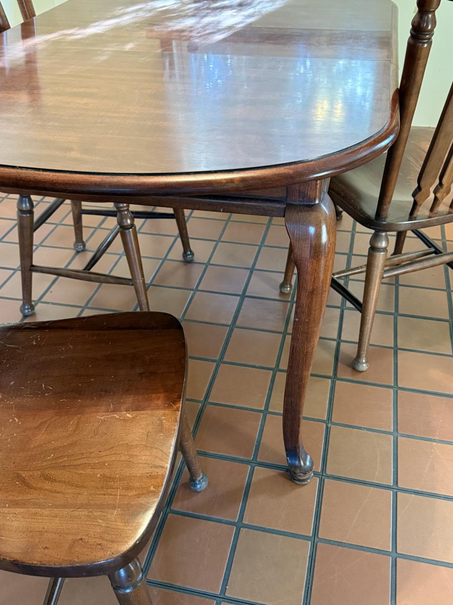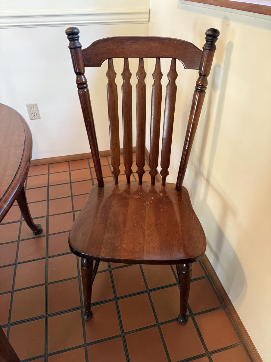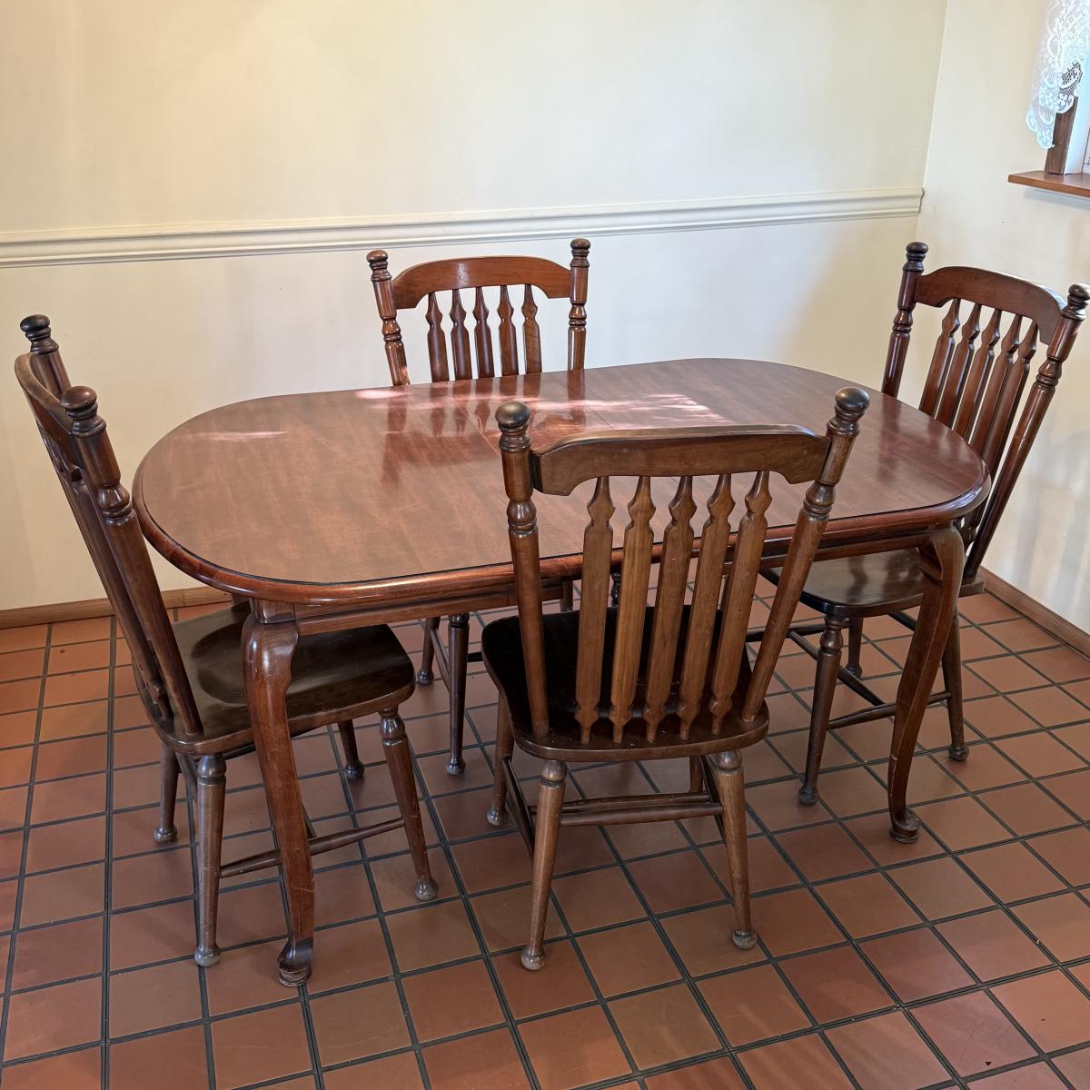LOT 128K: Beautiful Solid Wood Kitchen / Dining Table w/ Leaf & 4 Chairs