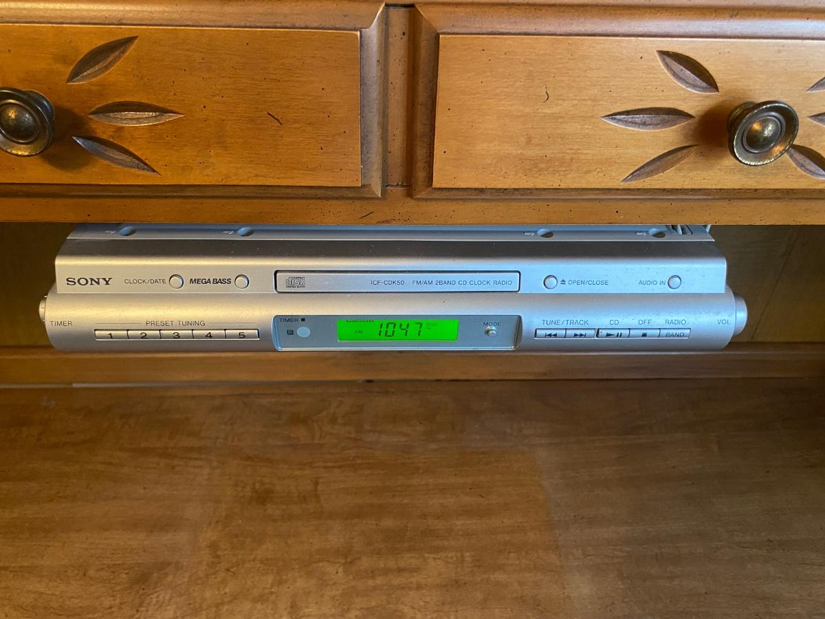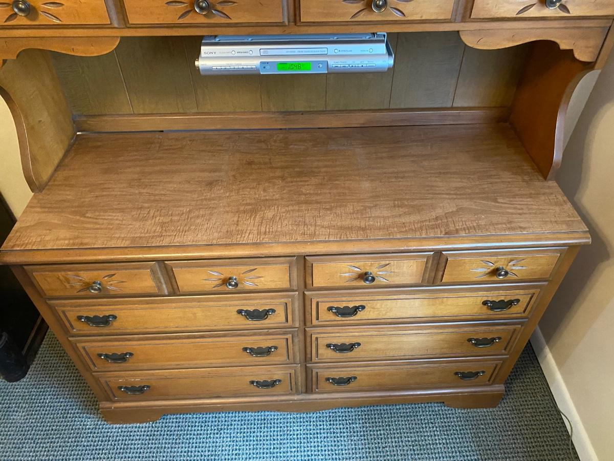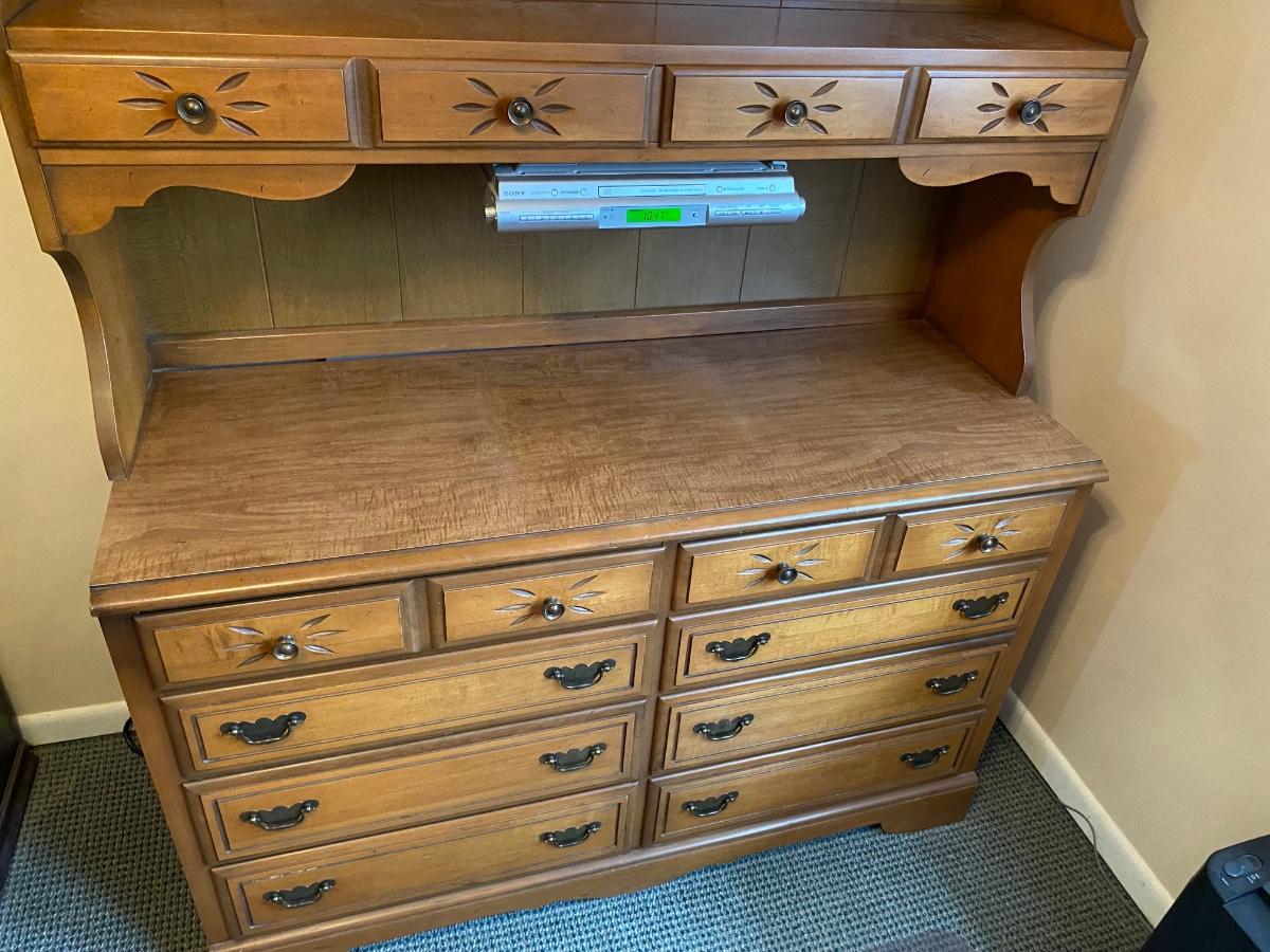 LOT 143U: Wooden Dresser Cabinet with Attached CD/Radio Player