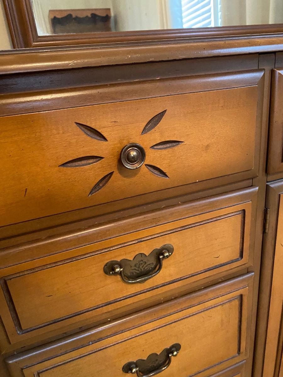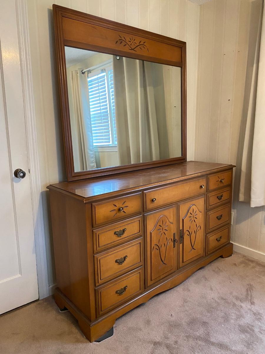 LOT 146U: Solid Wood Quality Bedroom Dresser and Mirror and Dresser with Bookcase topper
