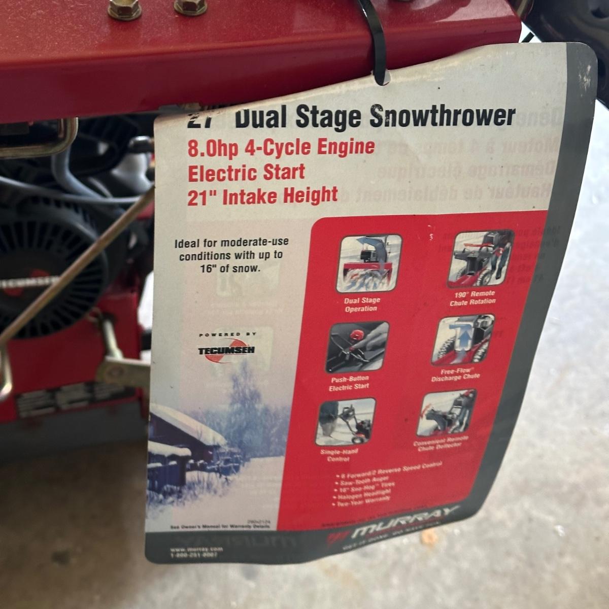 LOT 5G: Murray Performance 8 HP 27” Dual Stage Snowthrower - New with Tags