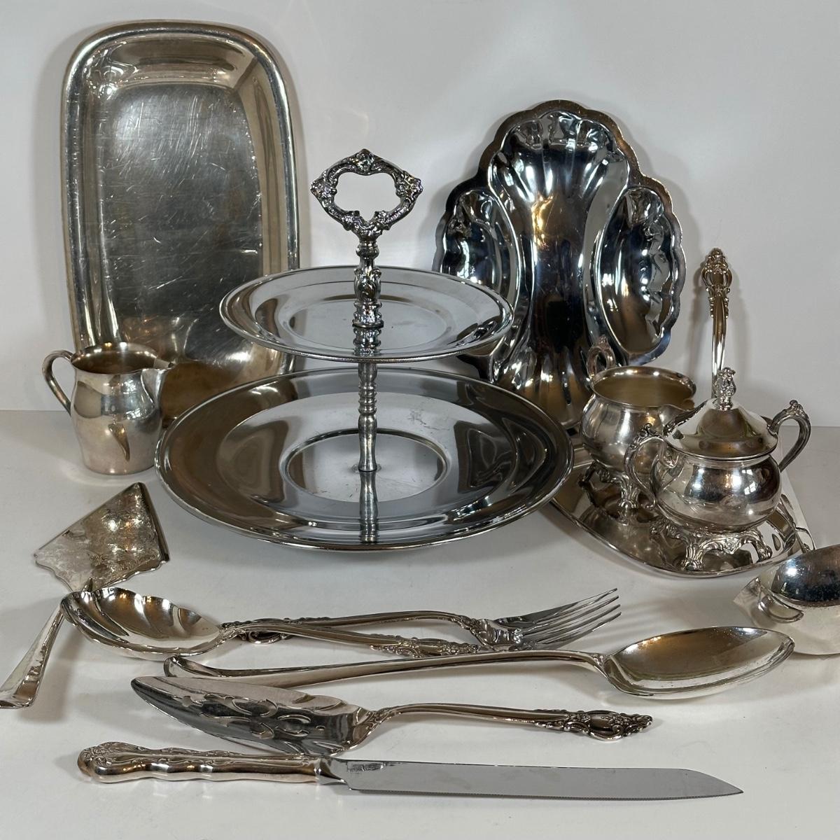 LOT 18D: Stainless Steel/Silver plate Decor, Flatware & More