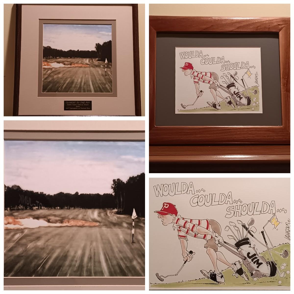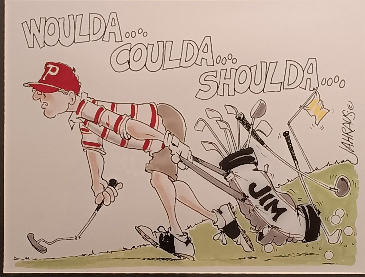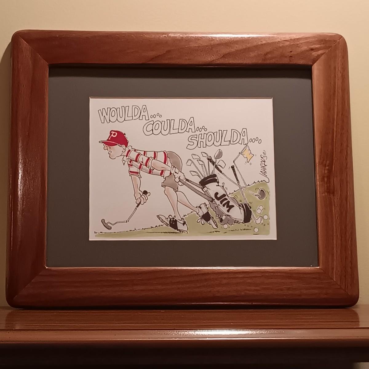 LOT 92B: Cartoons by Jahraus 'Woulda, Coulda, Shoulda' Golfer Print w/ Scotland Run Golf Course Photo Art