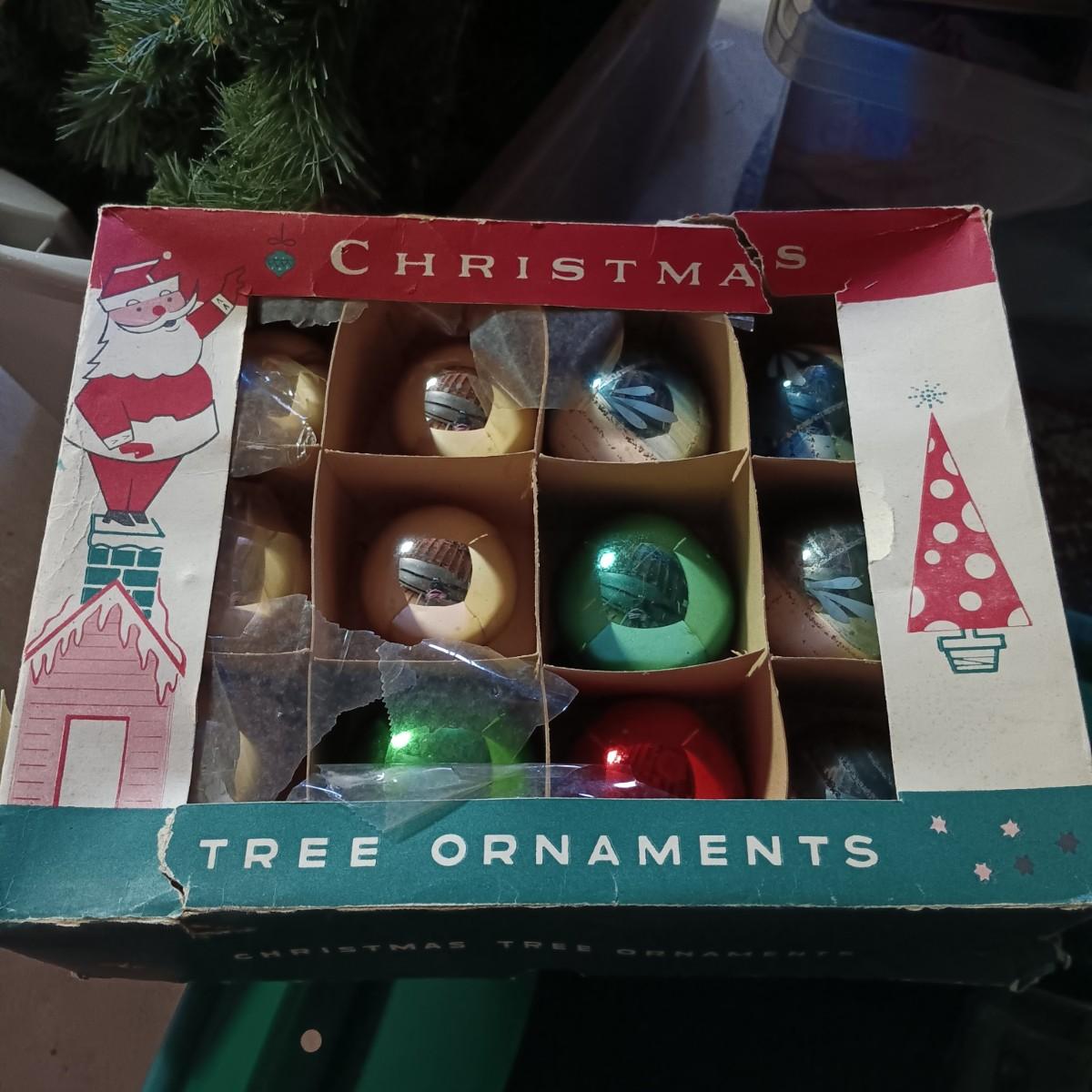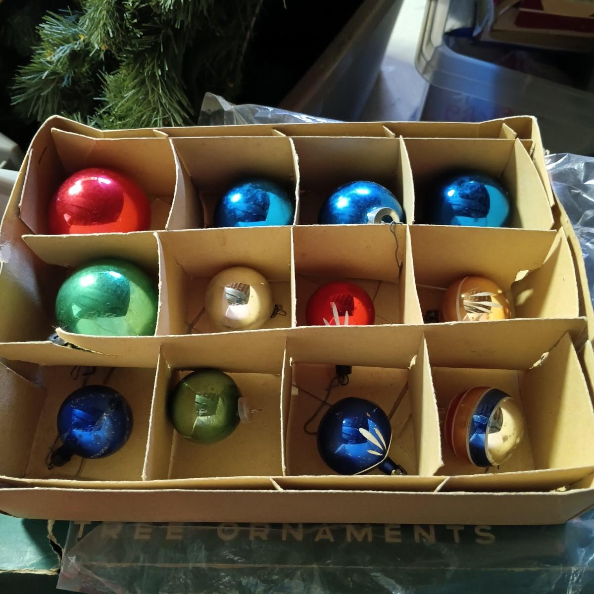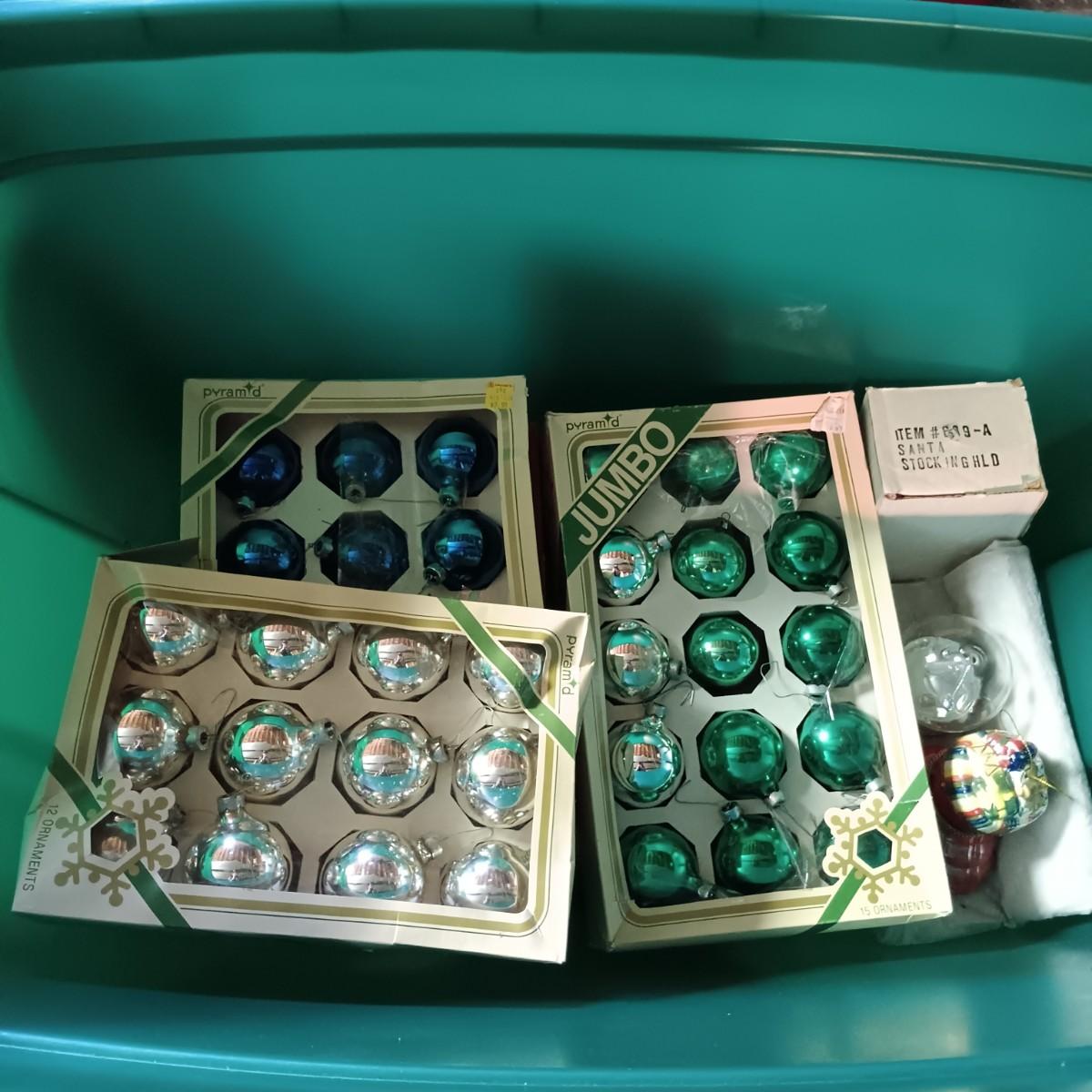 LOT 102B: Basement Finds- Vintage Christmas Bulbs w/ a Set of (7) Wreaths & Holiday Lights
