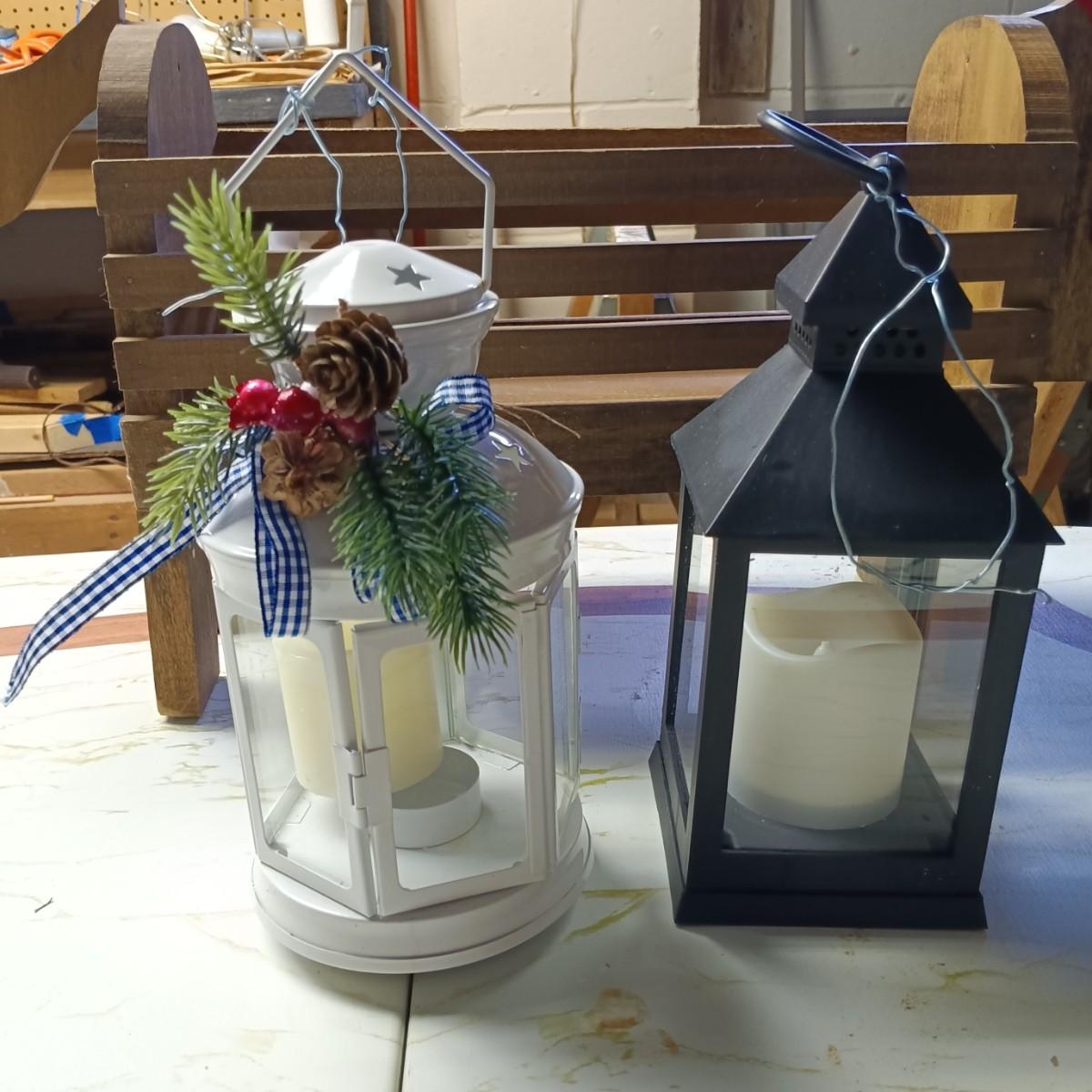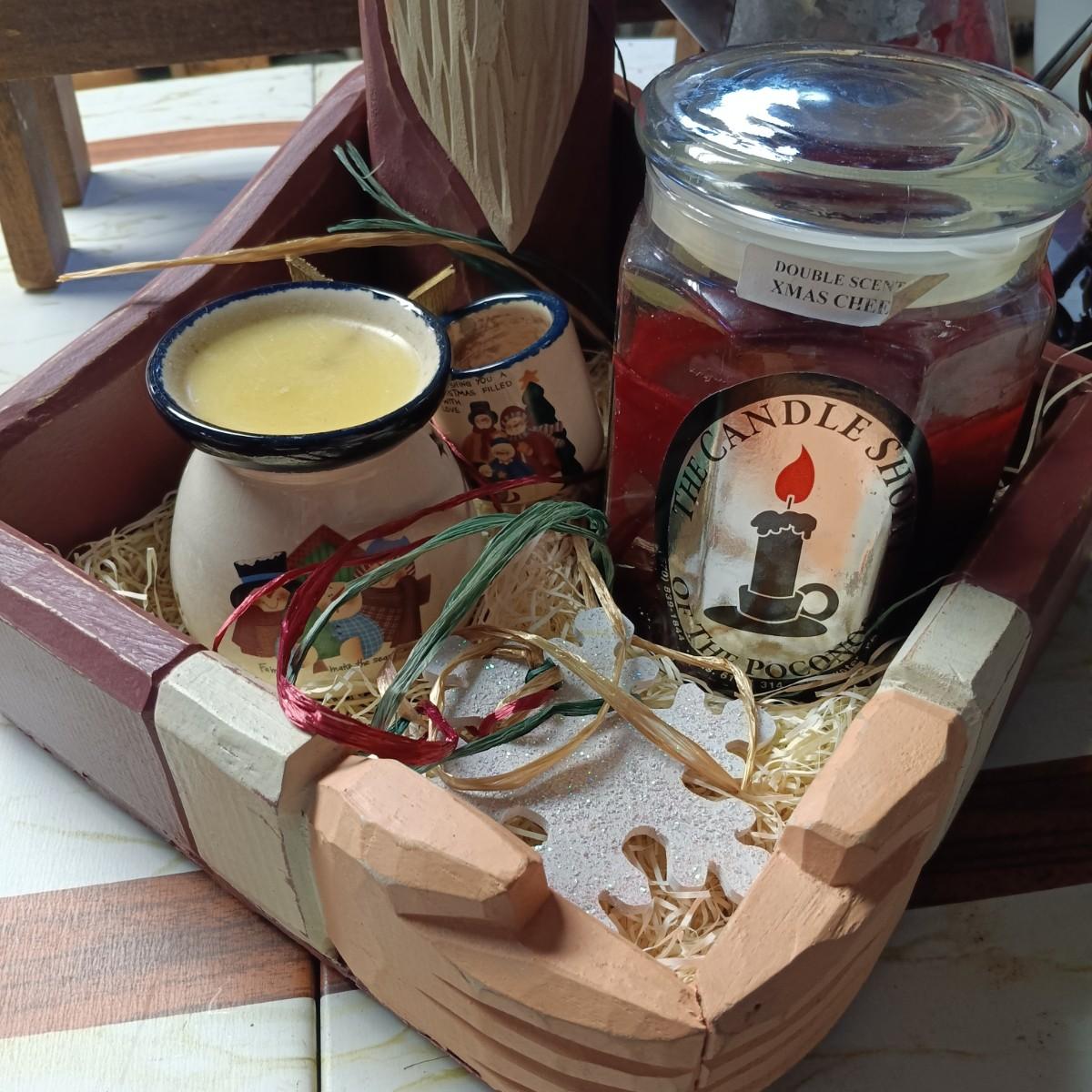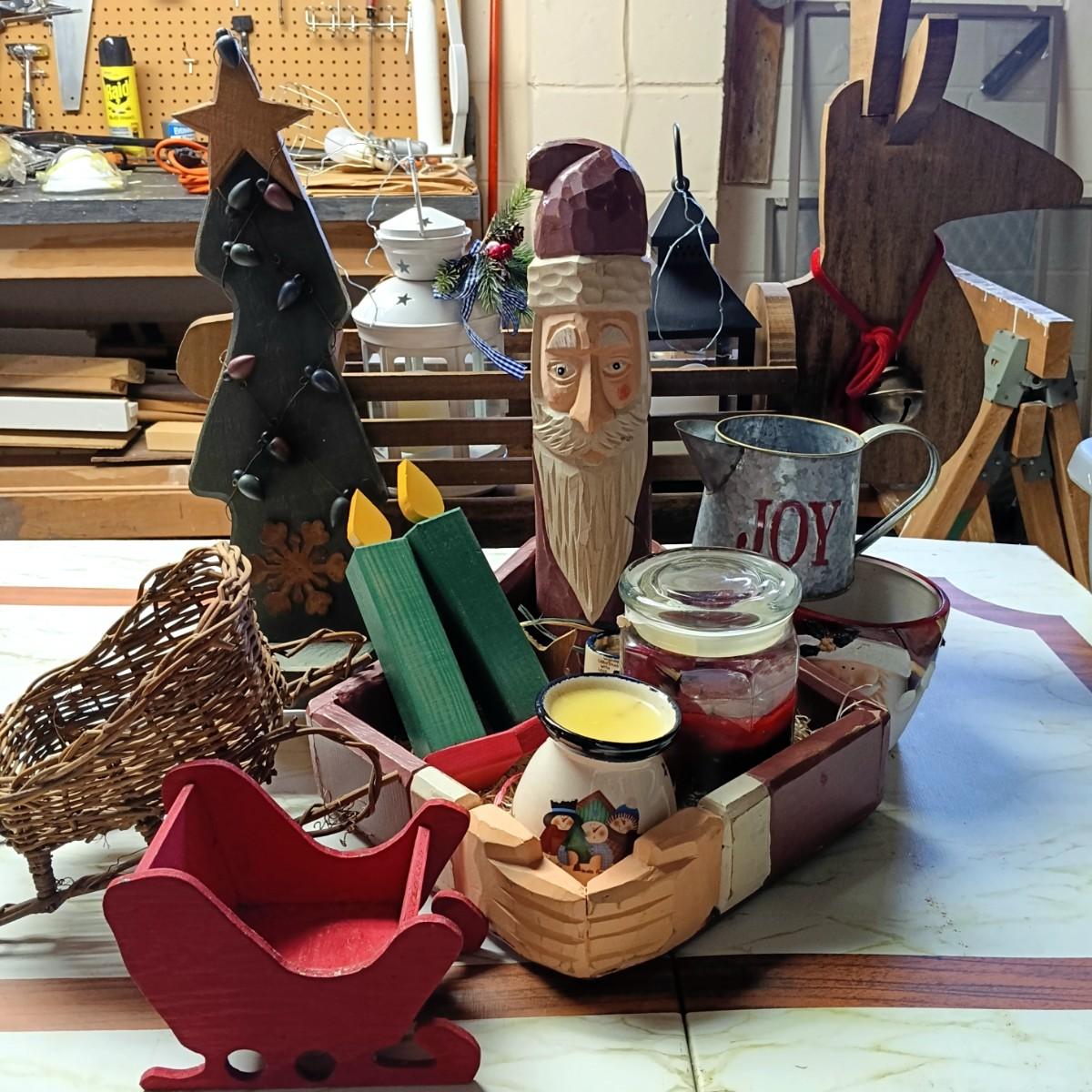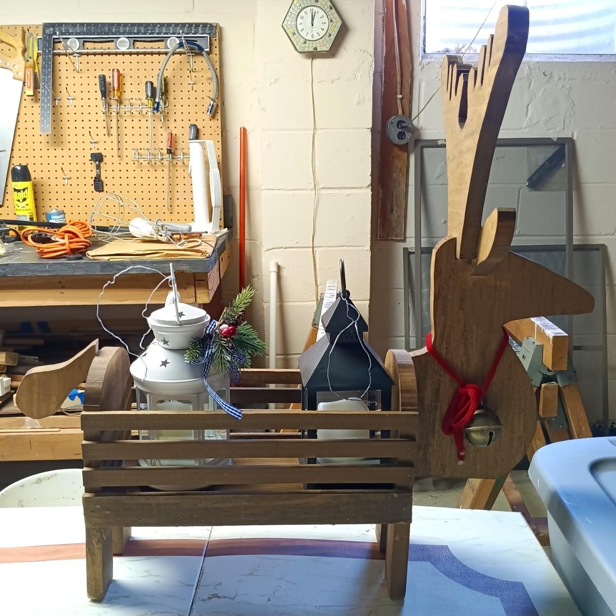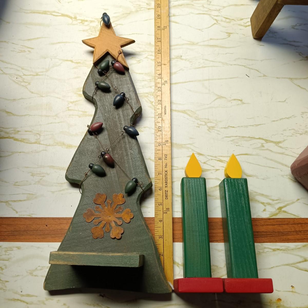 LOT 106B: Country Primitive Wood Christmas Decor, Reindeer Crate, Candles & Lanterns