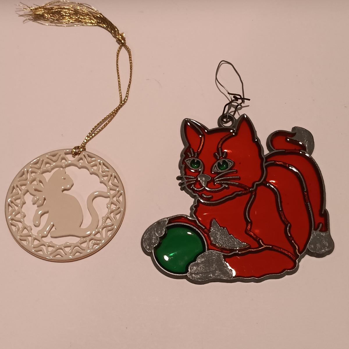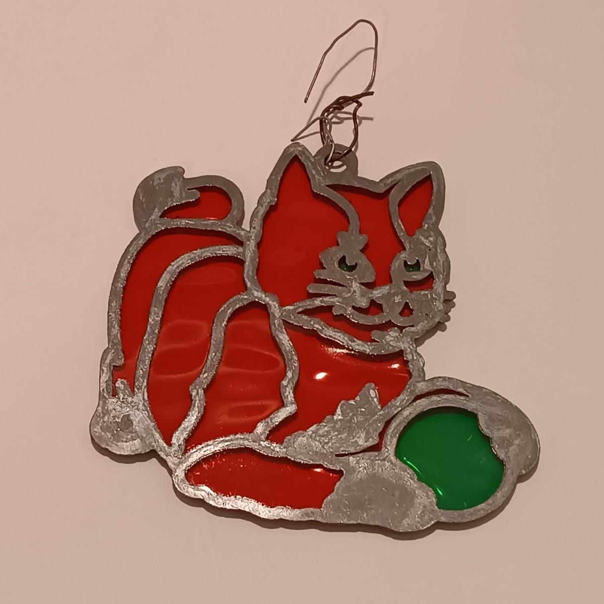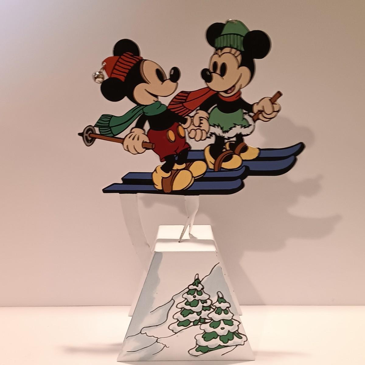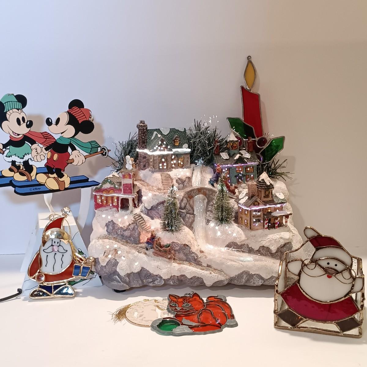 LOT 107B: Vintage Fiber Optic Christmas Village, Mickey and Minnie Ski Pendulum, Stained Glass Decor & Cat Ornaments