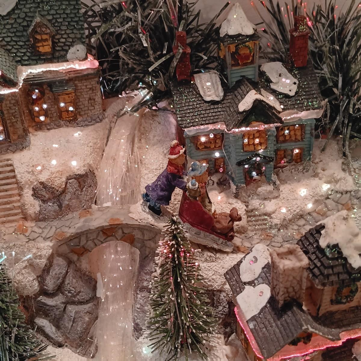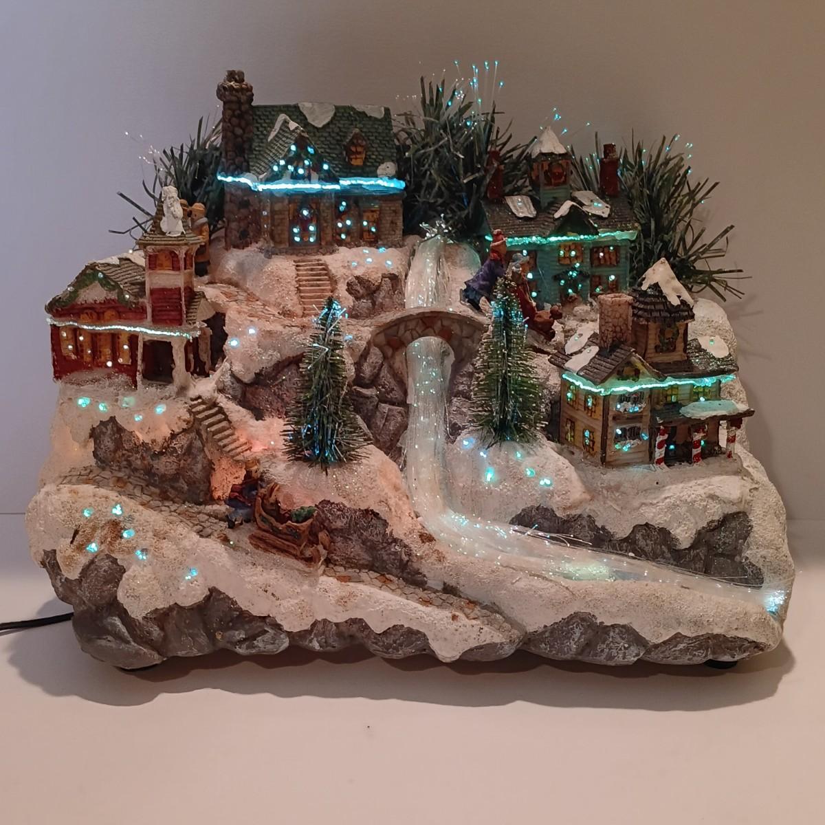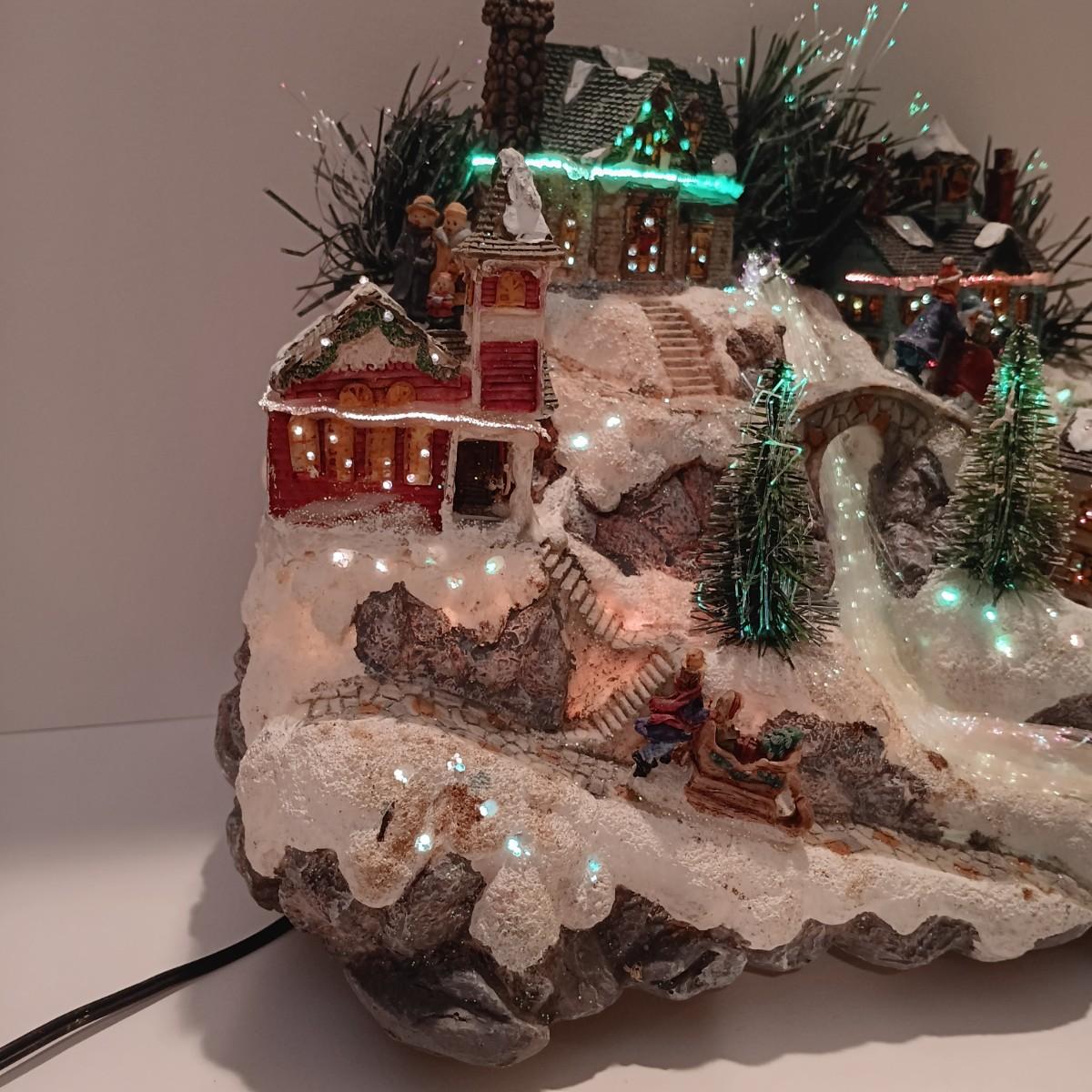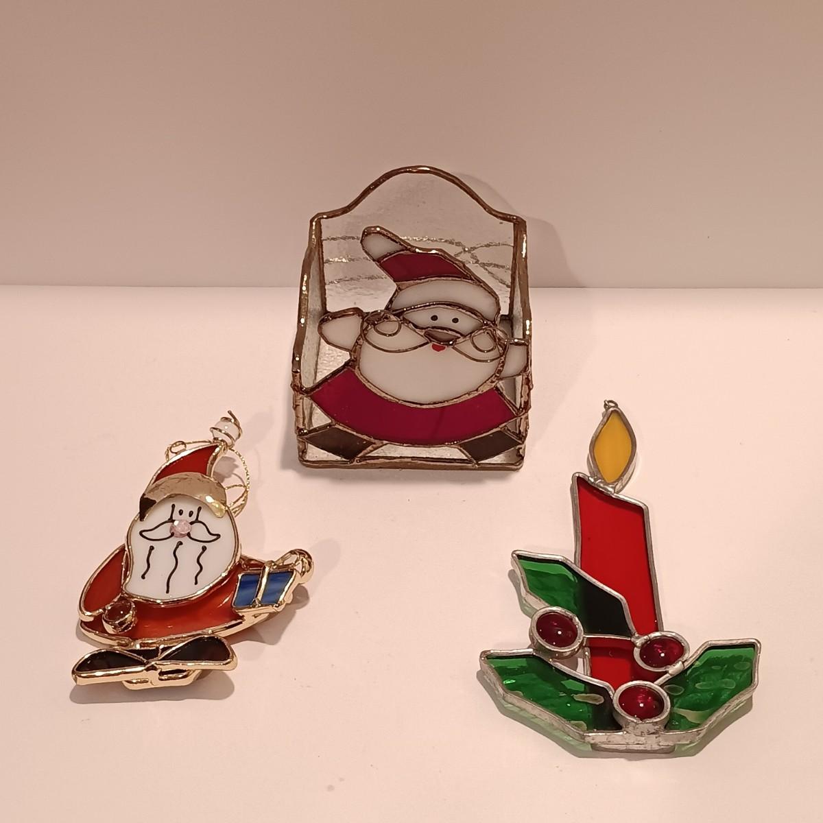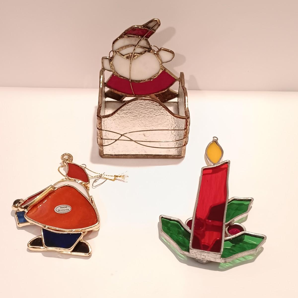 LOT 107B: Vintage Fiber Optic Christmas Village, Mickey and Minnie Ski Pendulum, Stained Glass Decor & Cat Ornaments