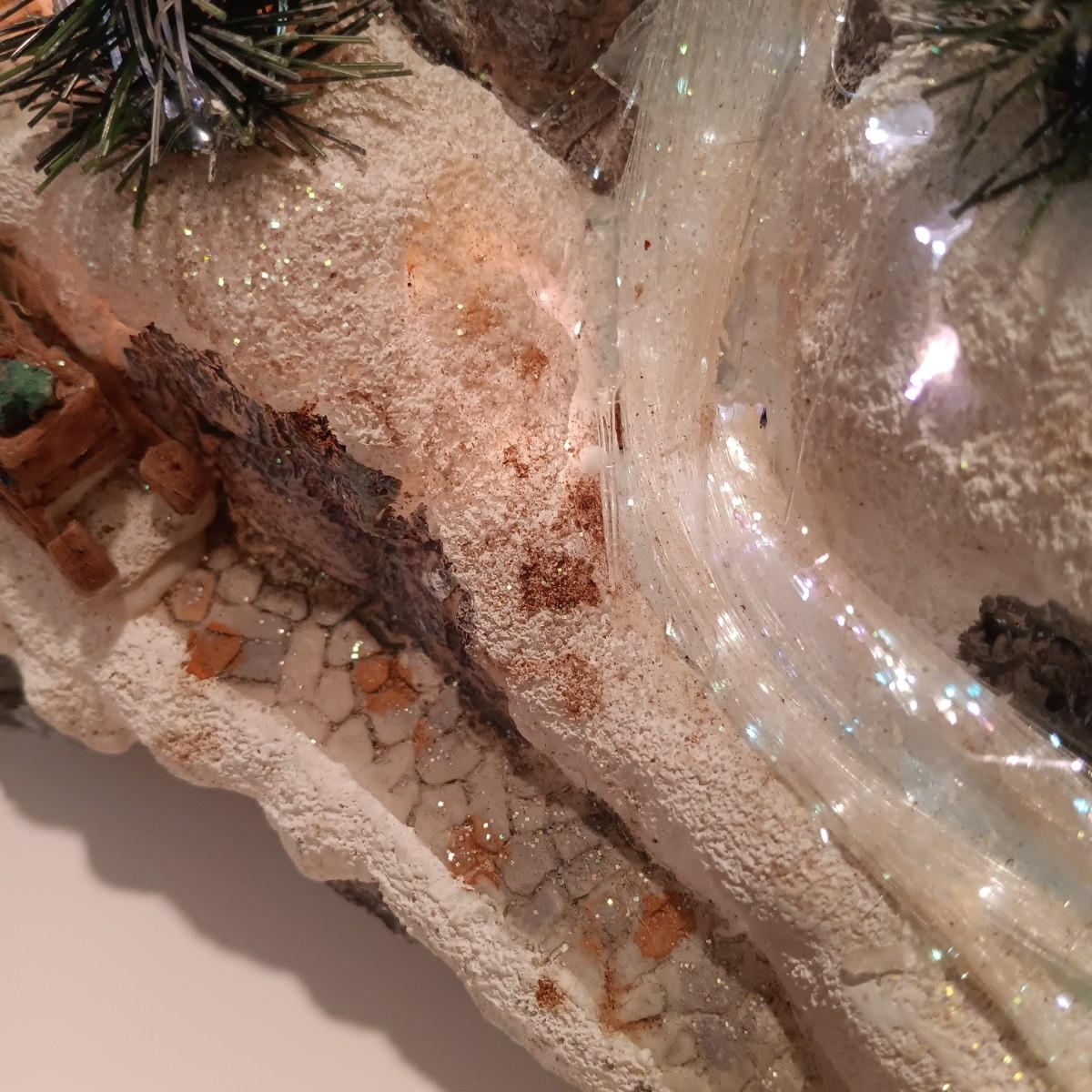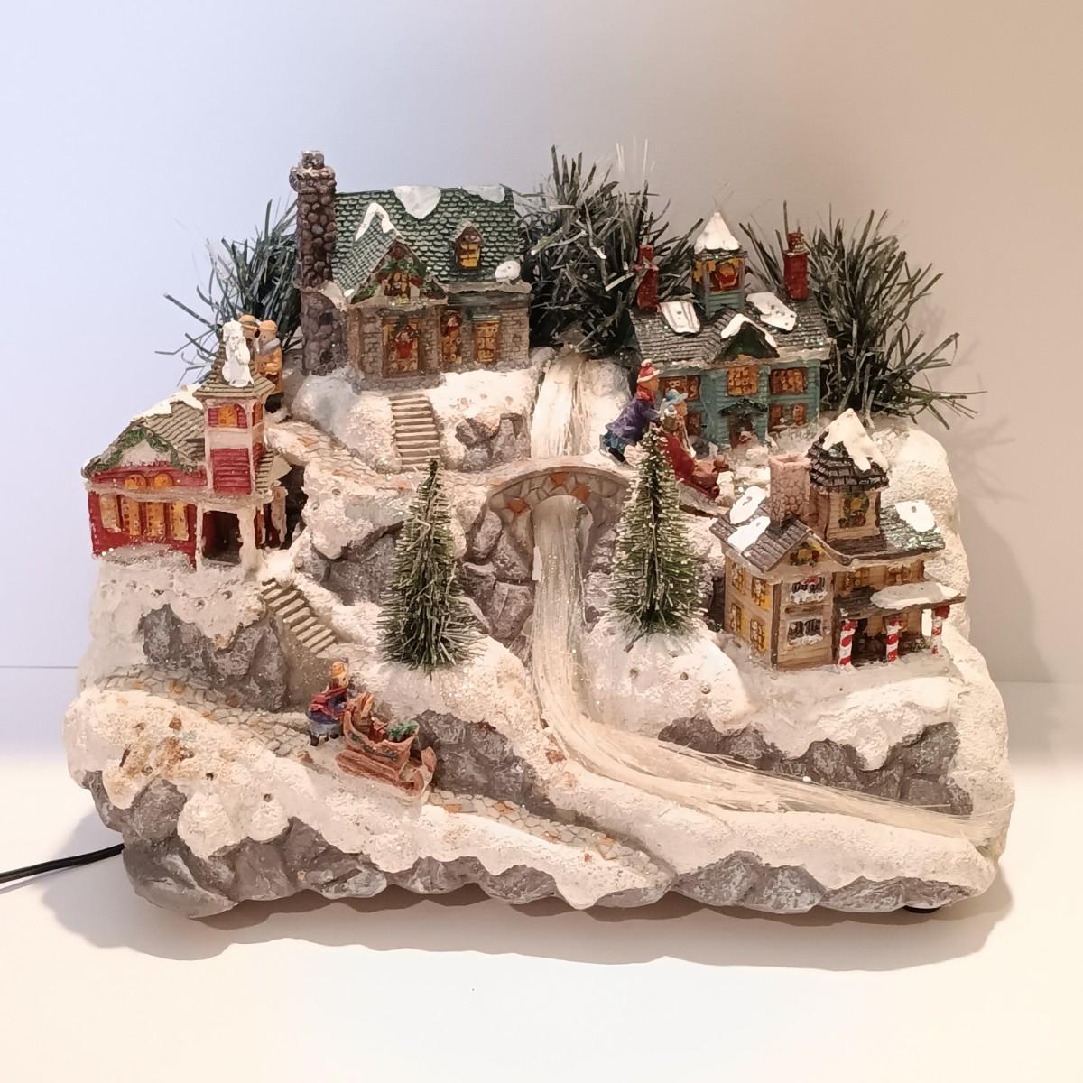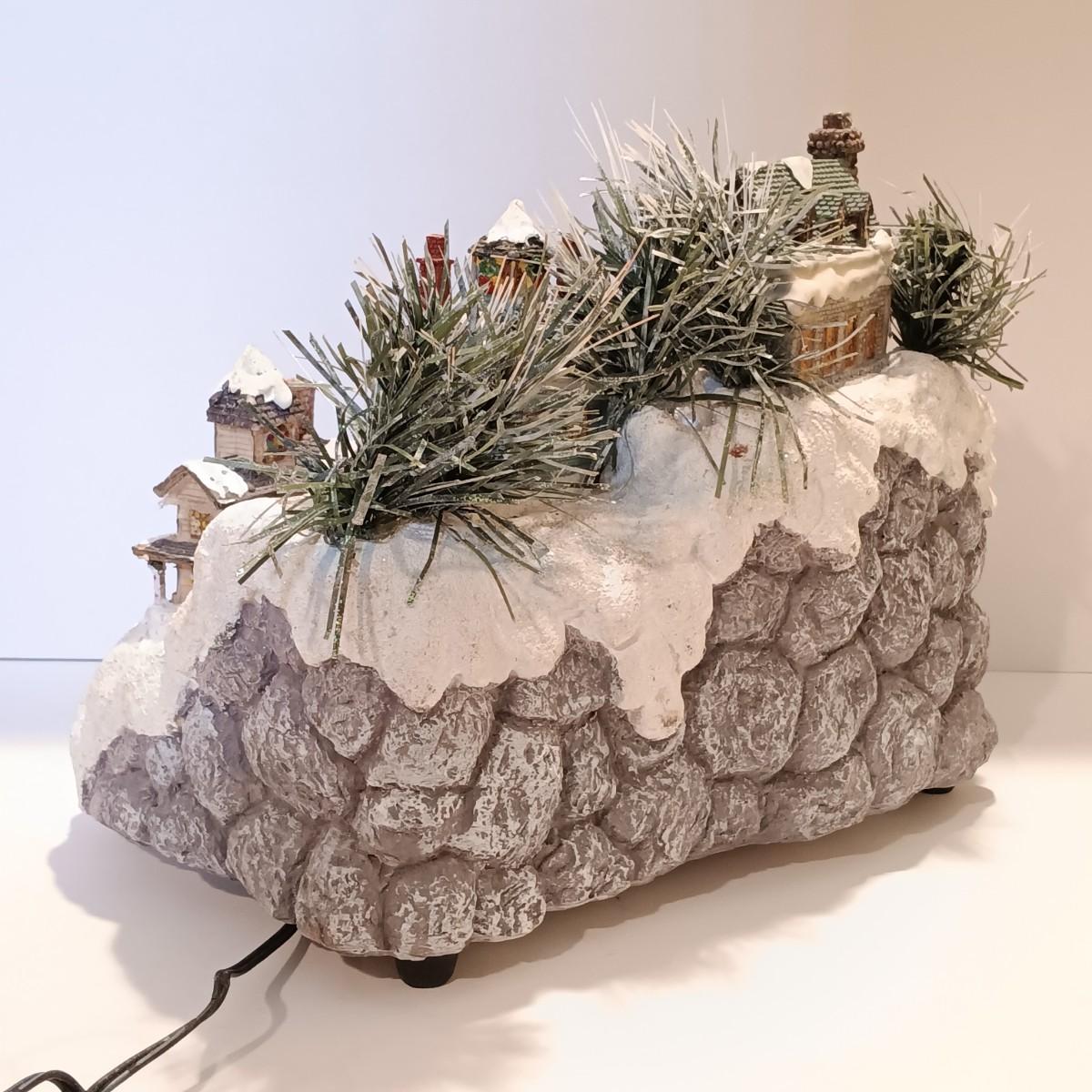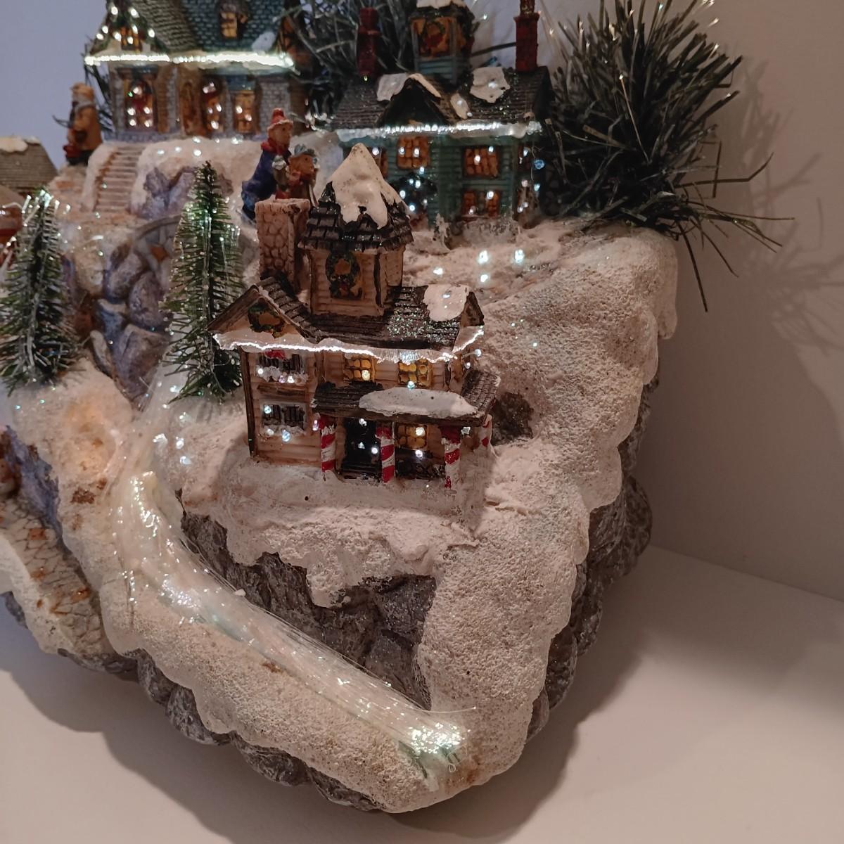 LOT 107B: Vintage Fiber Optic Christmas Village, Mickey and Minnie Ski Pendulum, Stained Glass Decor & Cat Ornaments