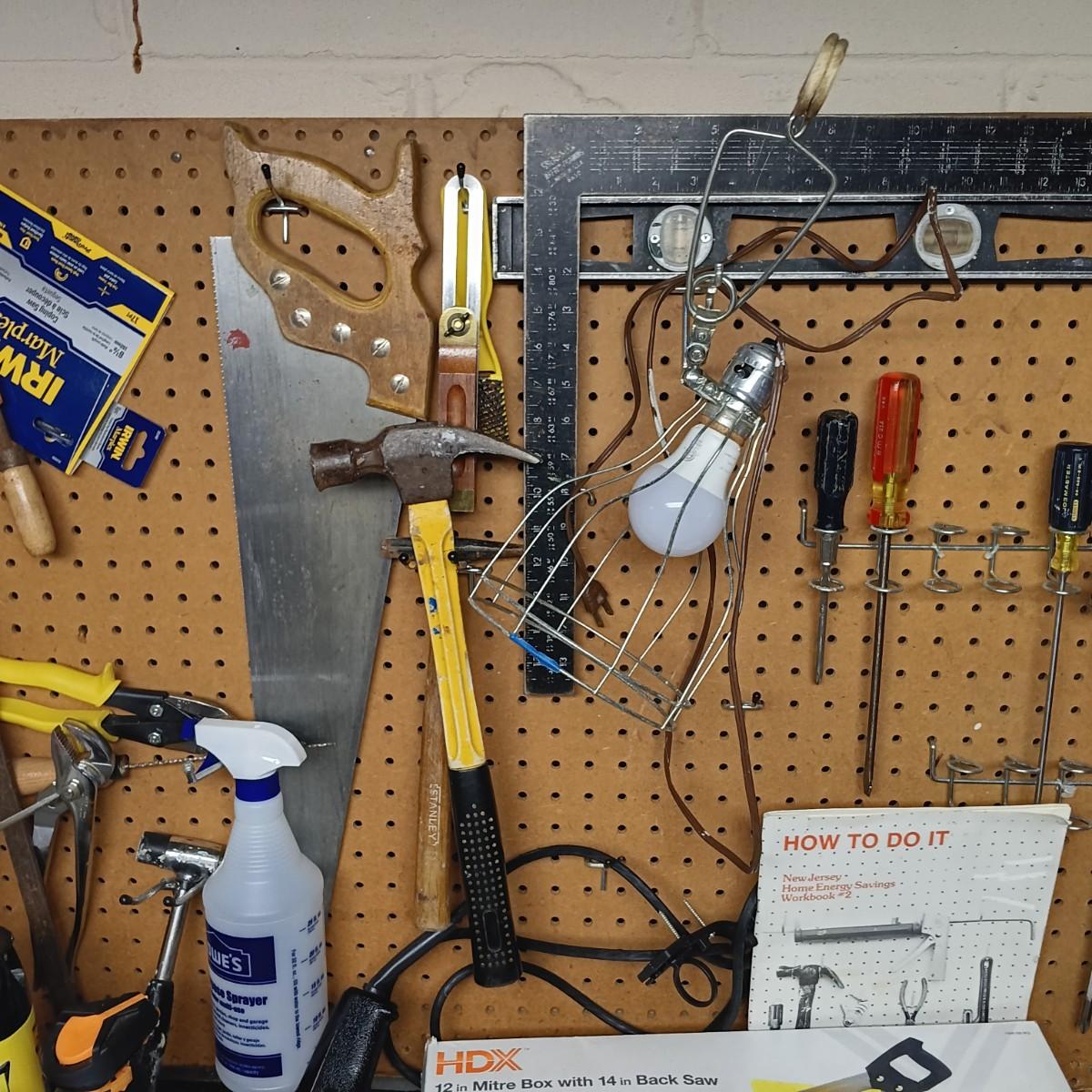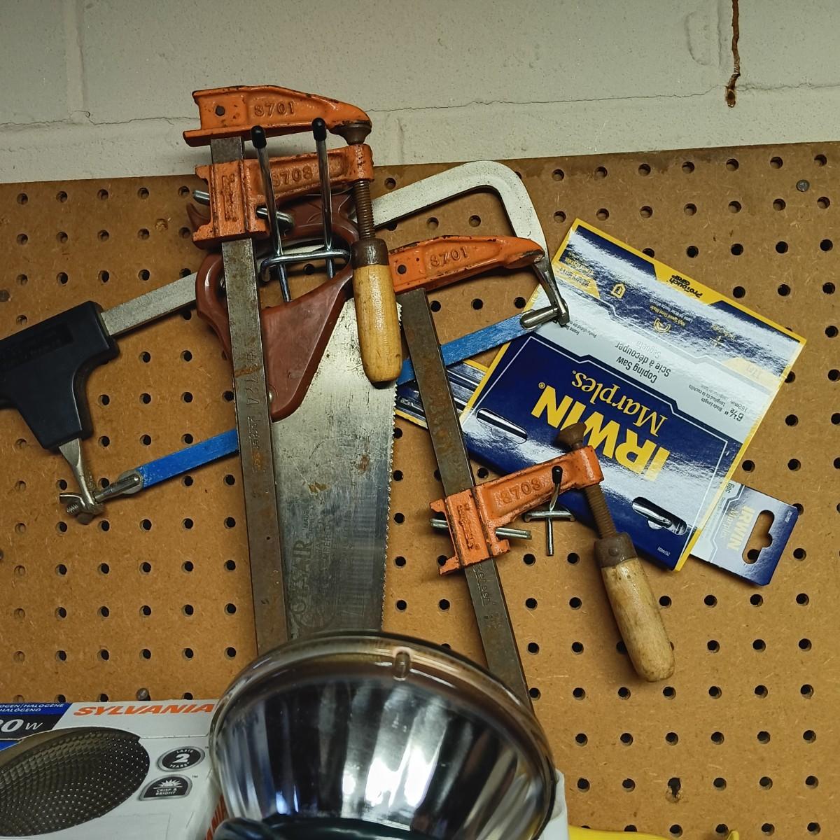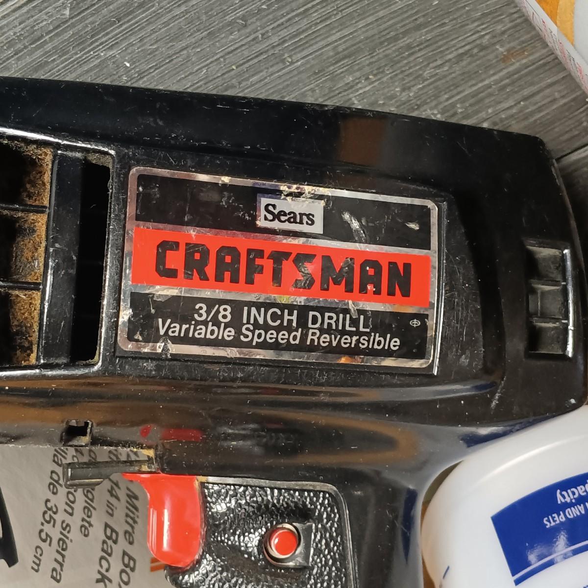 LOT 108B: Basement Finds- Craftsman 3/8" Corded Drill, Jorgensen Bar Clamps, Flood Lights & More