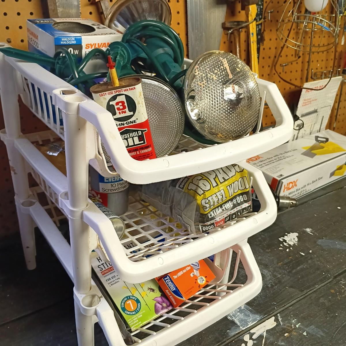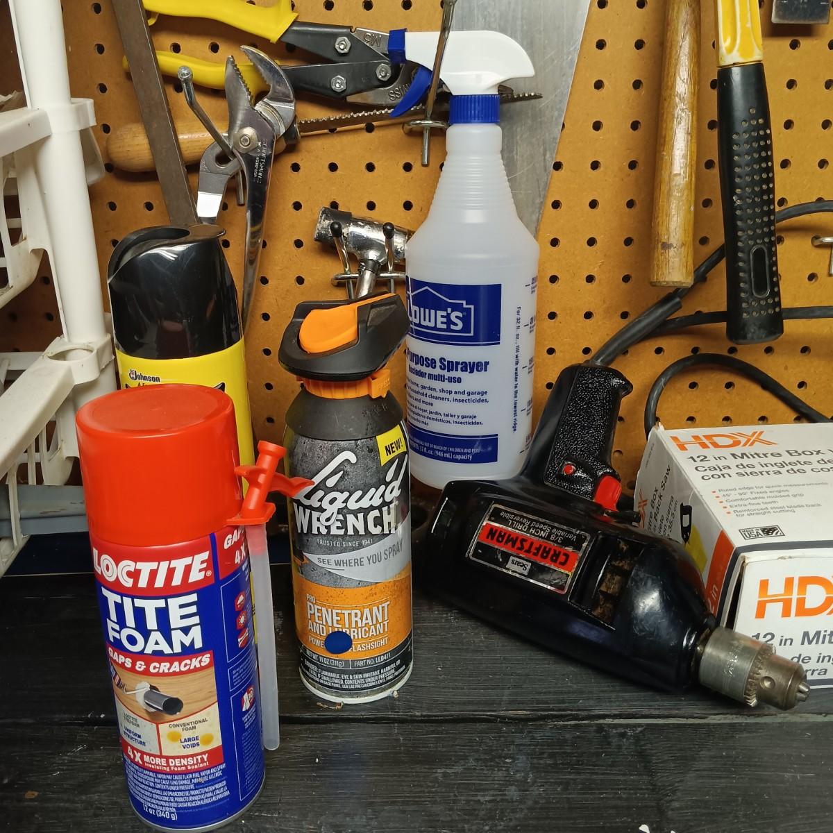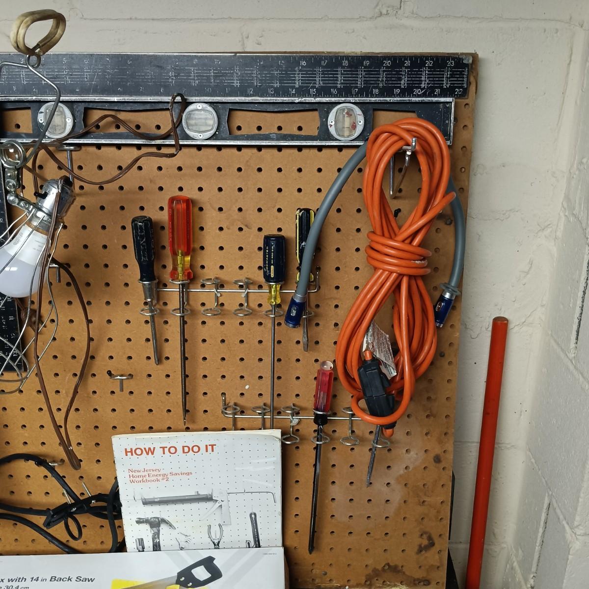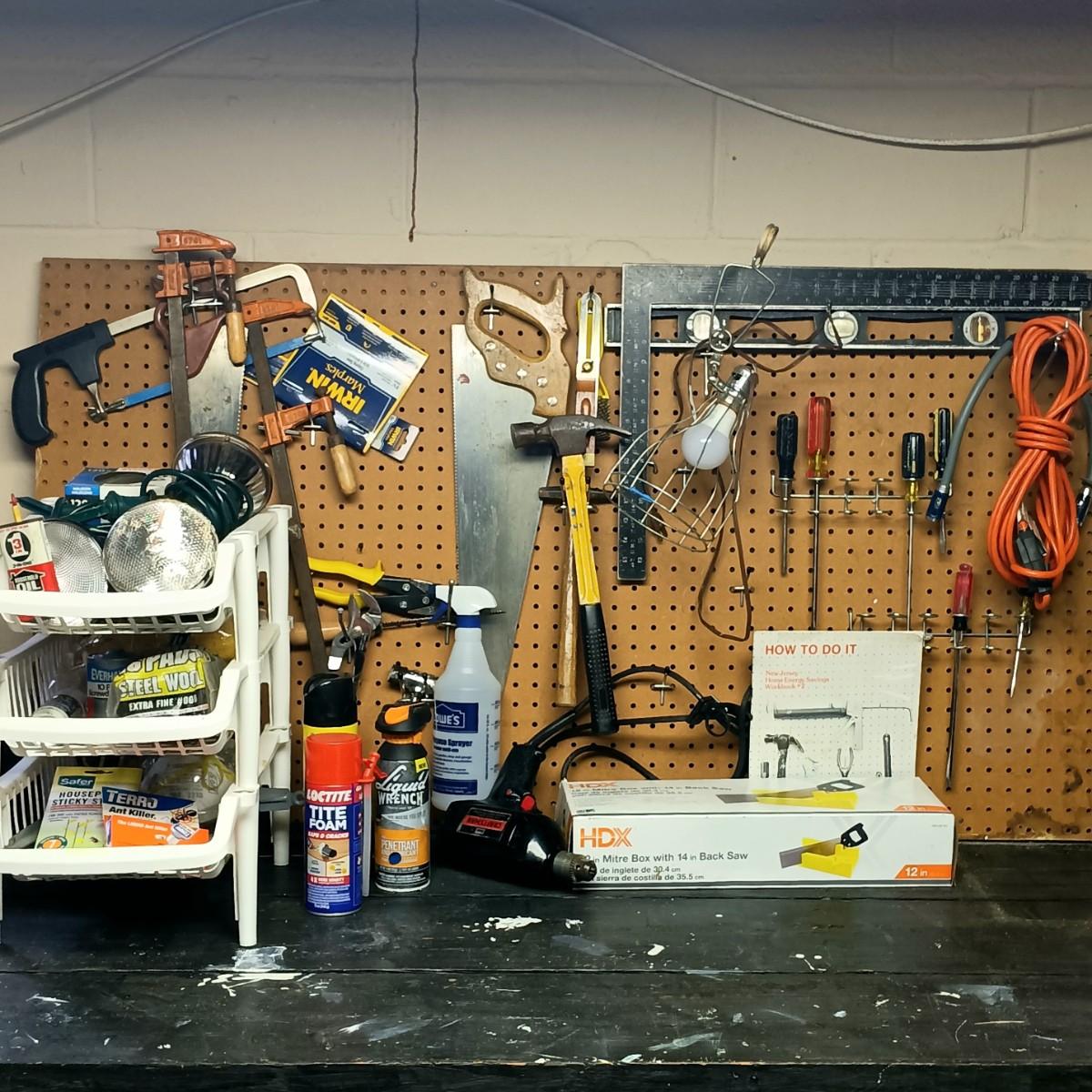 LOT 108B: Basement Finds- Craftsman 3/8" Corded Drill, Jorgensen Bar Clamps, Flood Lights & More