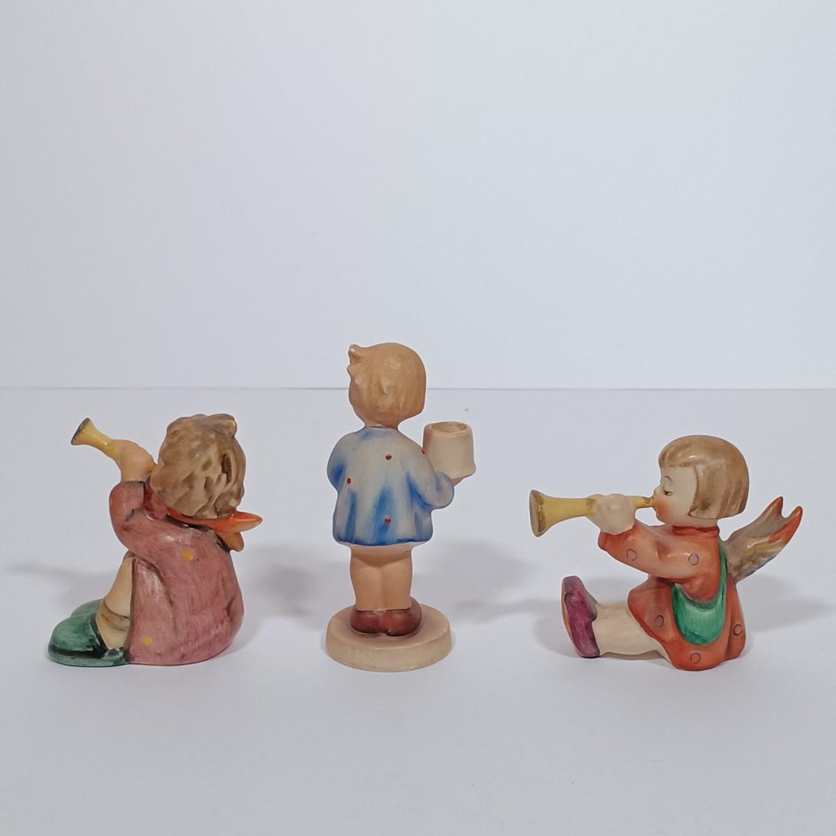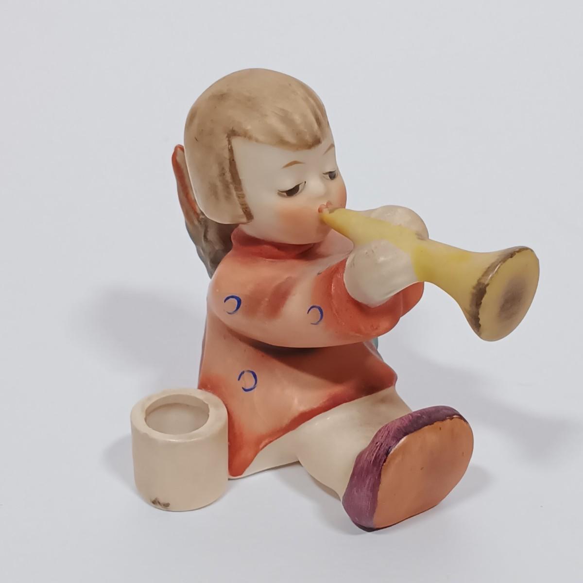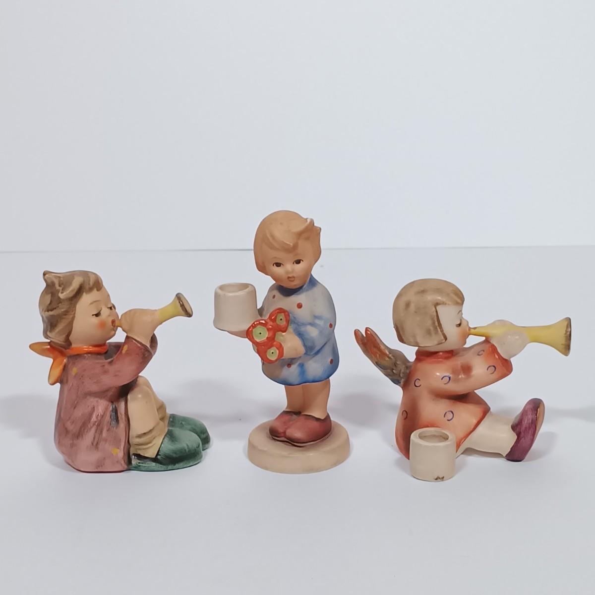 LOT 118L: Vintage Hummel Goebel Figurines Angel 'Joyous News' candle holder , 'Girl with Nosegay' candle holder & 'Girl with Horn'