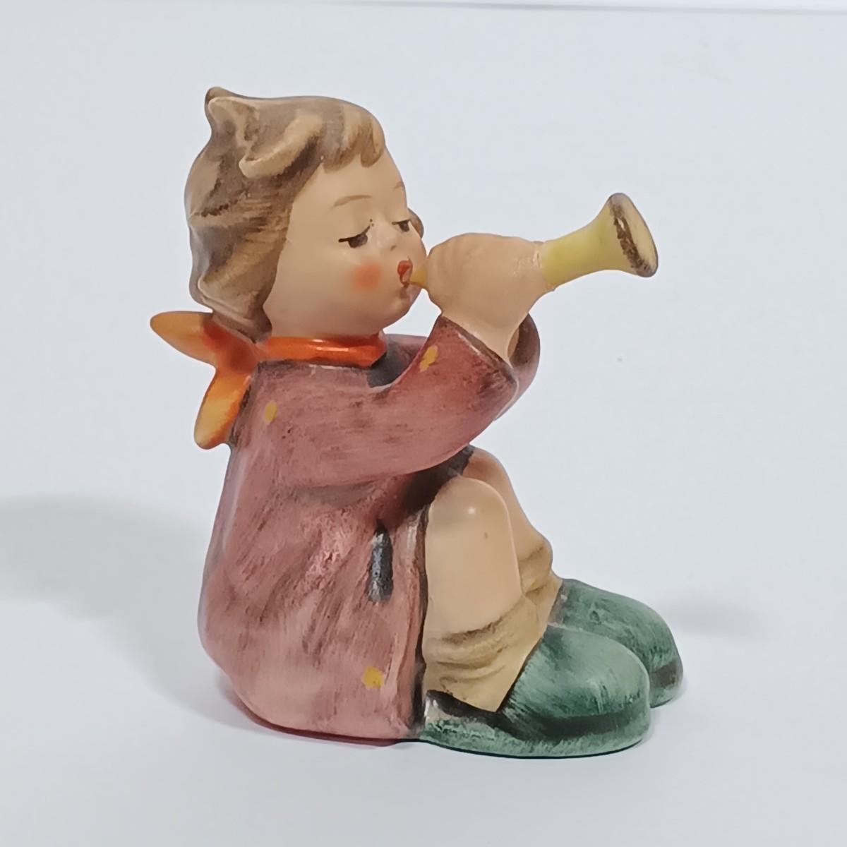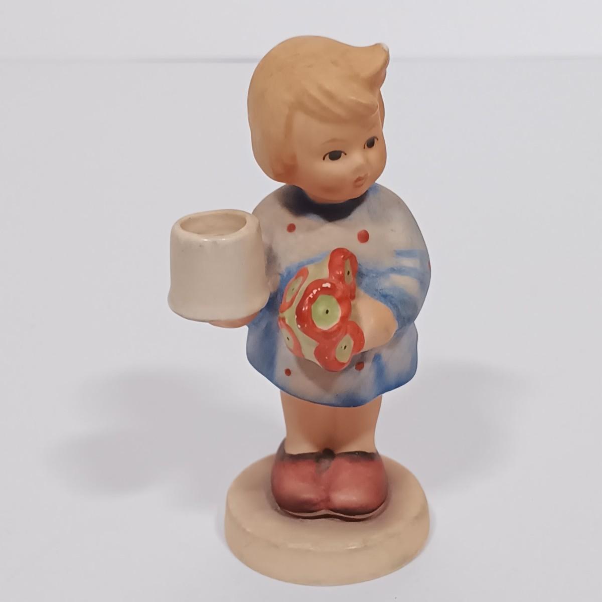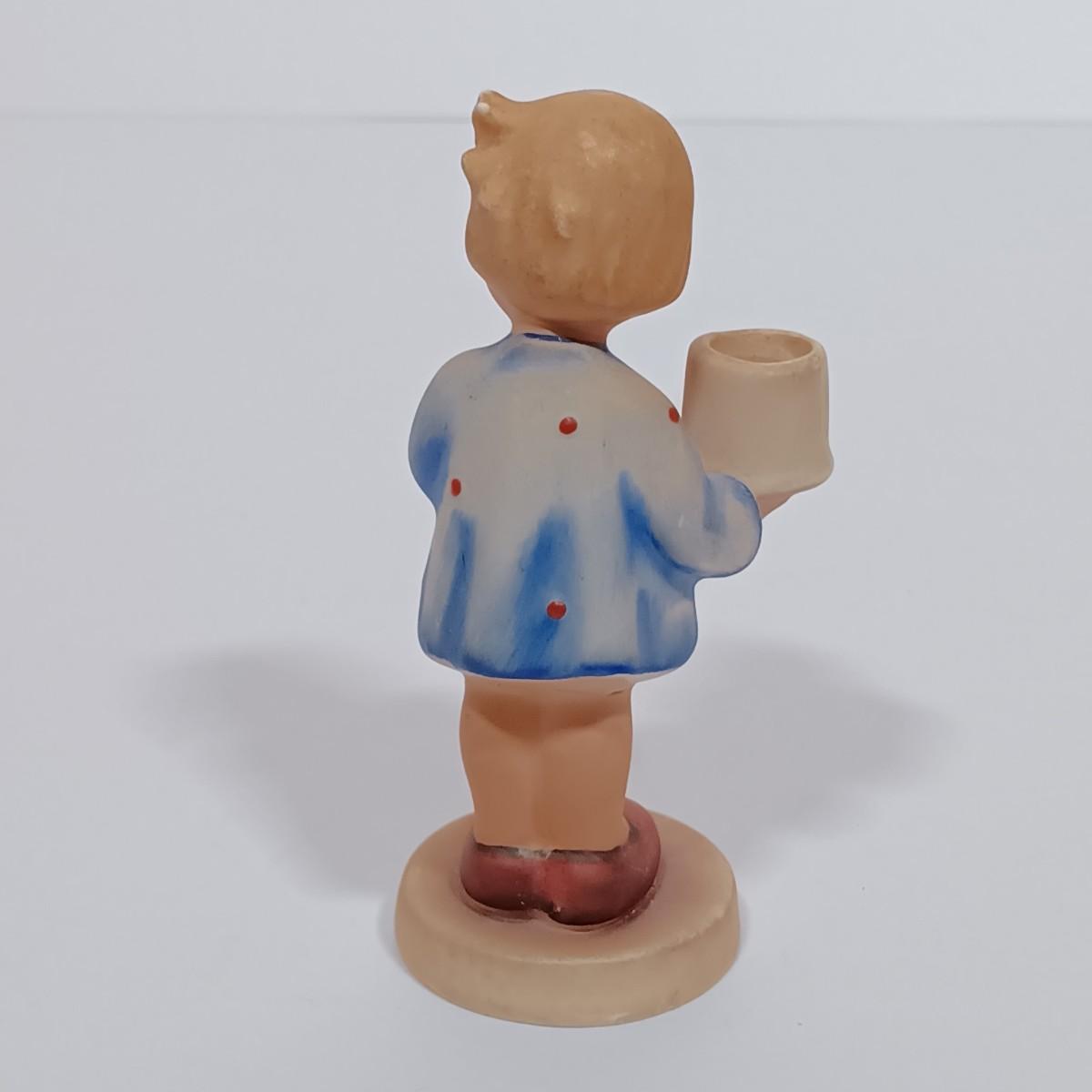 LOT 118L: Vintage Hummel Goebel Figurines Angel 'Joyous News' candle holder , 'Girl with Nosegay' candle holder & 'Girl with Horn'