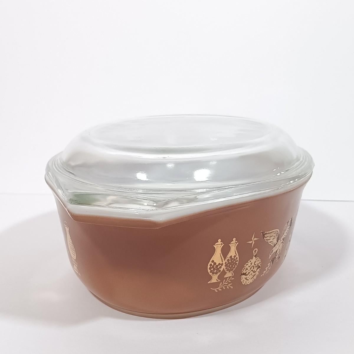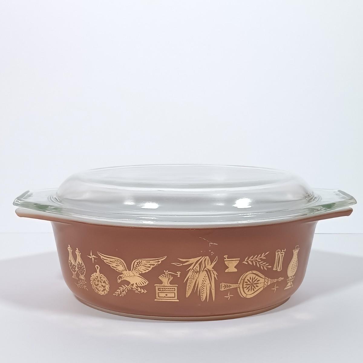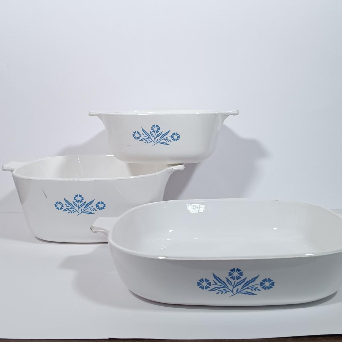 LOT 126L: Pyrex Early American Covered Casserole Dish, Corningware Cornflower Blue Casserole Dishes & More