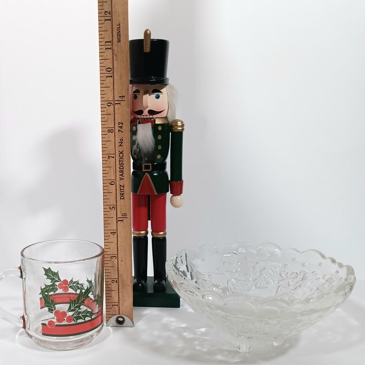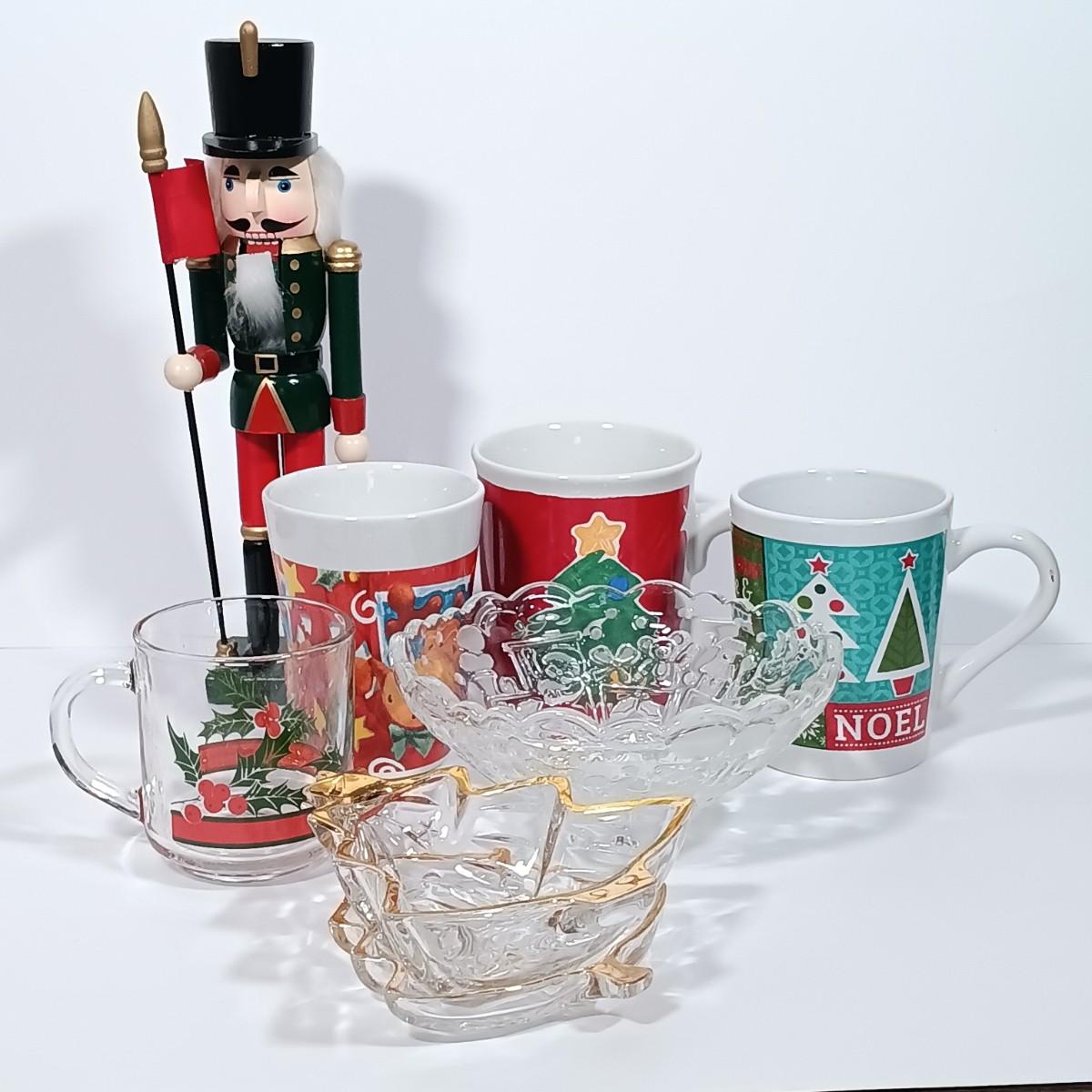 LOT 129L: Mikasa Christmas Tree Candy Dishes, Libbey Holly & Berry Mug, Gorham North Pole Express Footed Bowl & More